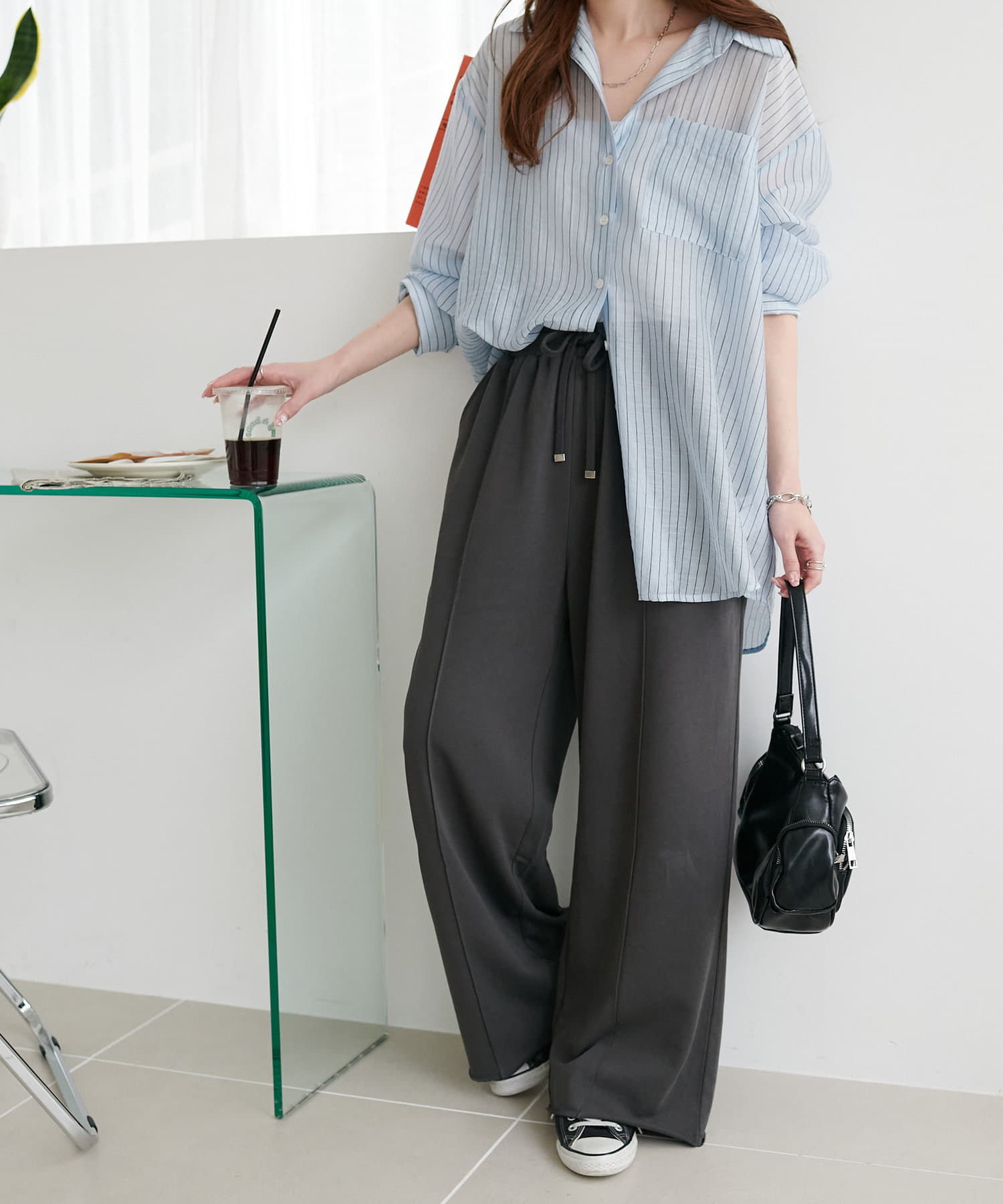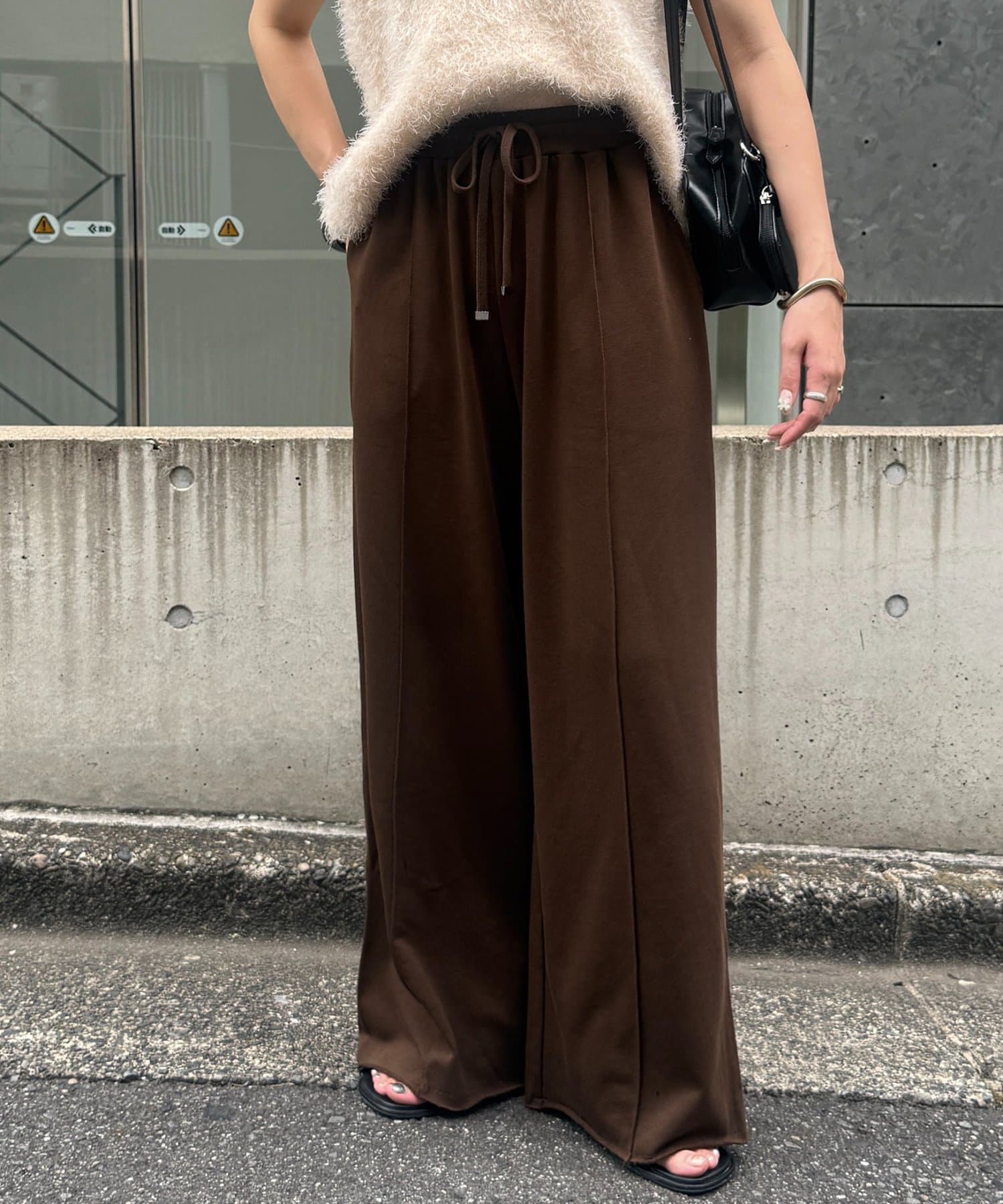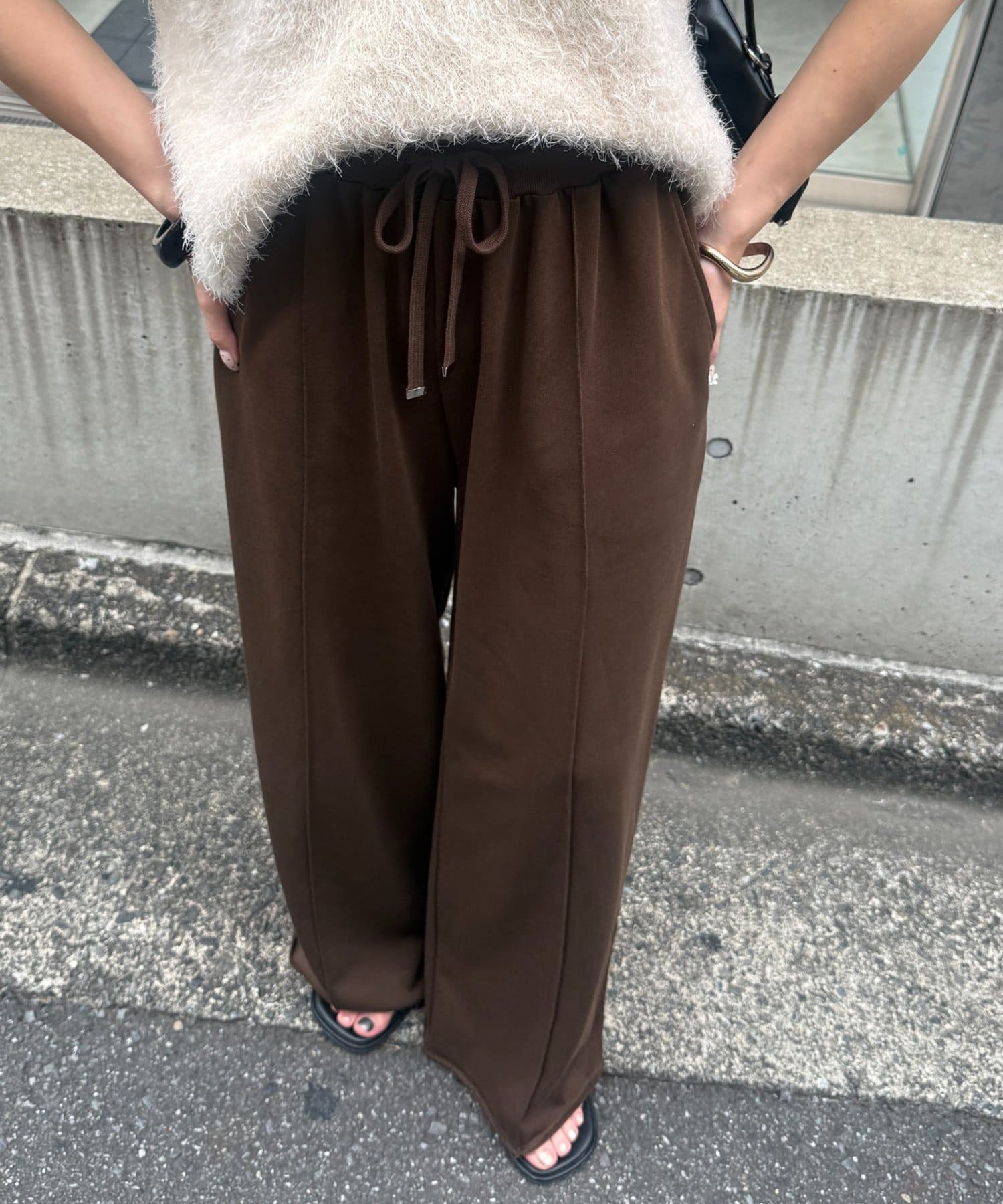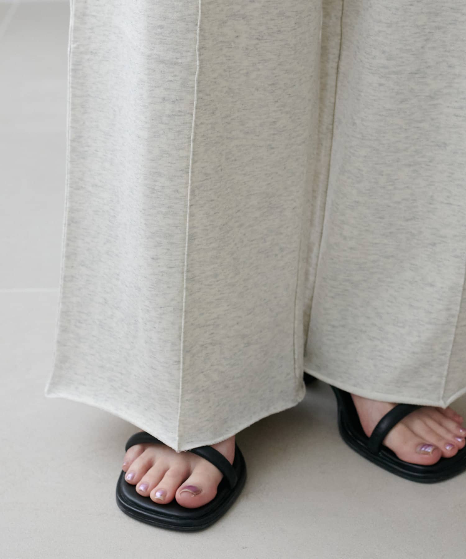 カジュアルな裏毛素材ながらも、センタープレス入りのきれいめデザインで、リラックス感と上品さを兼ね備えたワイドスウェットパンツ。