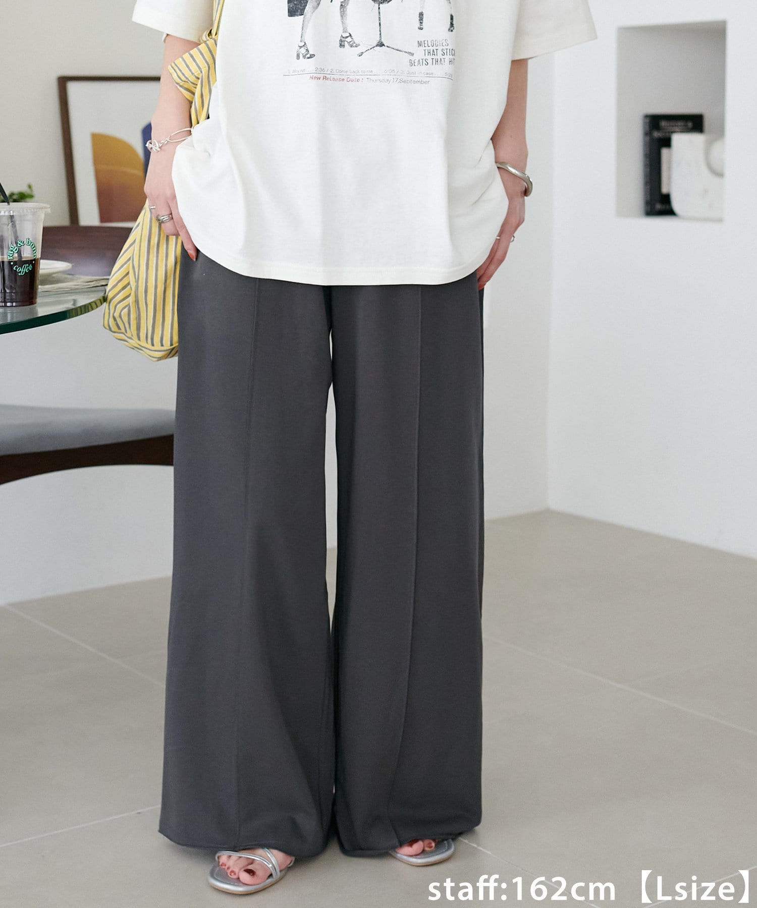 【サイズ展開あり/来年も着れる春夏素材】ライトオンス裏毛センタープレスワイドパンツ