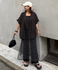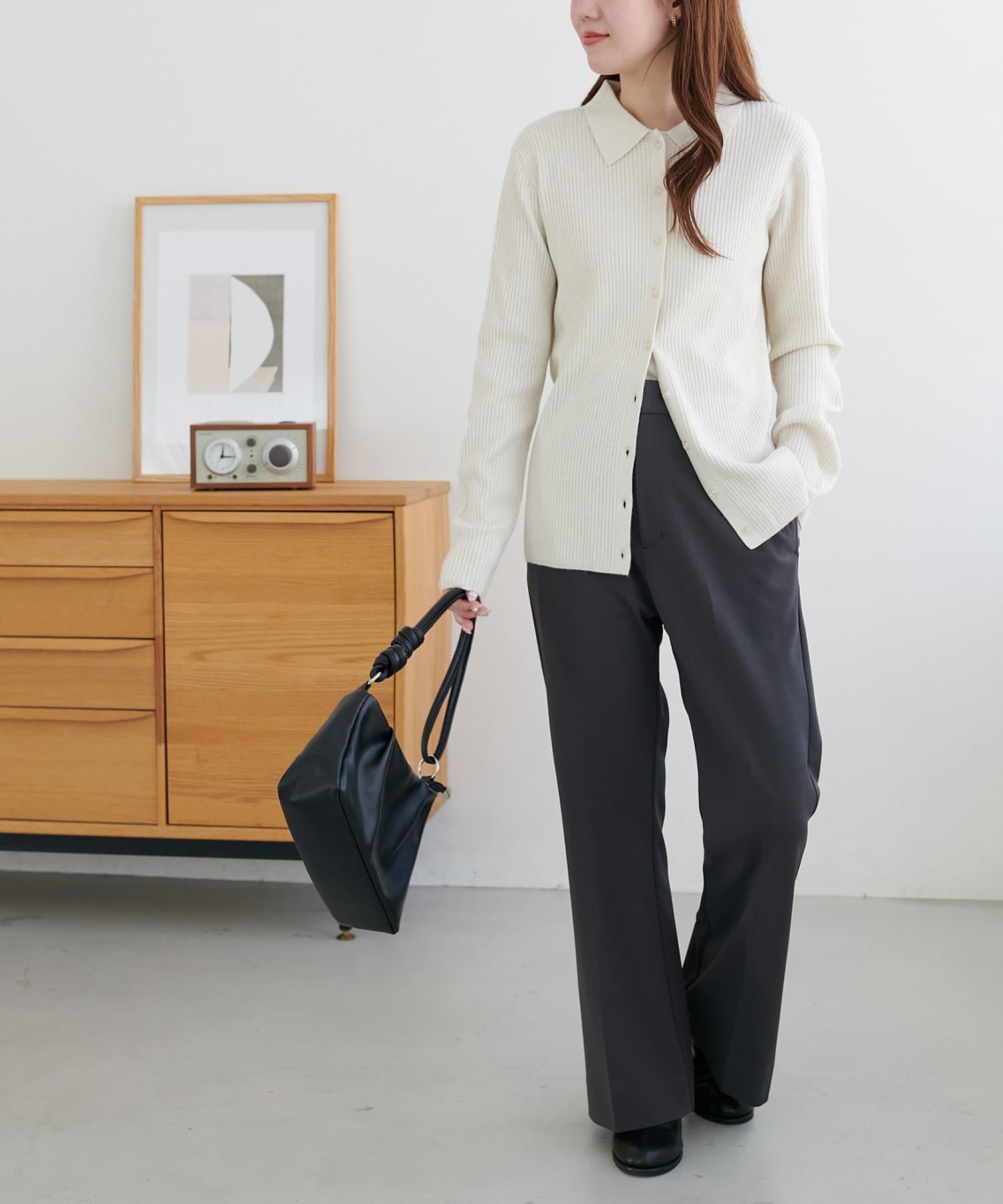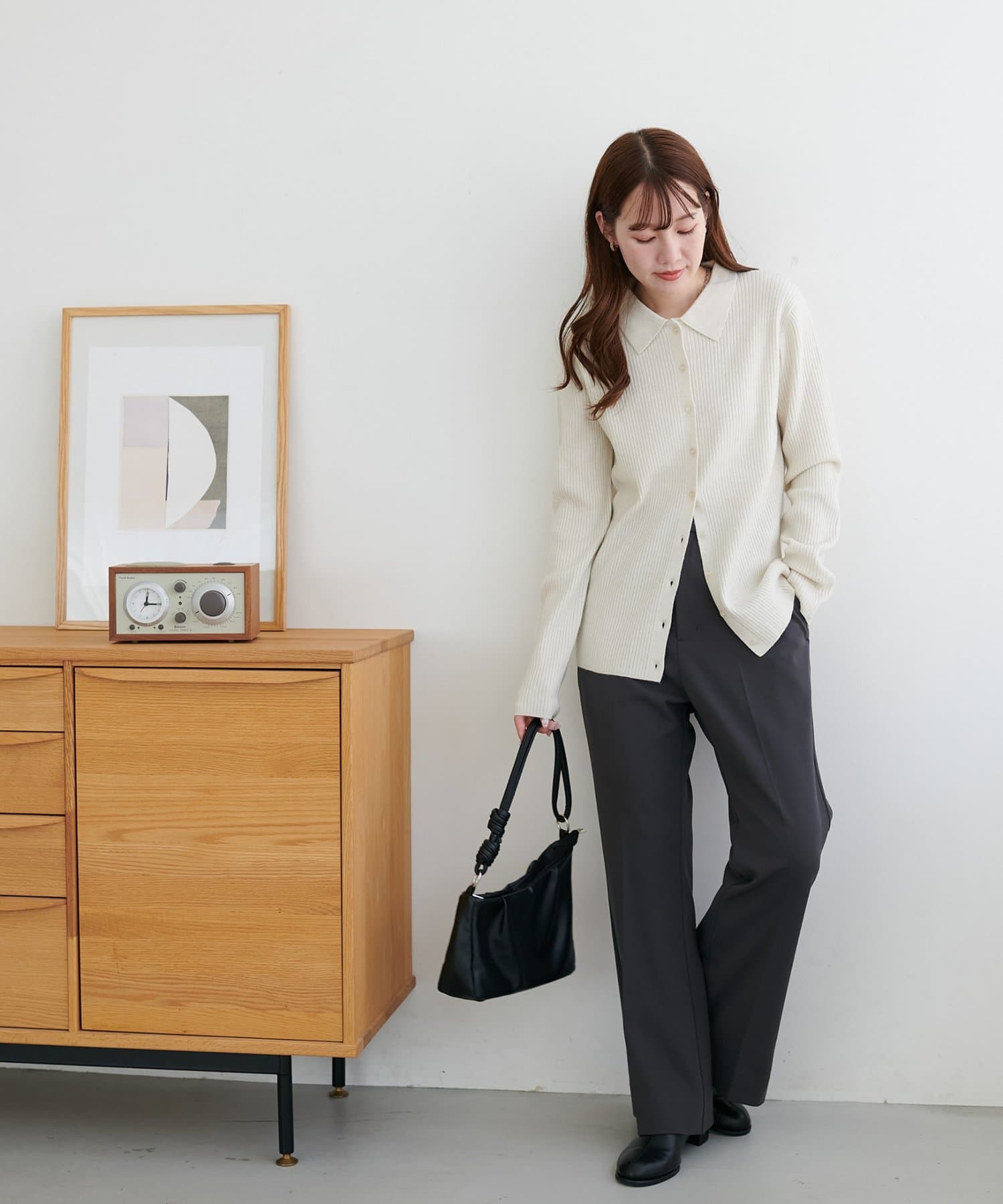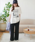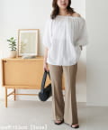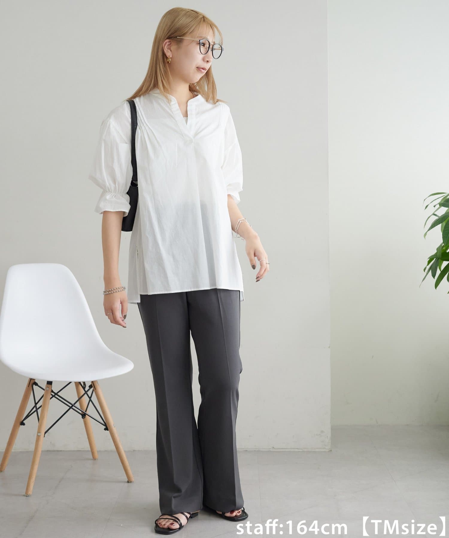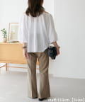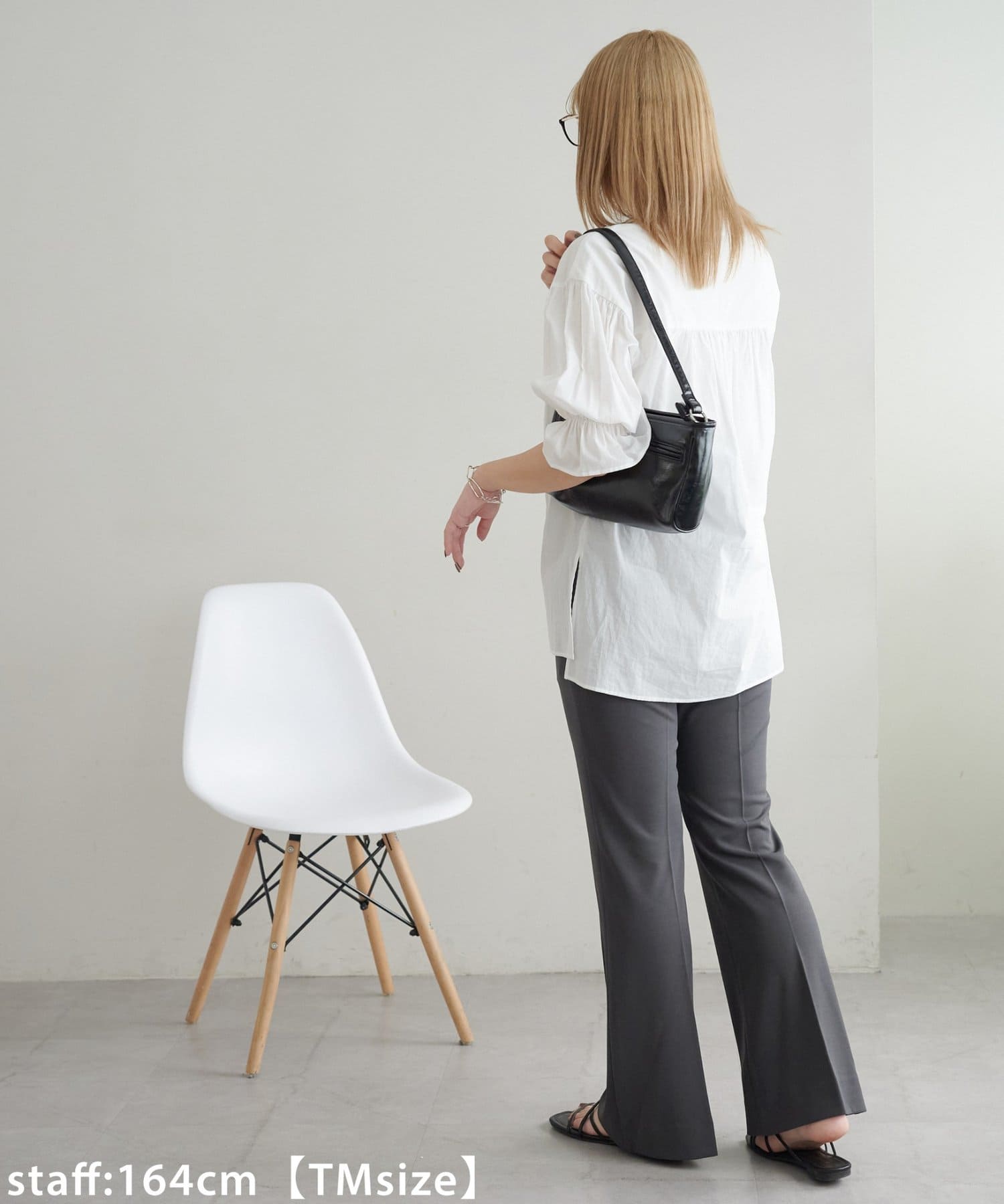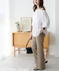 167cmスタッフ(TMサイズ着用):高身長でも足首まで隠れる丈感で、バランスよくきれいに穿けるのが嬉しい◎きれいめにもカジュアルにも合わせやすい万能パンツです。