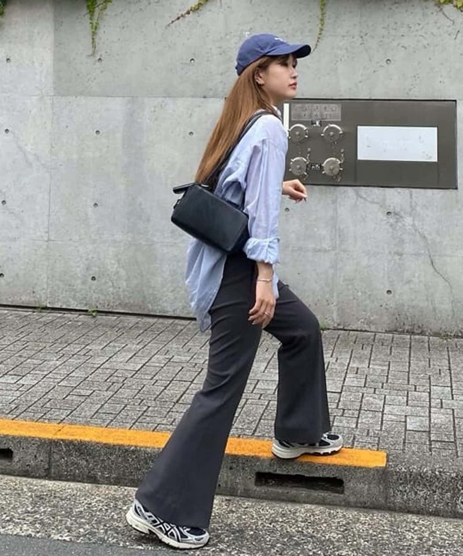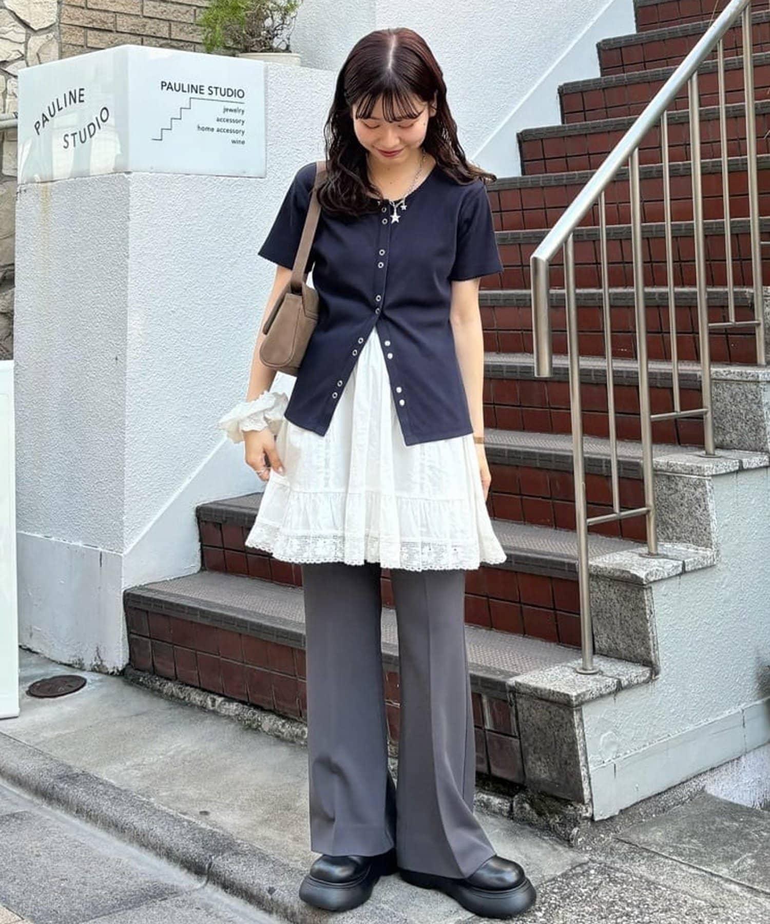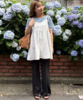 足元に向かって広がるフレアのシルエットが、太もも周りをすっきりとした印象に見せてくれます♪