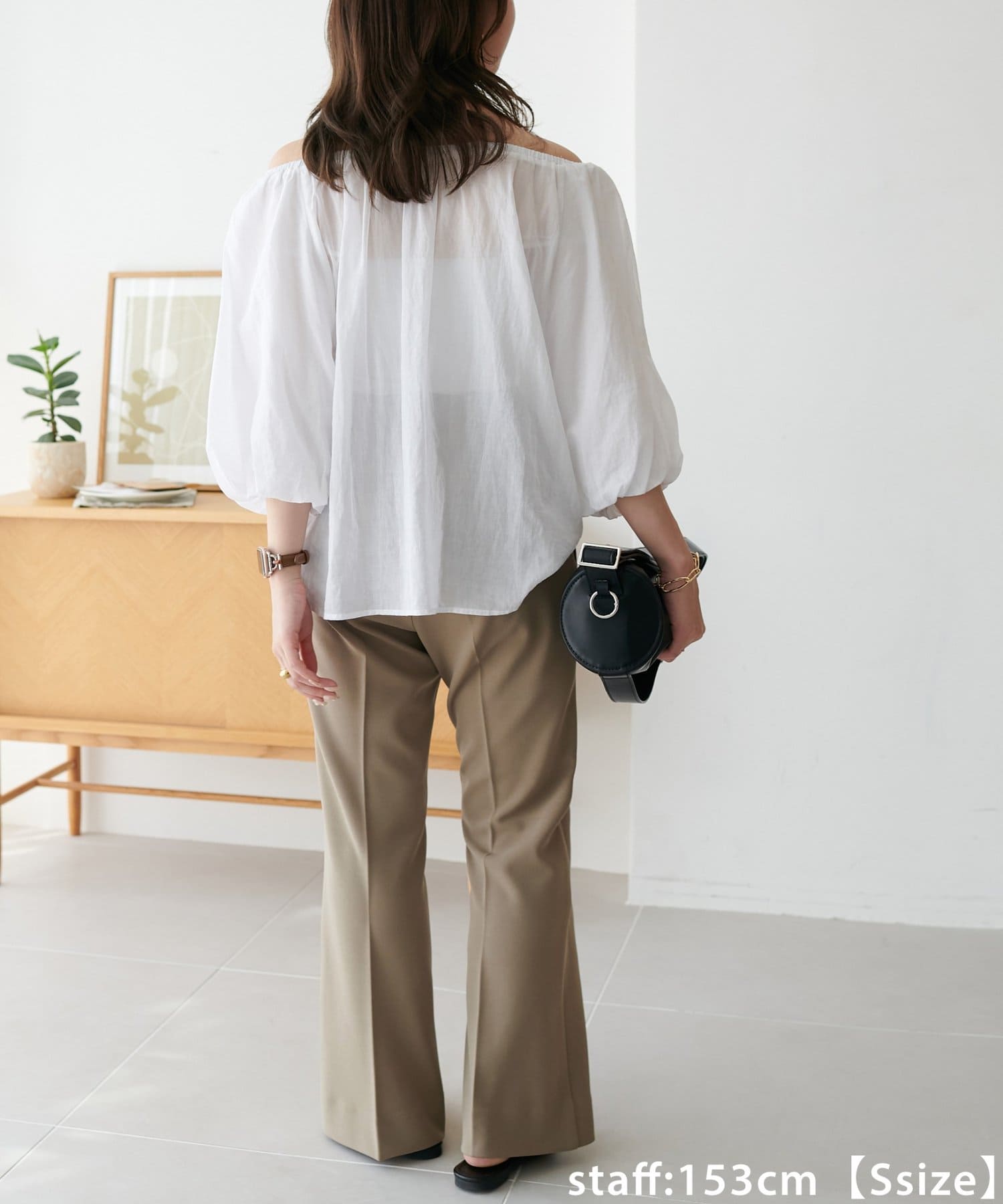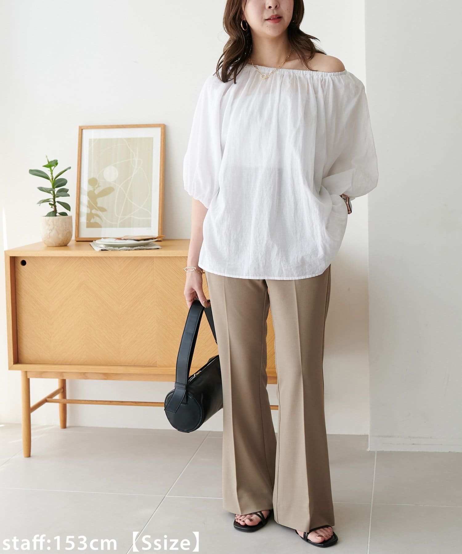 《WEB限定》前後2WAY袖ボリュームペプラムギャザーブラウス
