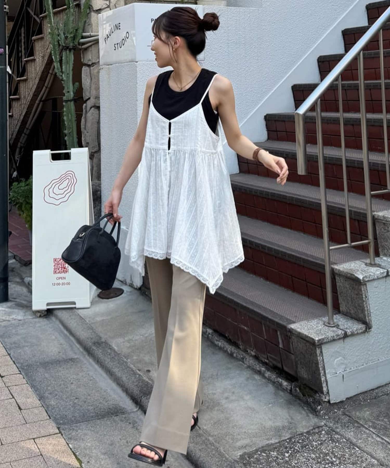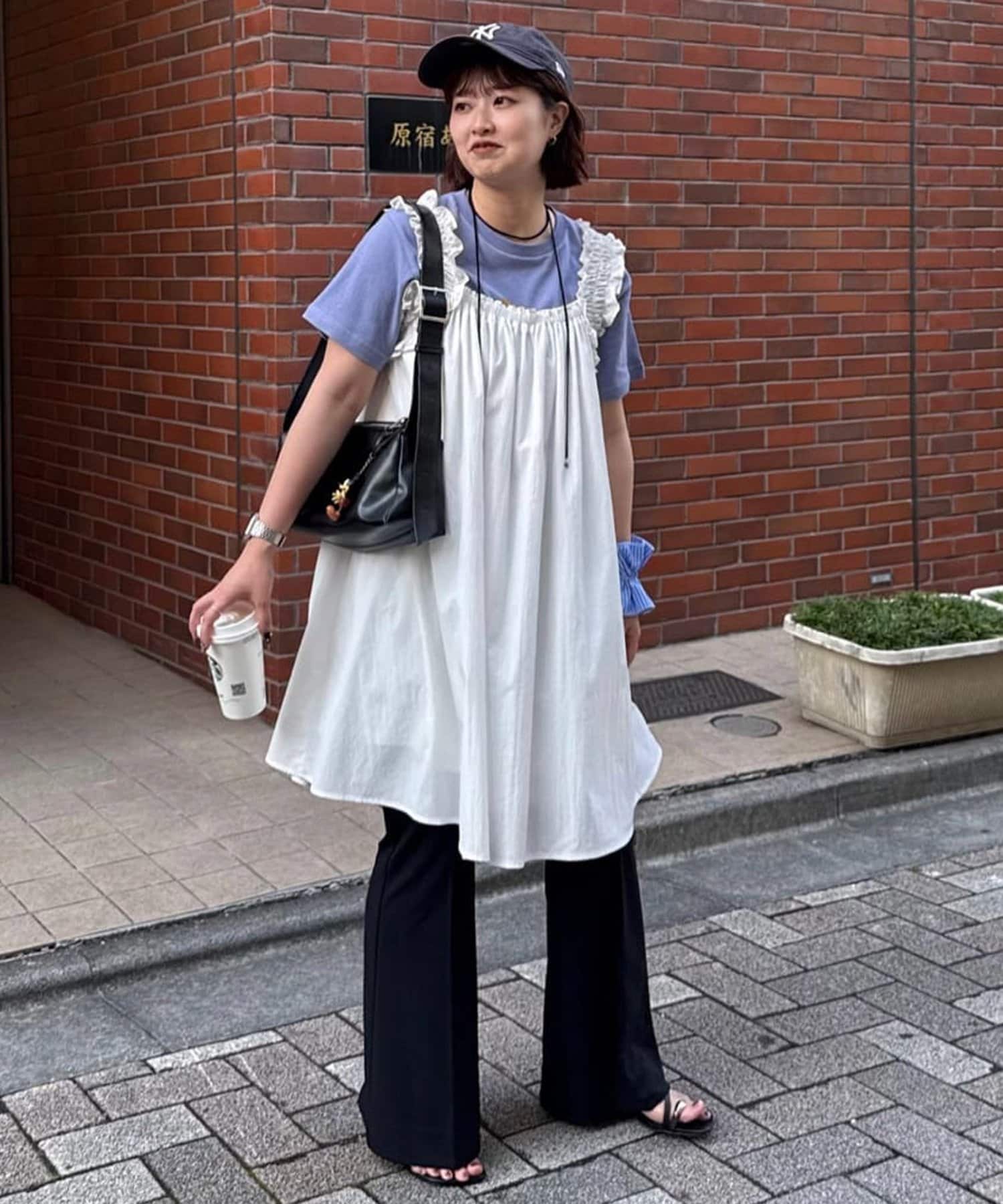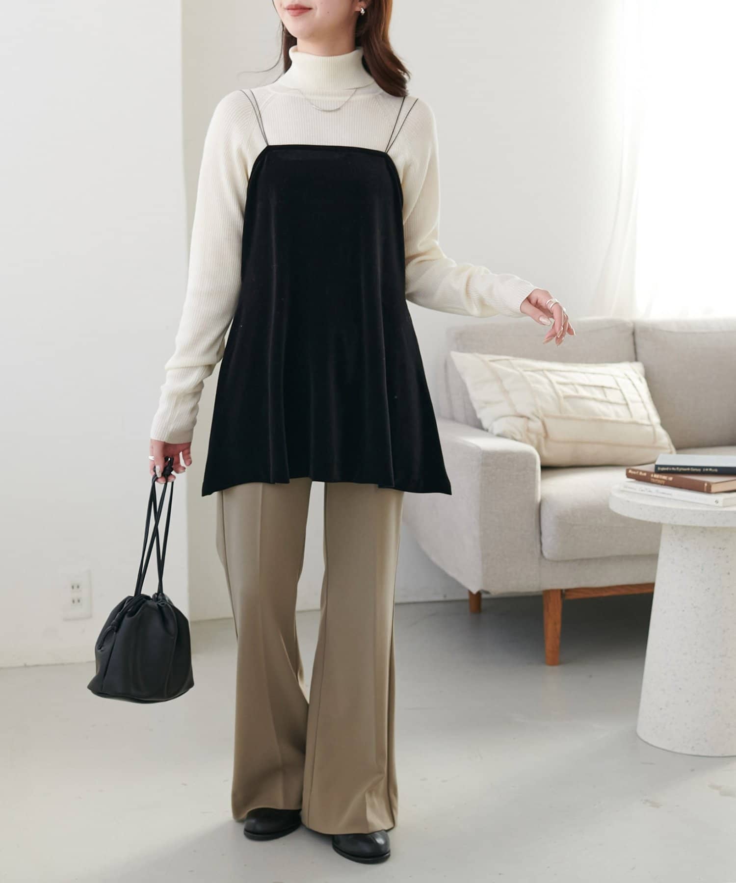トレンドのチュニック合わせも、スッキリしつつ、可愛いだけではなく大人な装いに仕上がります。