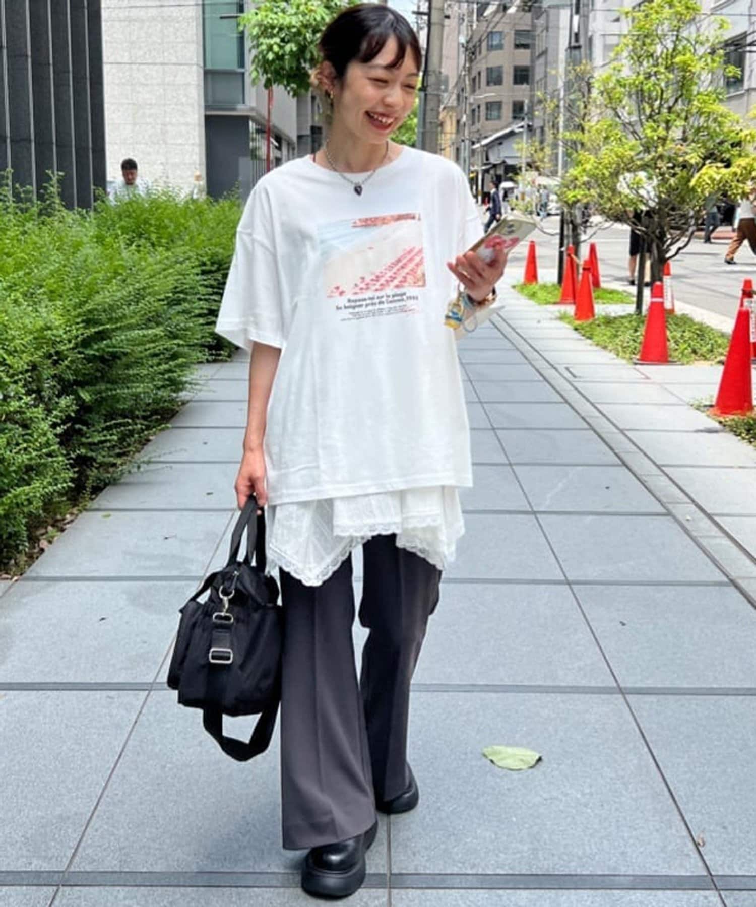 Tシャツやロゴトップスを合わせた抜け感のある大人カジュアルコーデ、ブラウスやシャツを合わせたきれいめコーデにも。