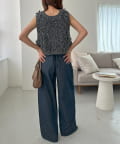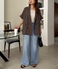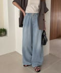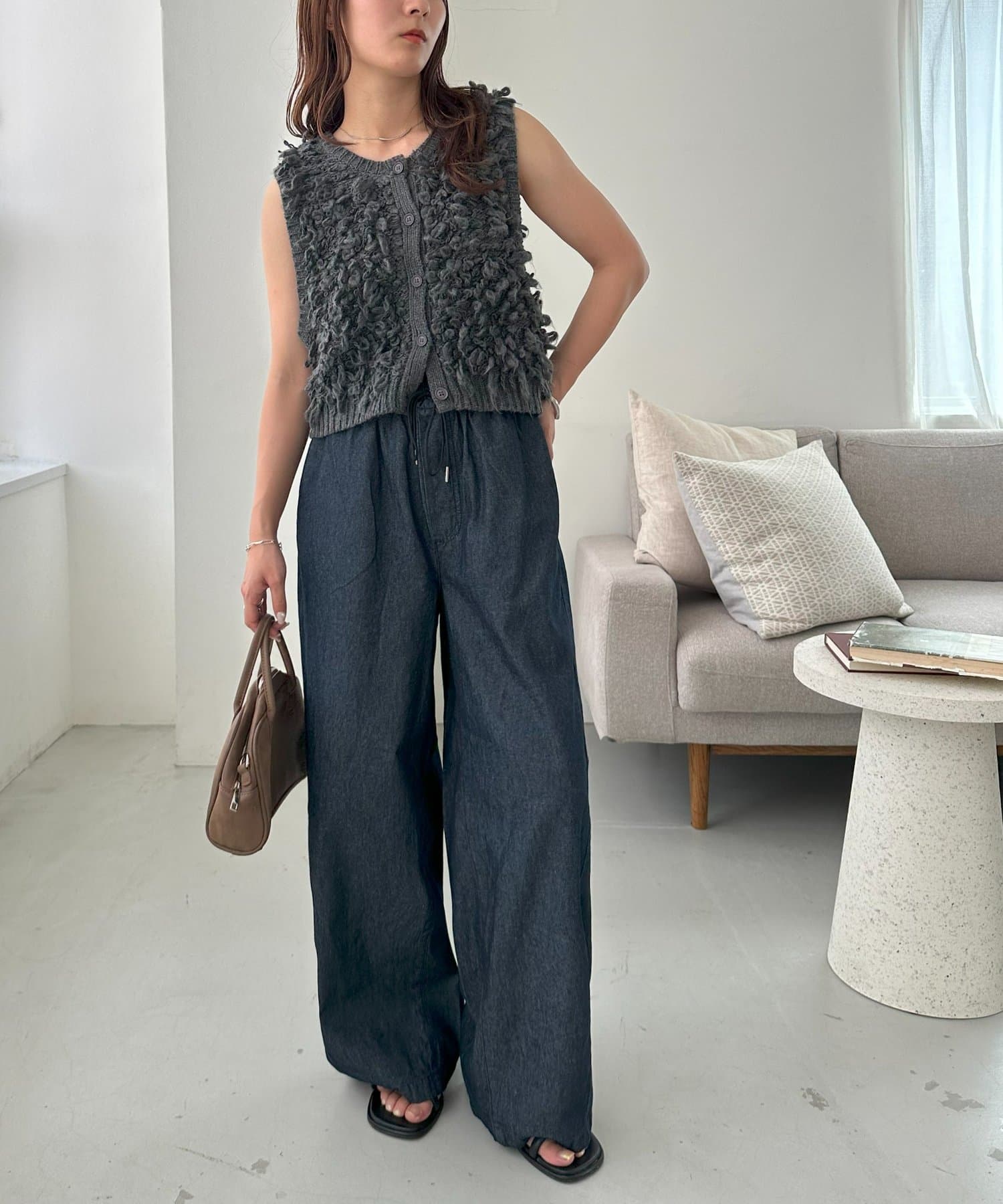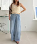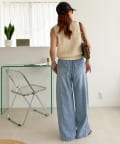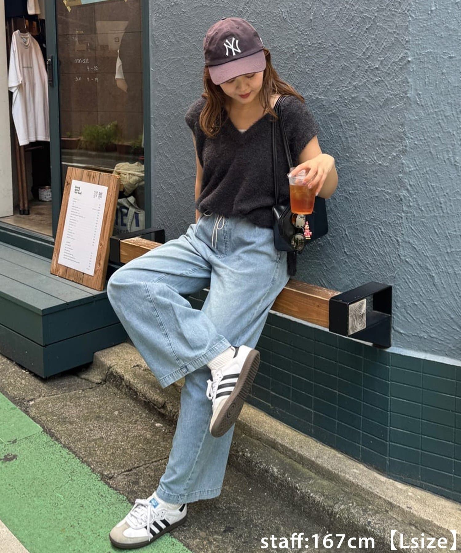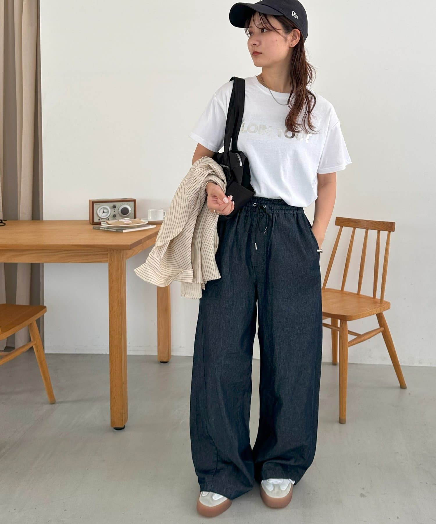 ワイドなシルエットなので、コンパクトな着丈のトップスやウエストラインが見えるアイテムと合わせることで、こなれ感がアップします。