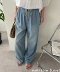 ウエスト部分は総ゴム仕様でリラクシーな着心地を叶えます。さらに、ウエスト紐で調整可能なので3サイズ展開ですが、幅広い体型の方に着ていただけます!
