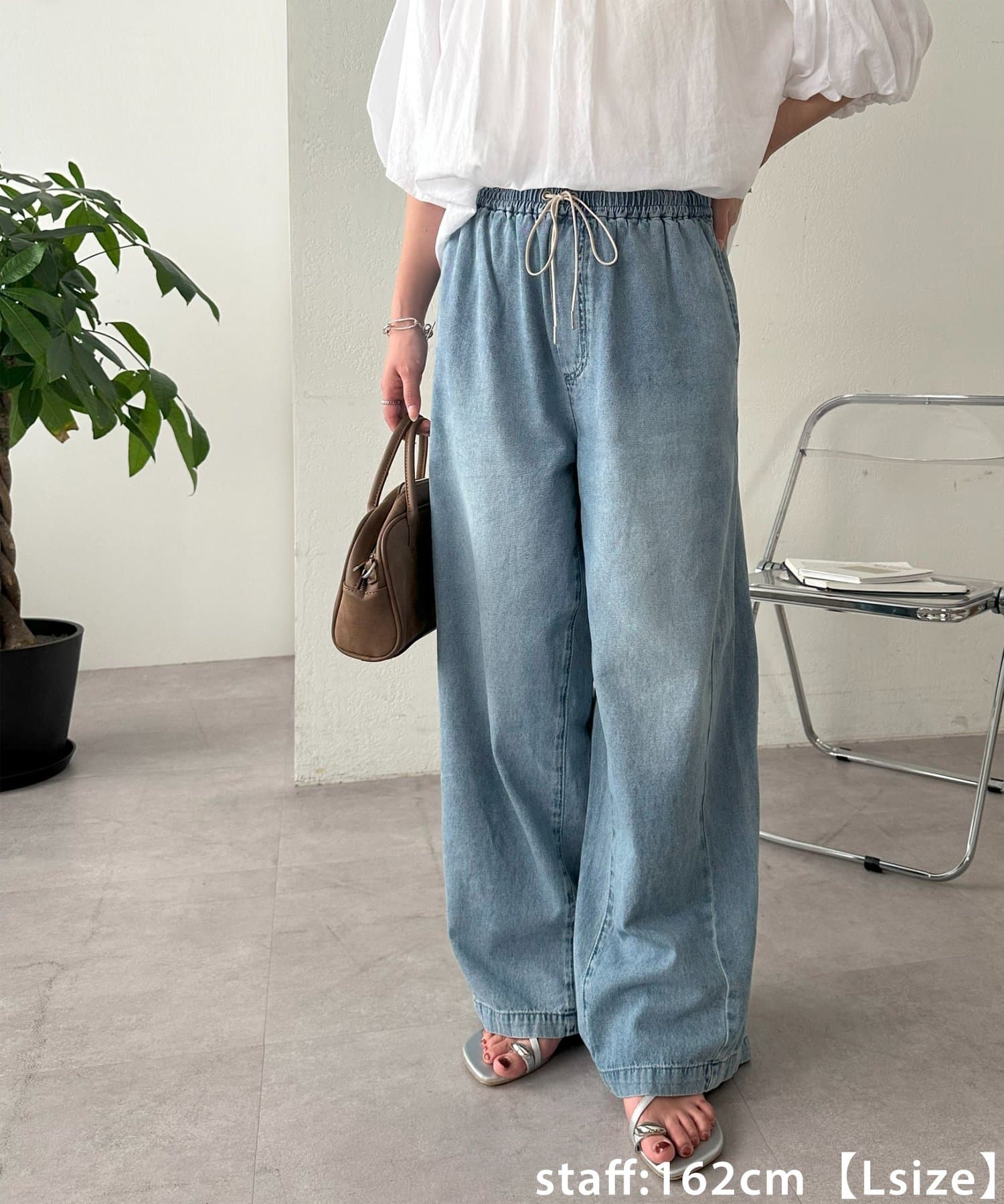 【新色追加!/夏も快適◎/身長別着用動画あり】ライトオンスデニムイージーワイドパンツ