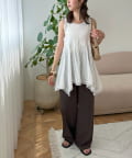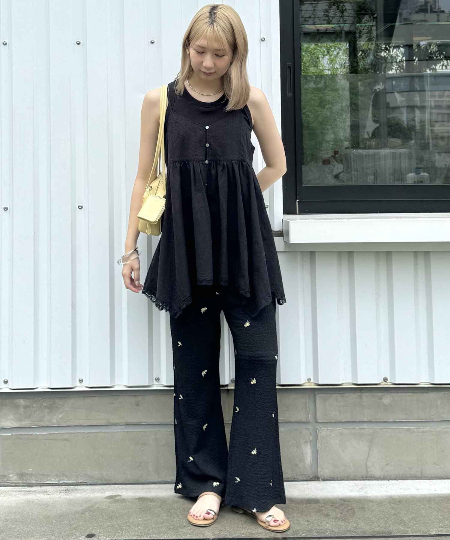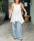 153cmスタッフ:立体感のあるキャミチュニックですが、広がりすぎないデザインです!