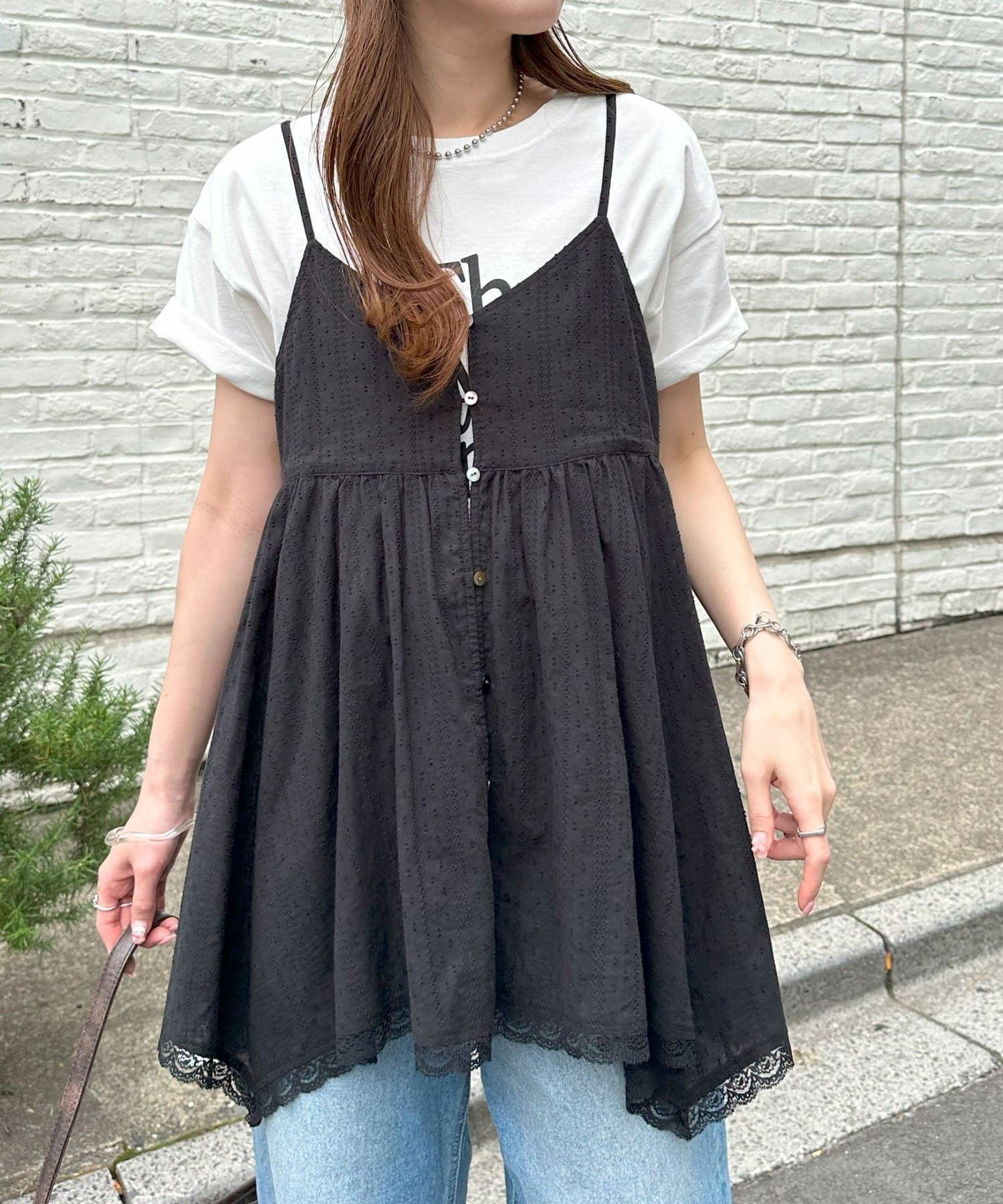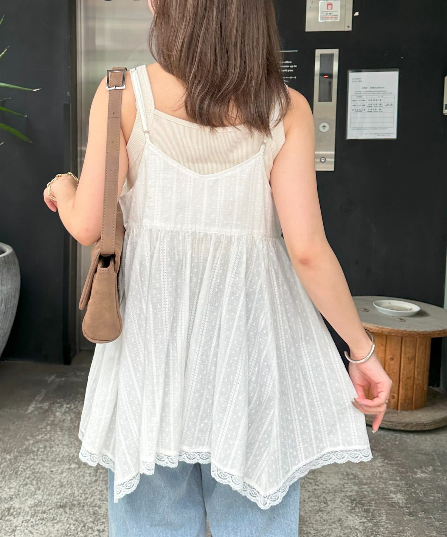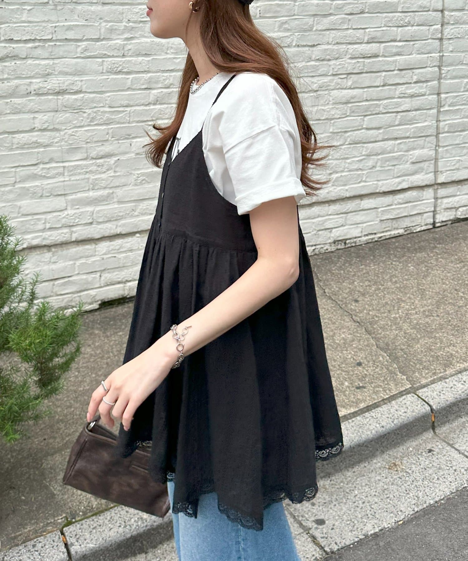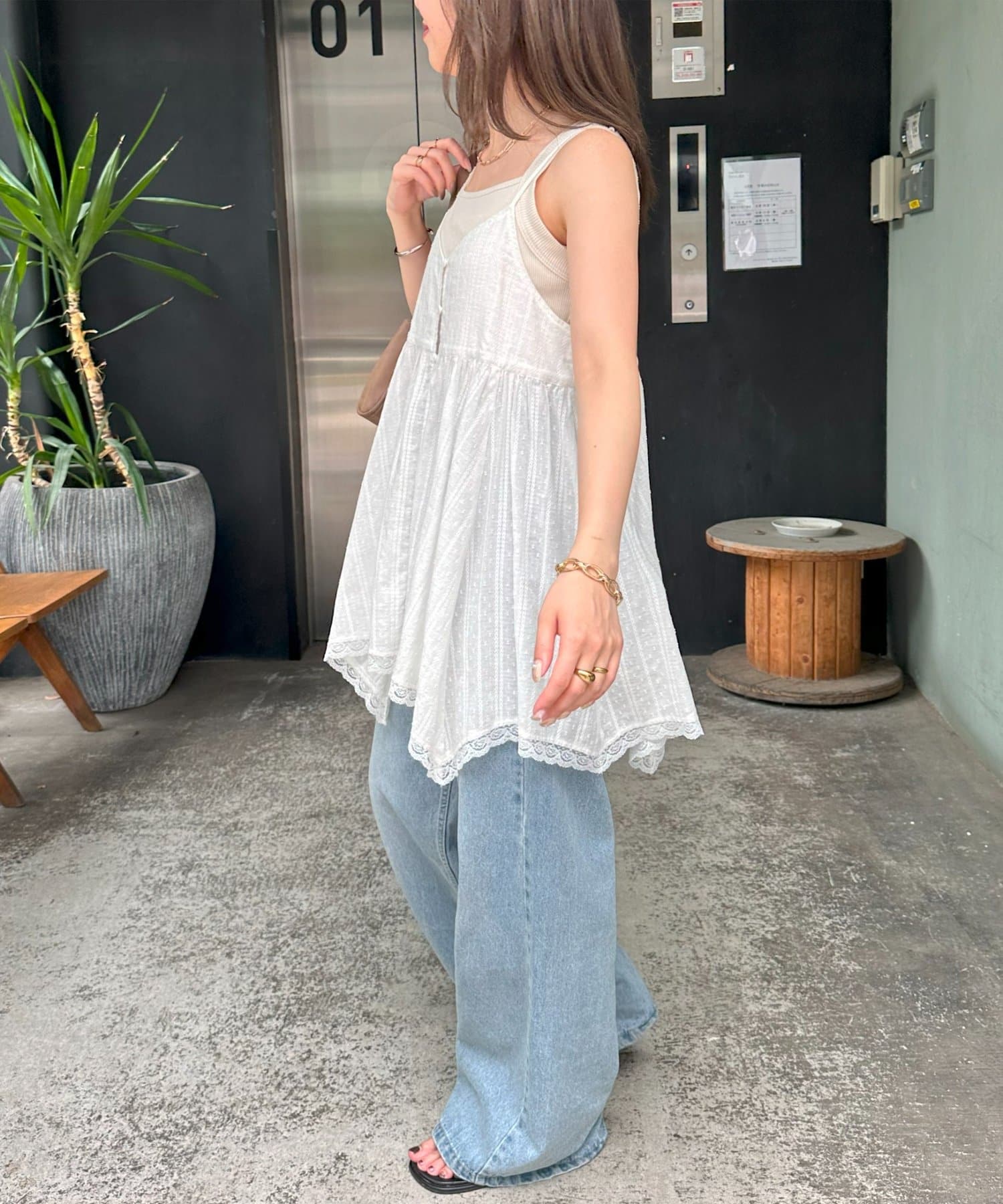 繊細なレースとふんわり広がるシルエットが魅力のキャミチュニック