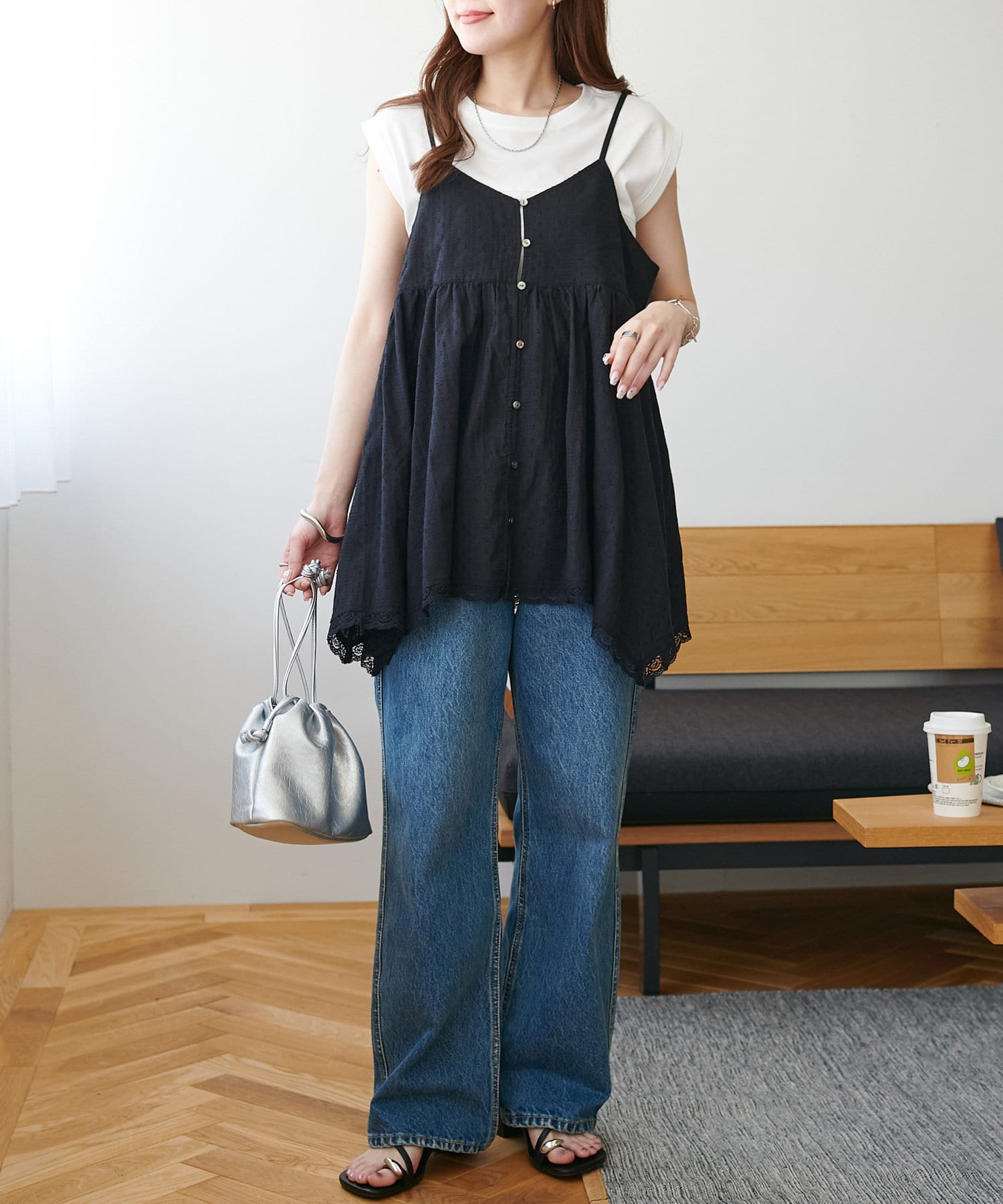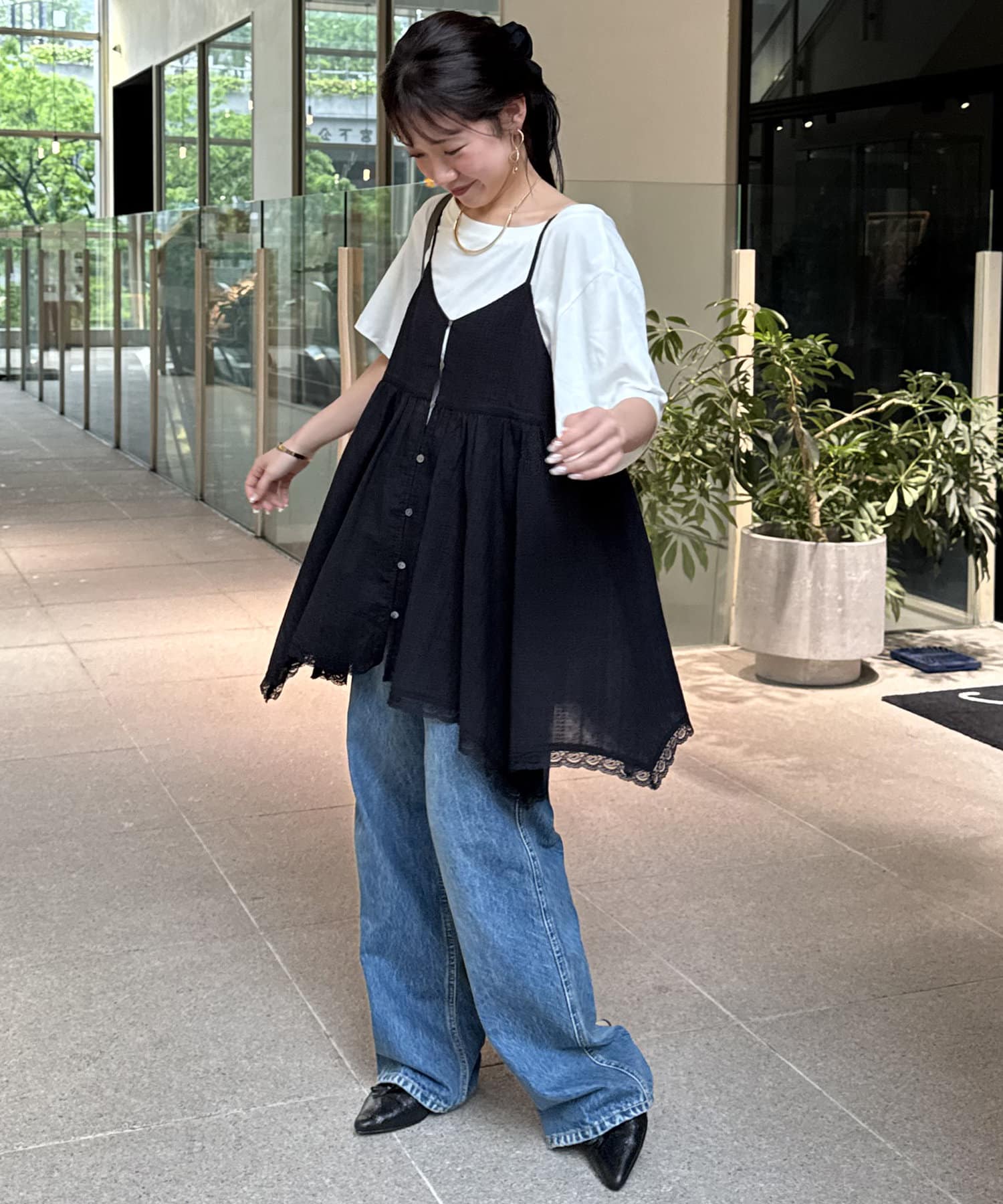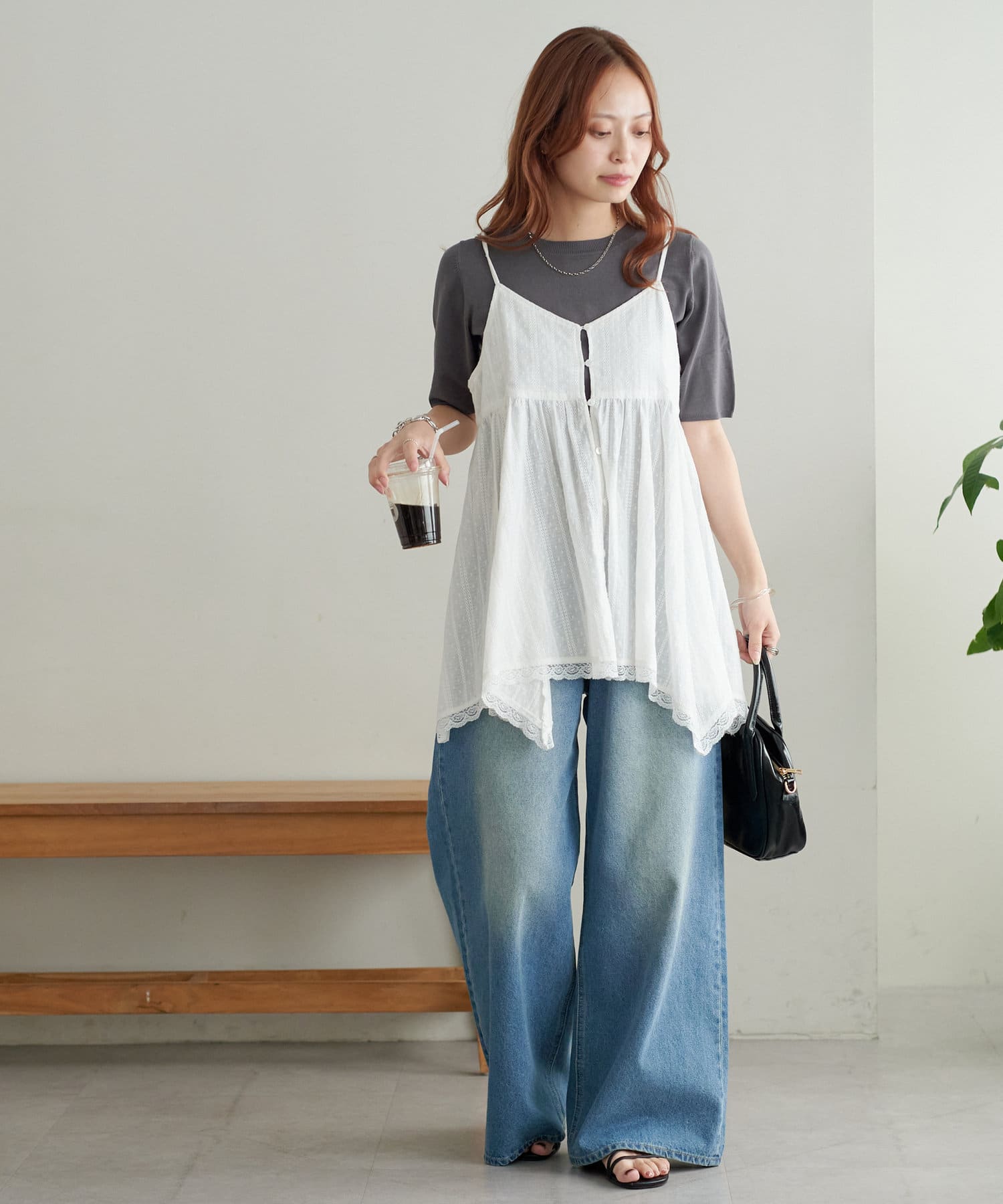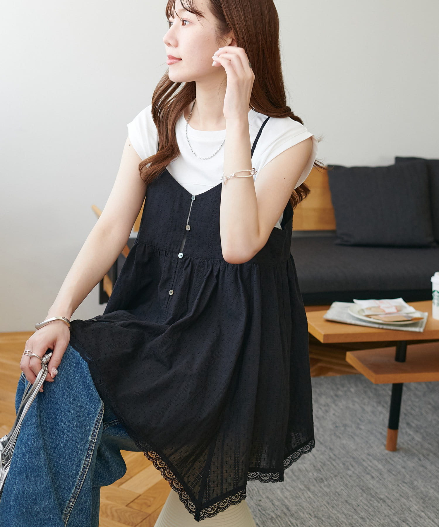 繊細なレースとふんわり広がるシルエットが魅力のキャミチュニック