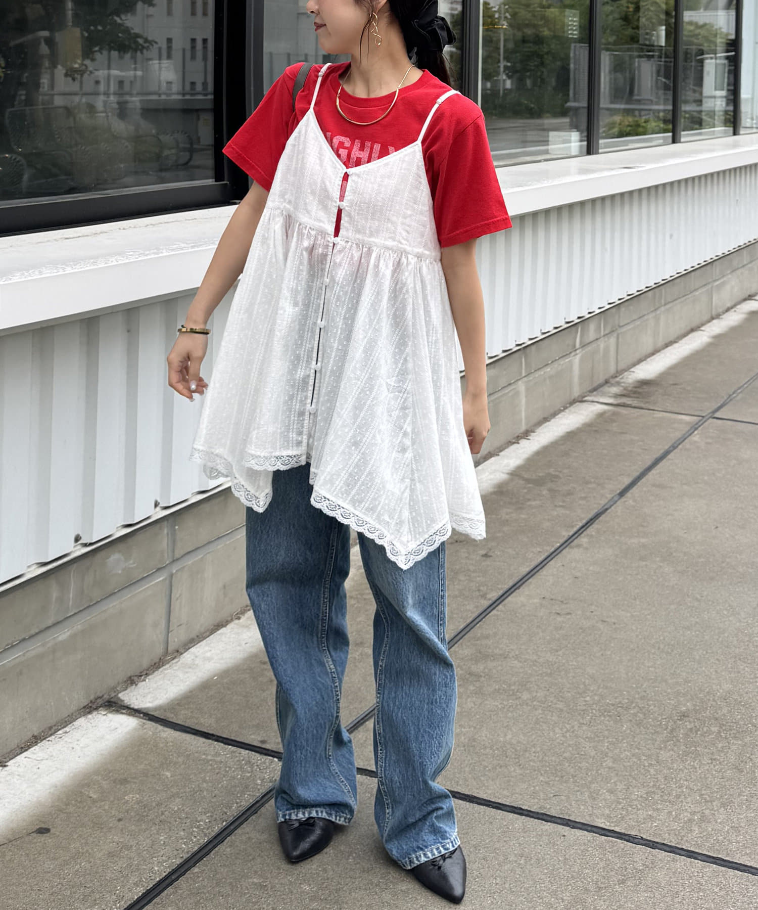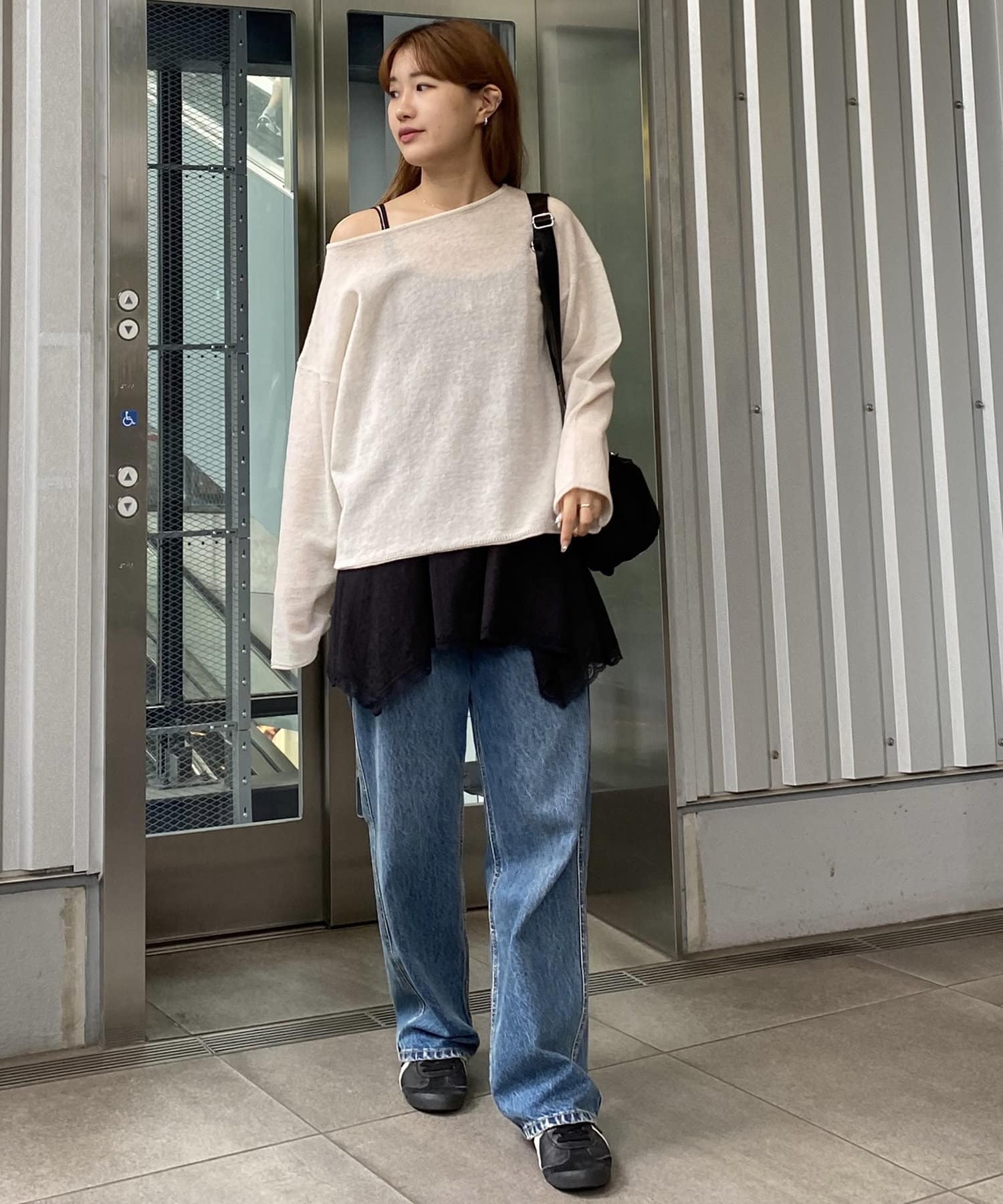 インナーはロンTから半袖、キャミソールまで合わせられるので、季節問わず楽しめます。