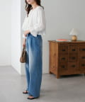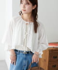 肩周りや袖口にギャザーを入れることで、動きのあるナチュラルなボリューム感がでて柔らかい印象に。