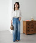 155cmスタッフ:甘めからカジュアルまで、テイストを選ばず着回せる万能アイテム◎ショート丈のアイテムなのでハイウエストのボトムスと合わせるとスタイルアップ効果抜群。