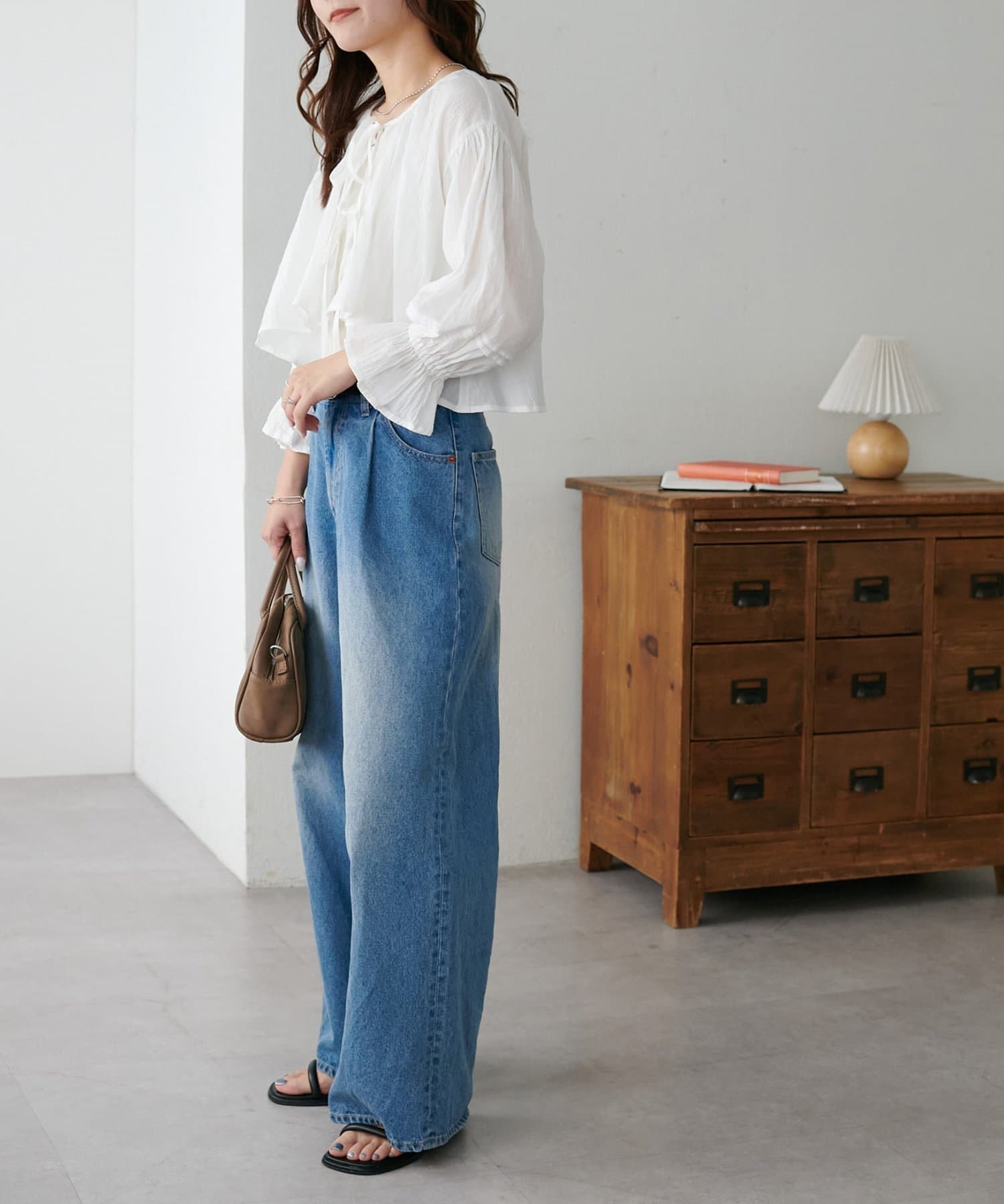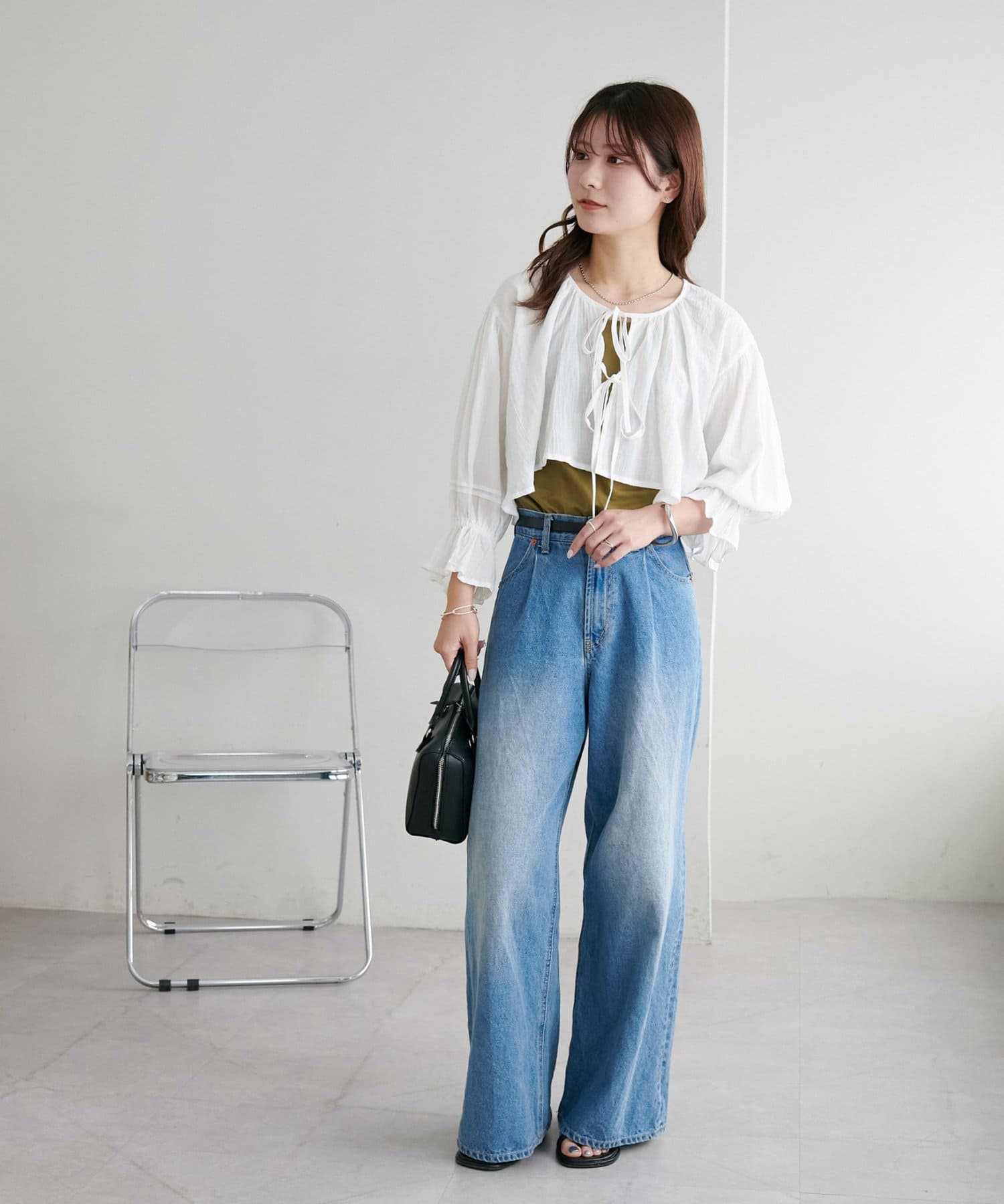 開けて着ても、リボンを結んでも雰囲気が変わるので、スタイリングの幅が広がります♪