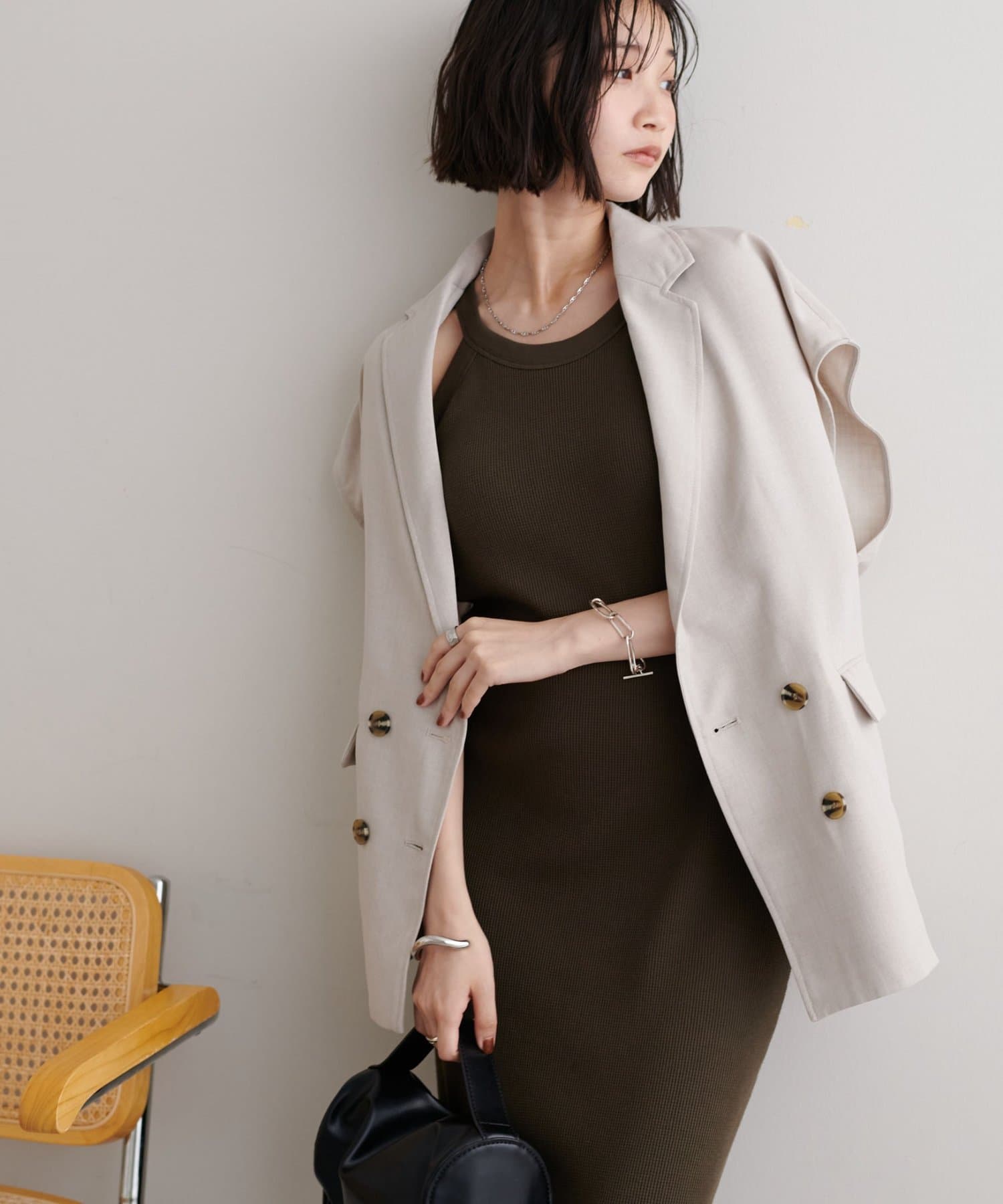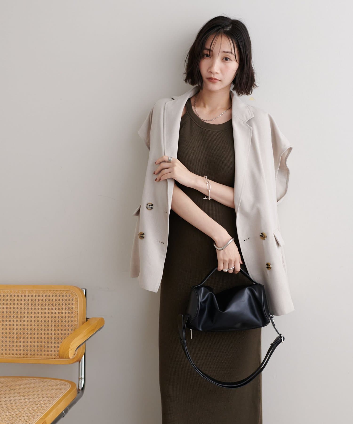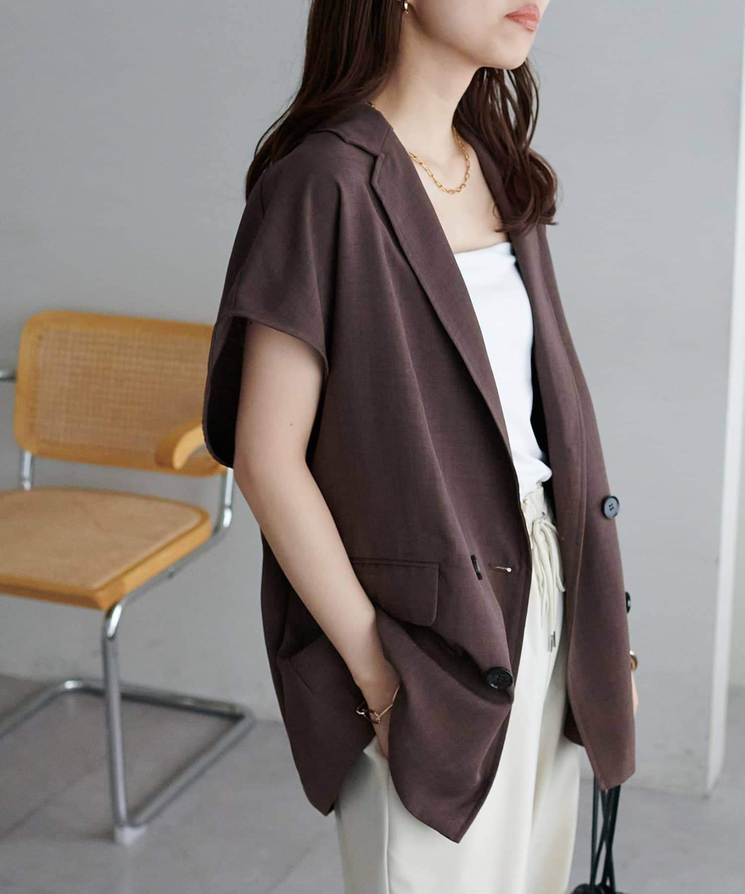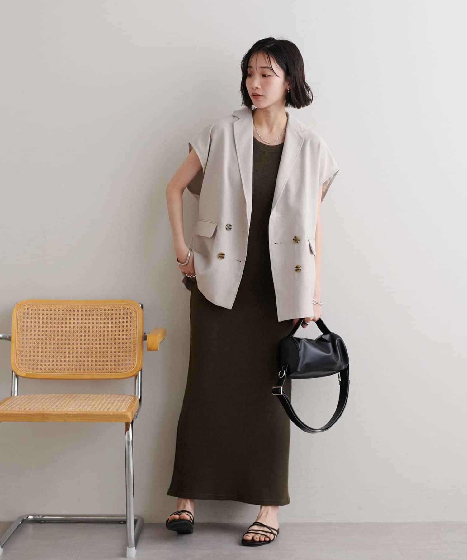 フレンチスリーブなのでキャミやタンク合わせがおすすめ。露出を控えたい方は、シアーの長袖などを合わせると◎パンツ、スカートどちらも相性抜群。ワンピースの上から羽織るとよりこなれ感のあるコーデになります。