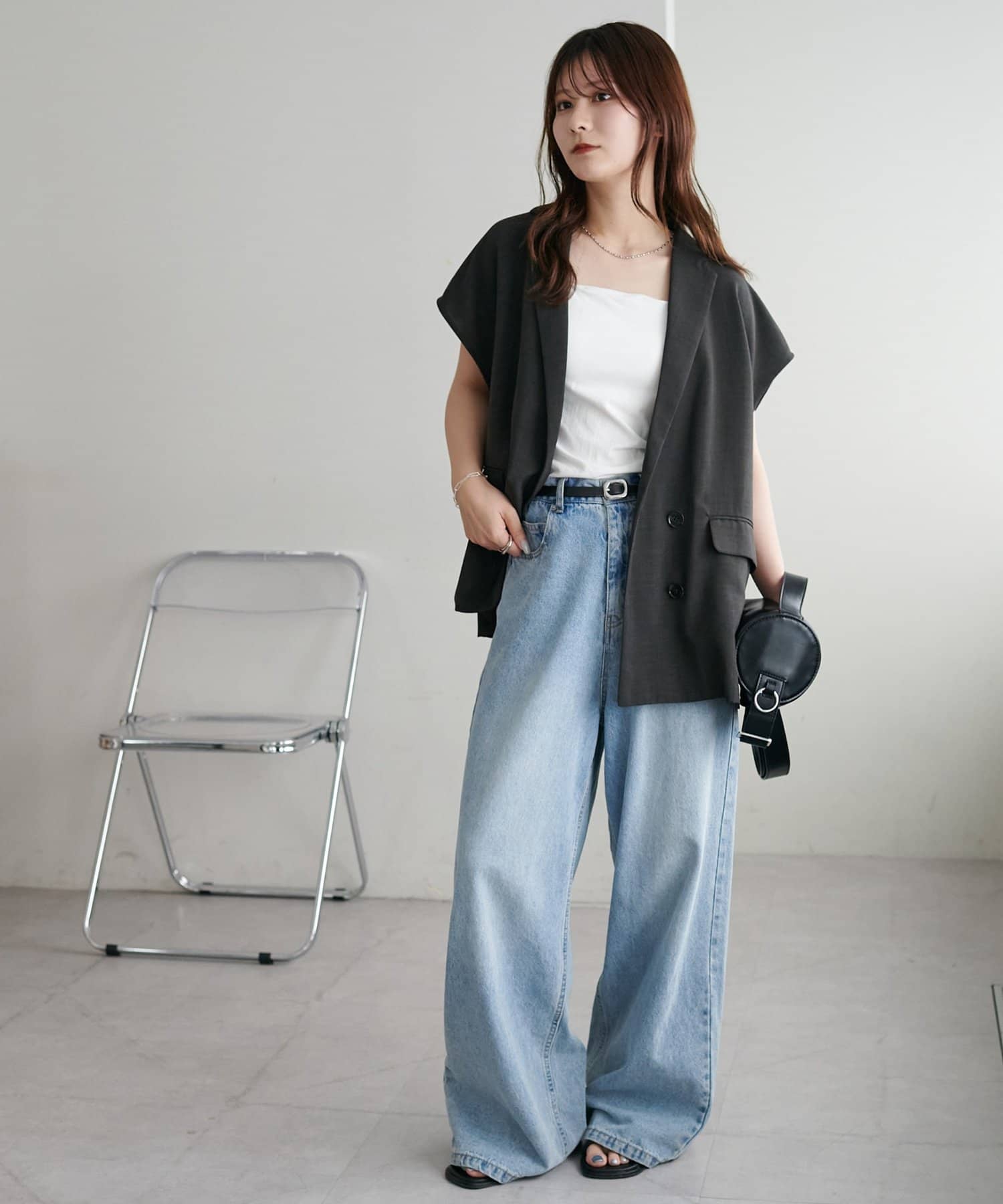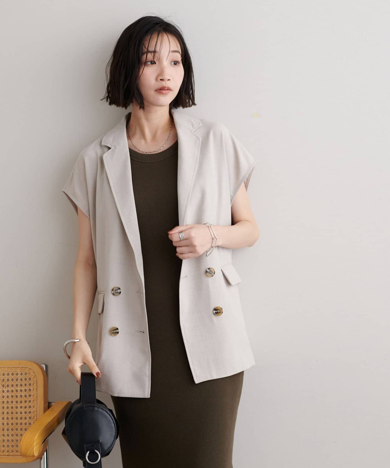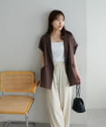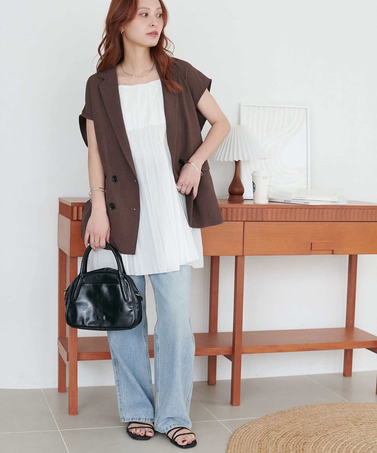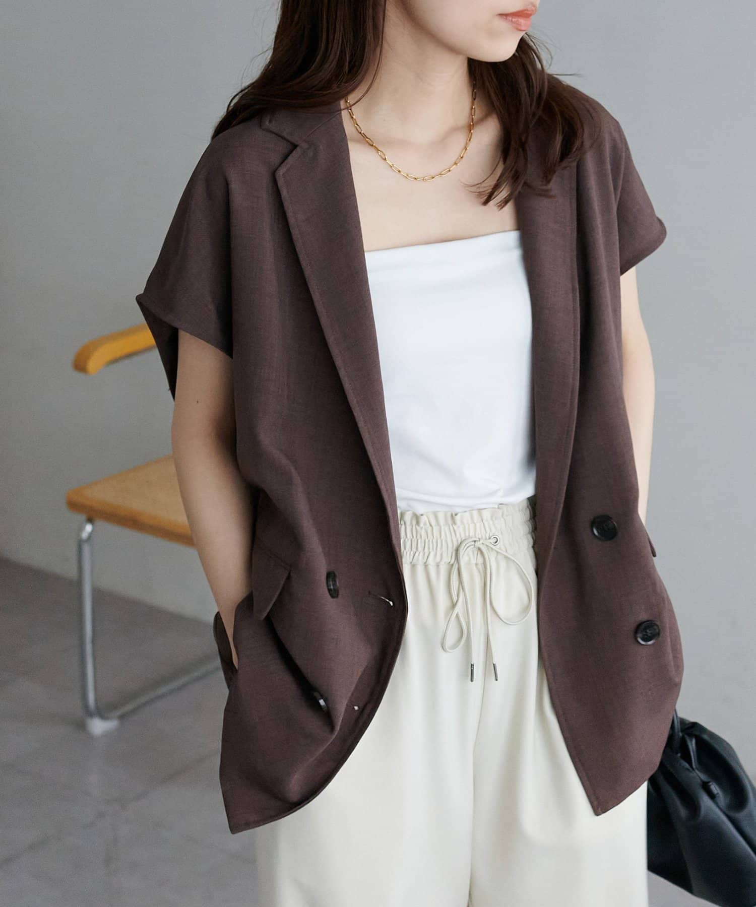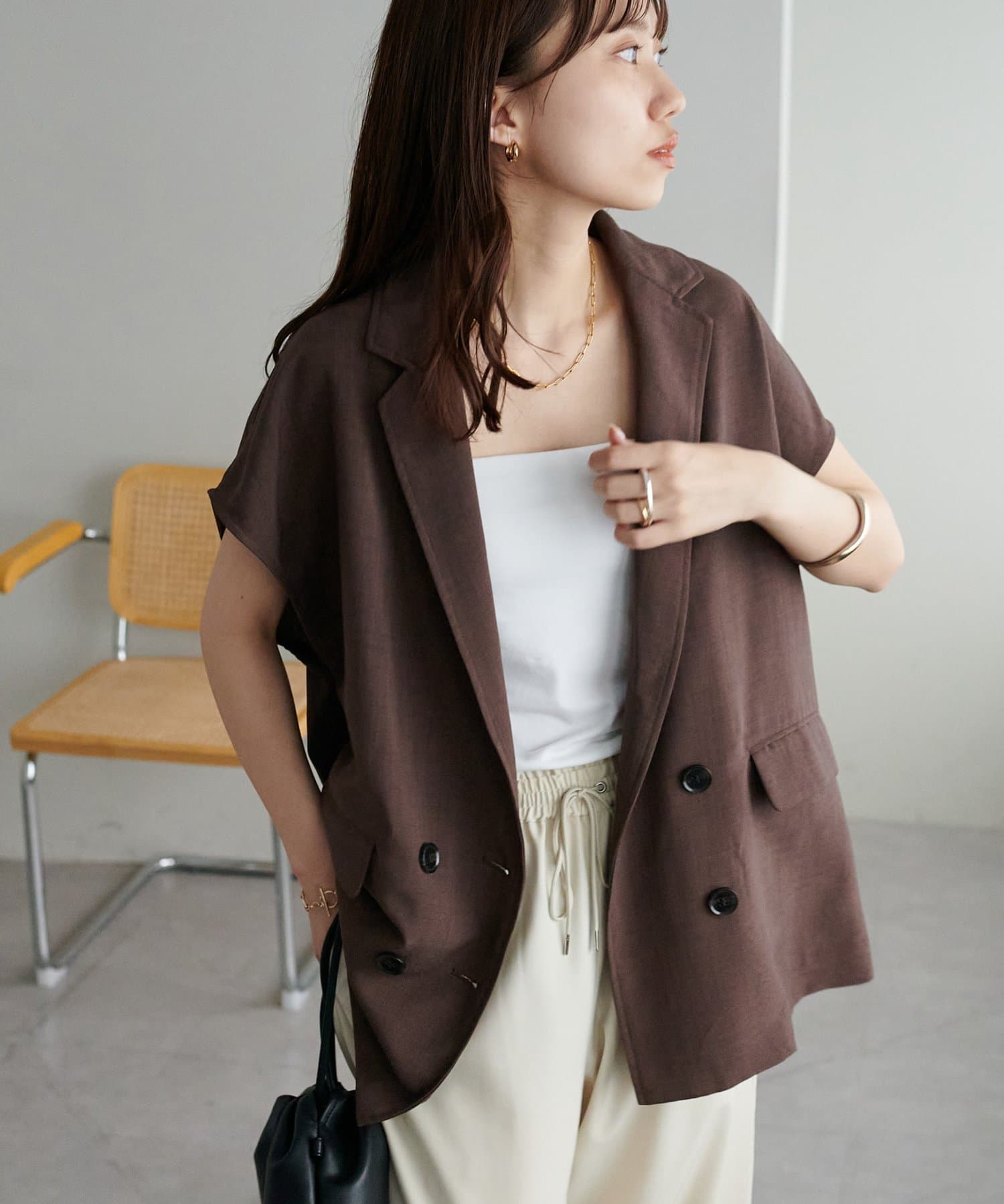 フレンチスリーブなのでキャミやタンク合わせがおすすめ。露出を控えたい方は、シアーの長袖などを合わせると◎パンツ、スカートどちらも相性抜群。ワンピースの上から羽織るとよりこなれ感のあるコーデになります。