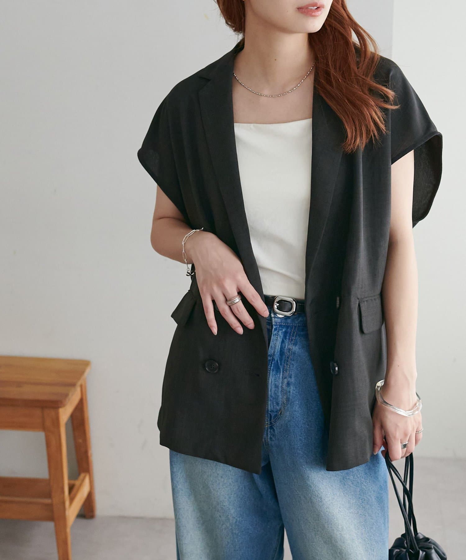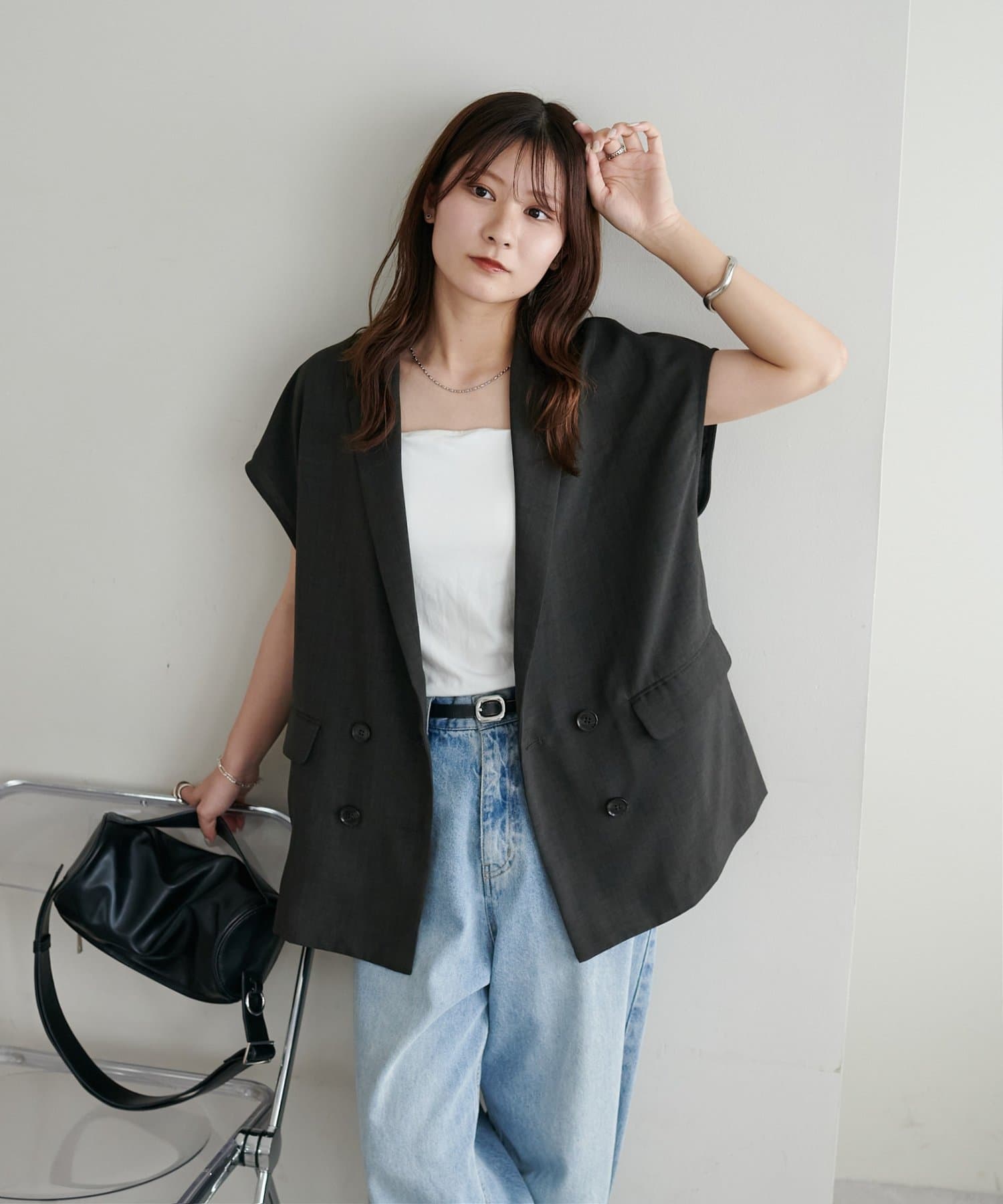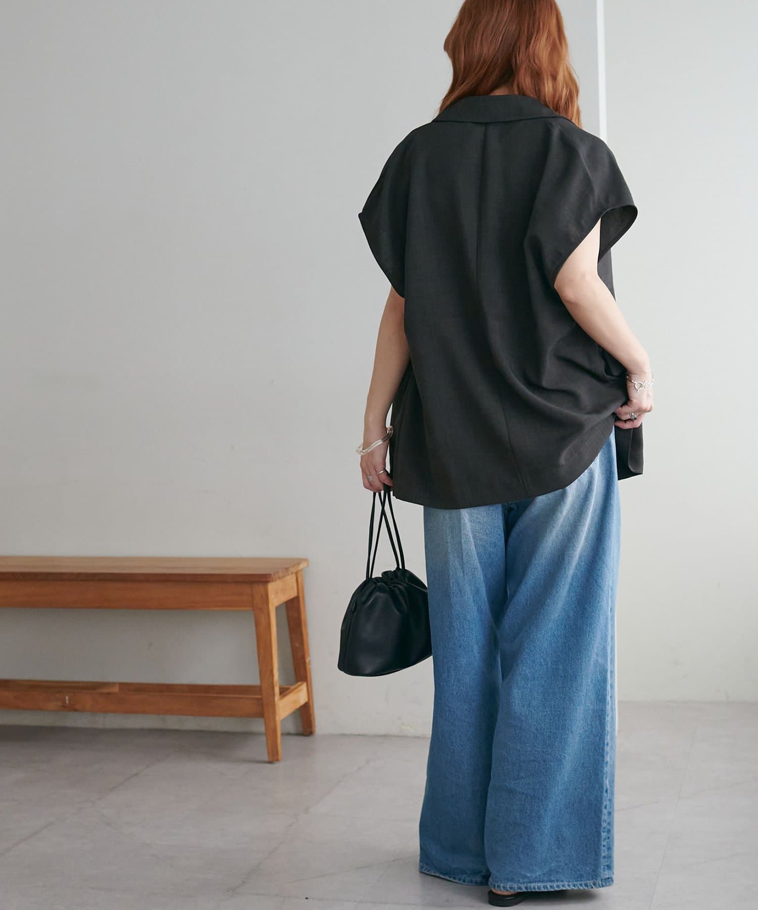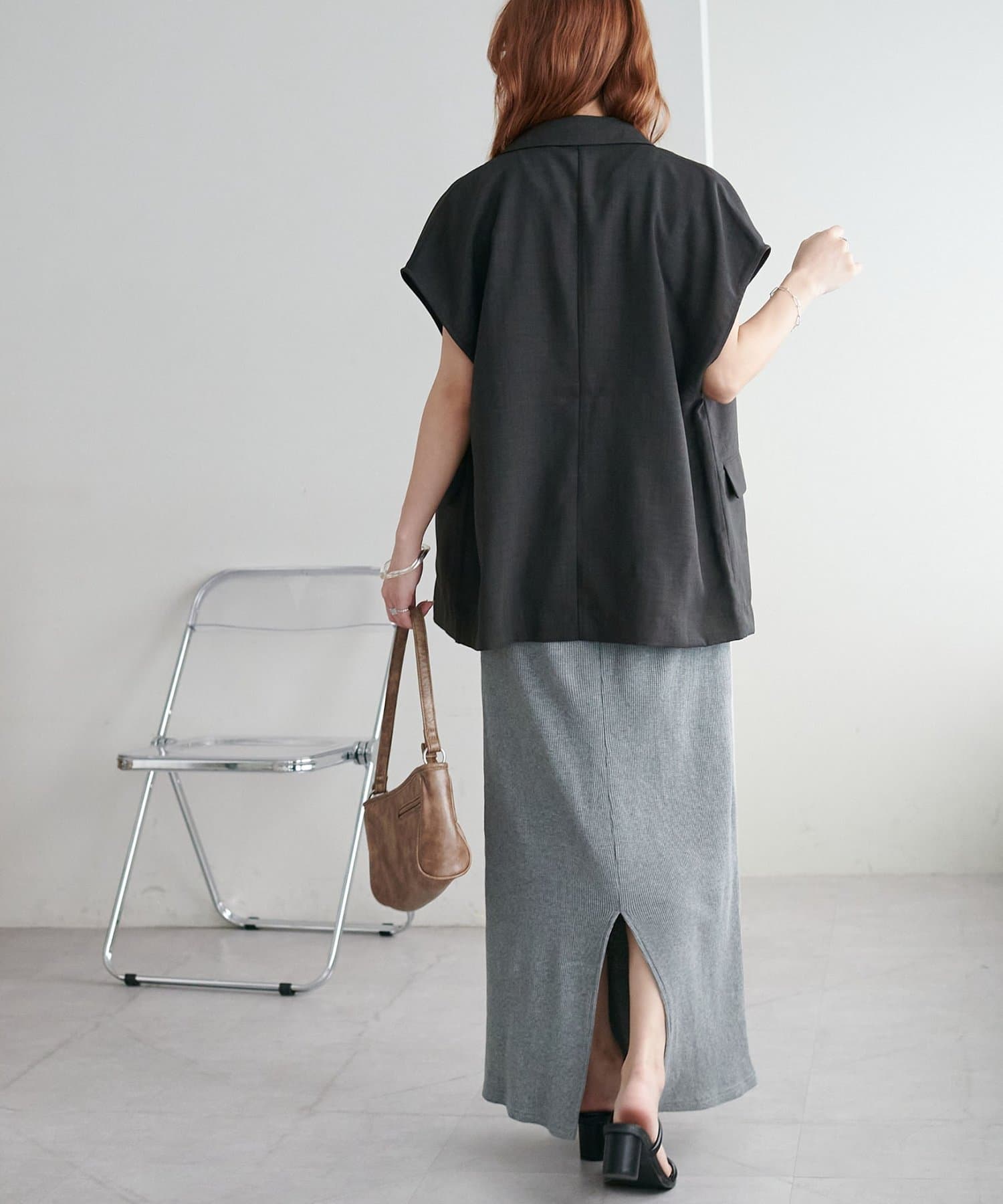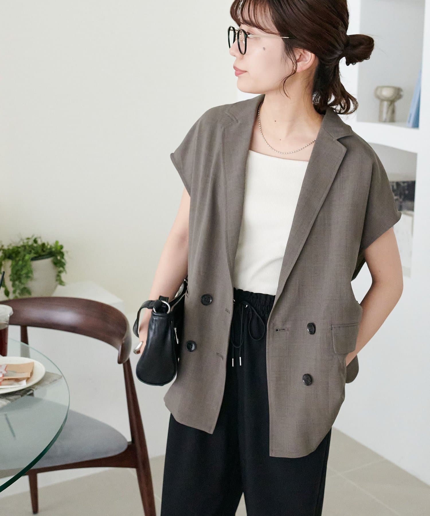 フレンチスリーブなのでキャミやタンク合わせがおすすめ。露出を控えたい方は、シアーの長袖などを合わせると◎パンツ、スカートどちらも相性抜群。ワンピースの上から羽織るとよりこなれ感のあるコーデになります。