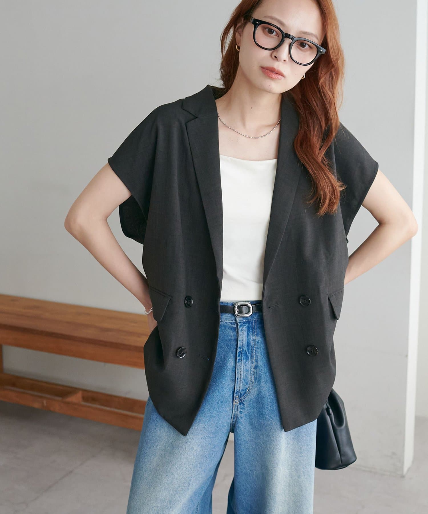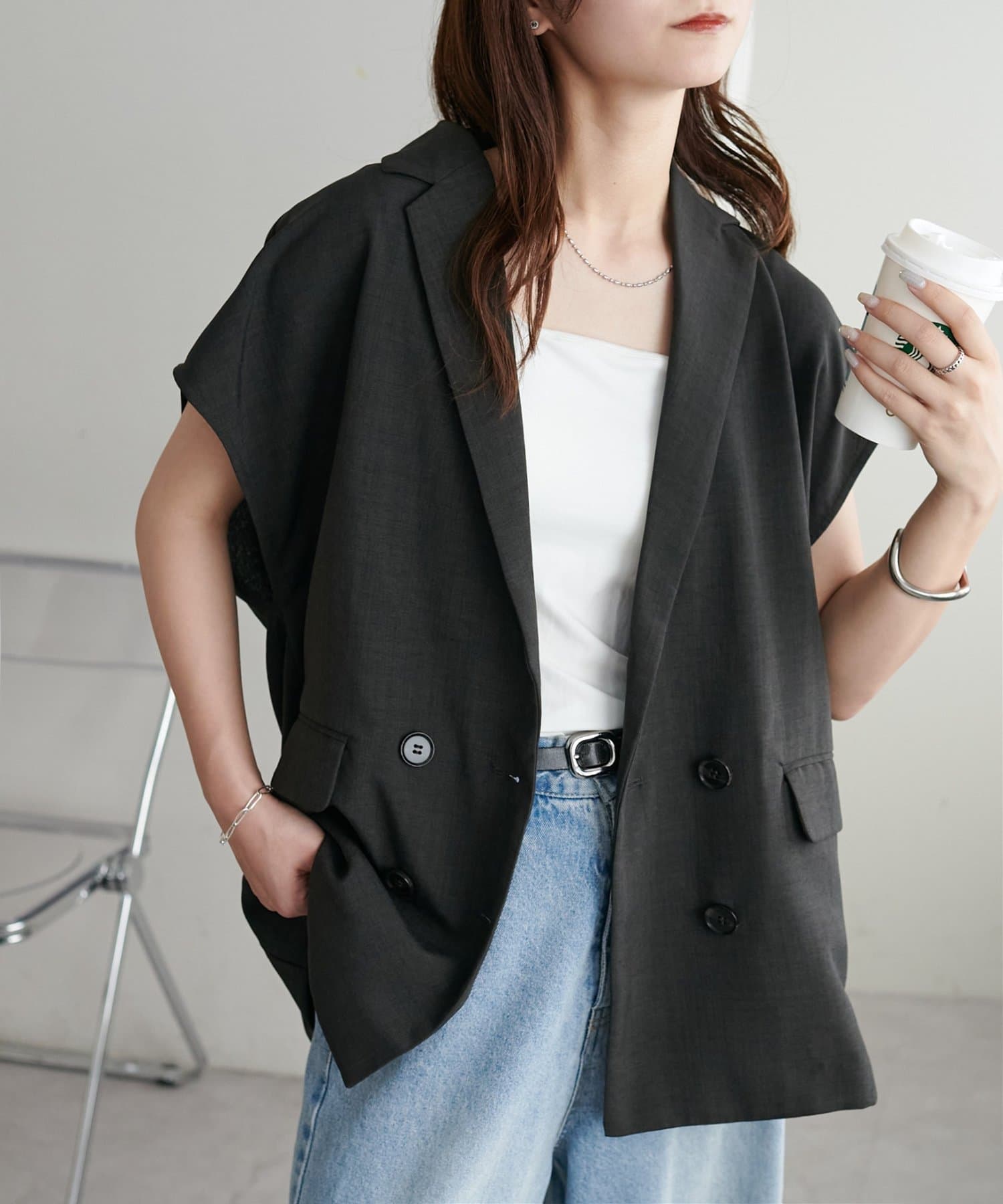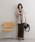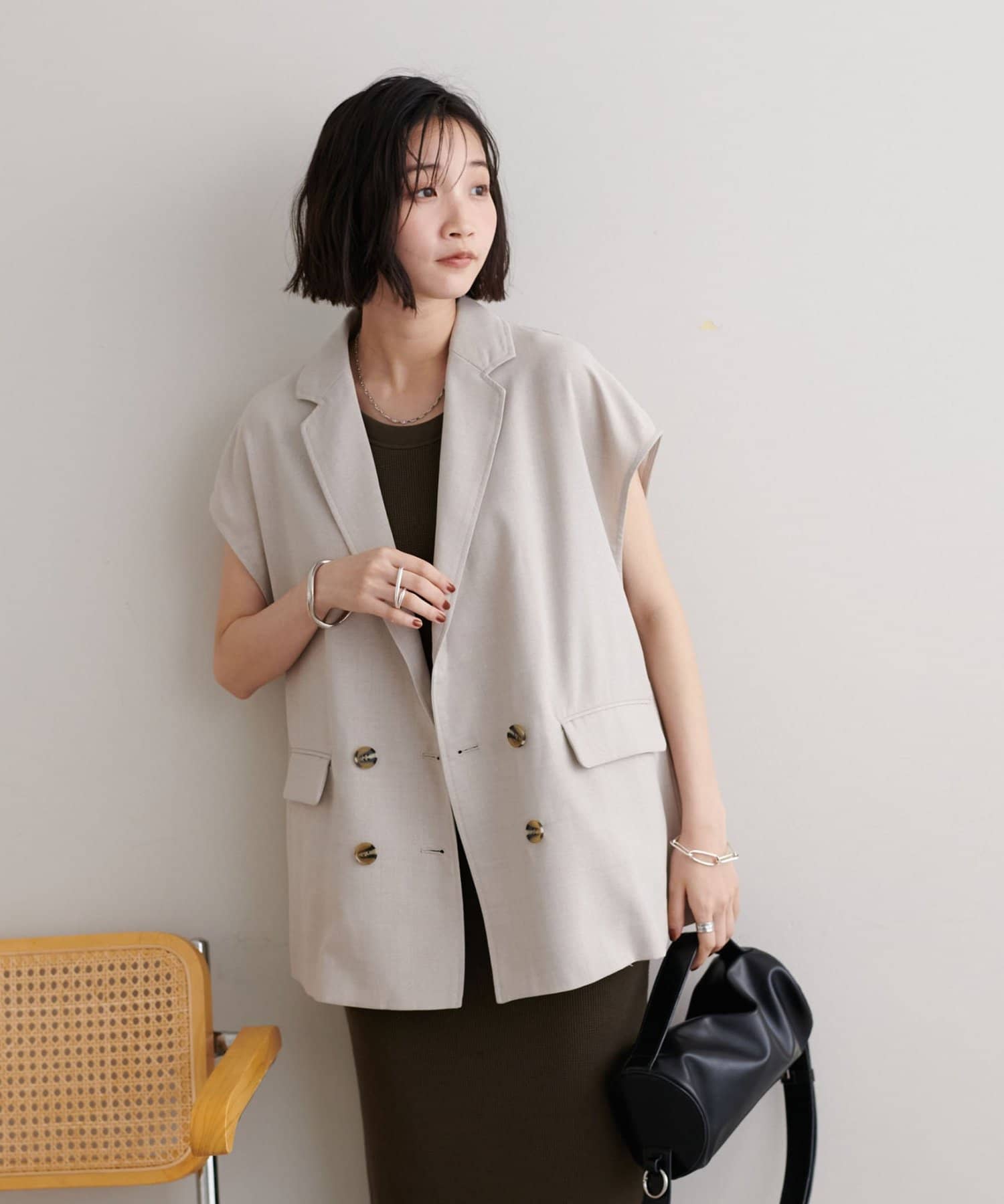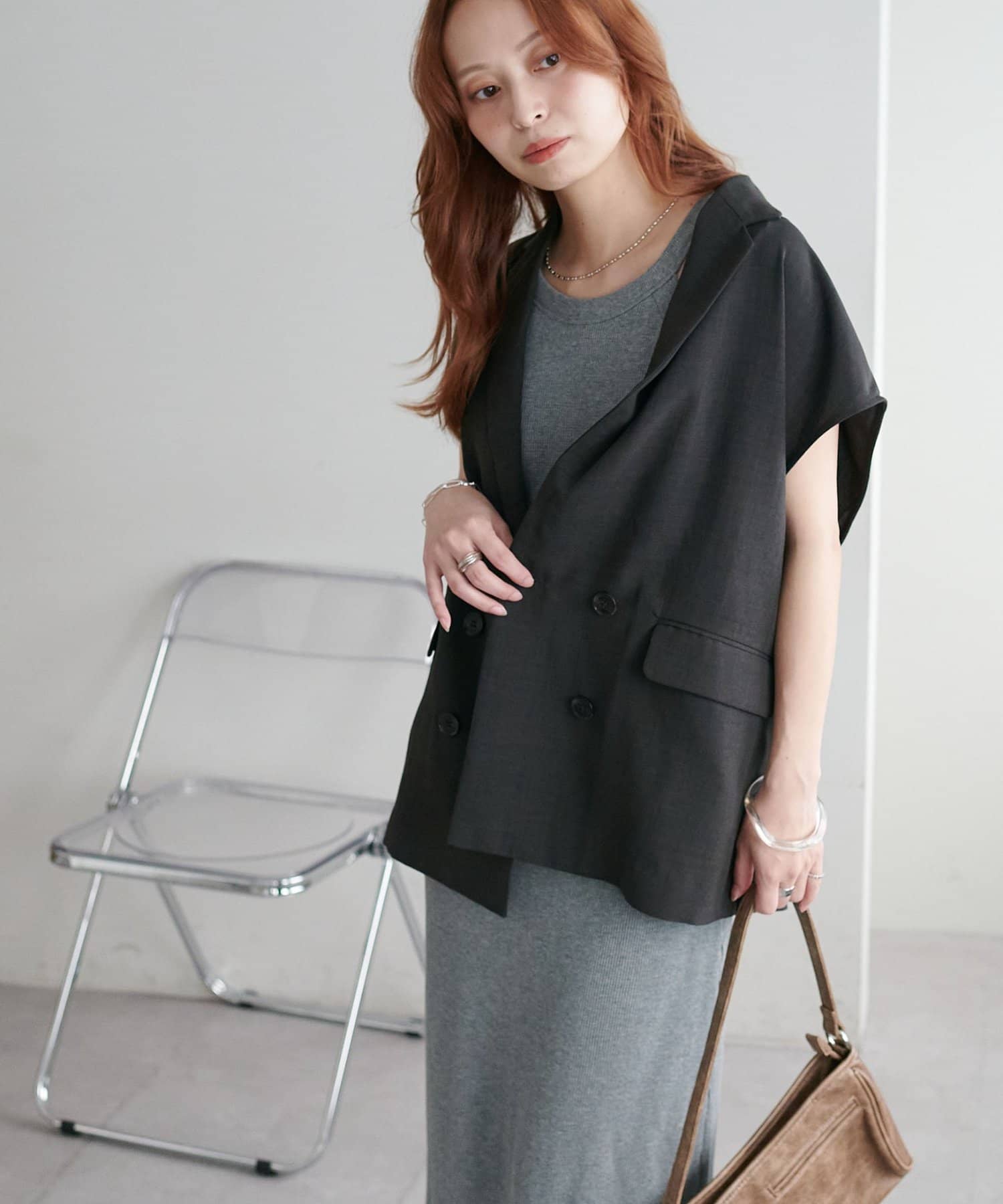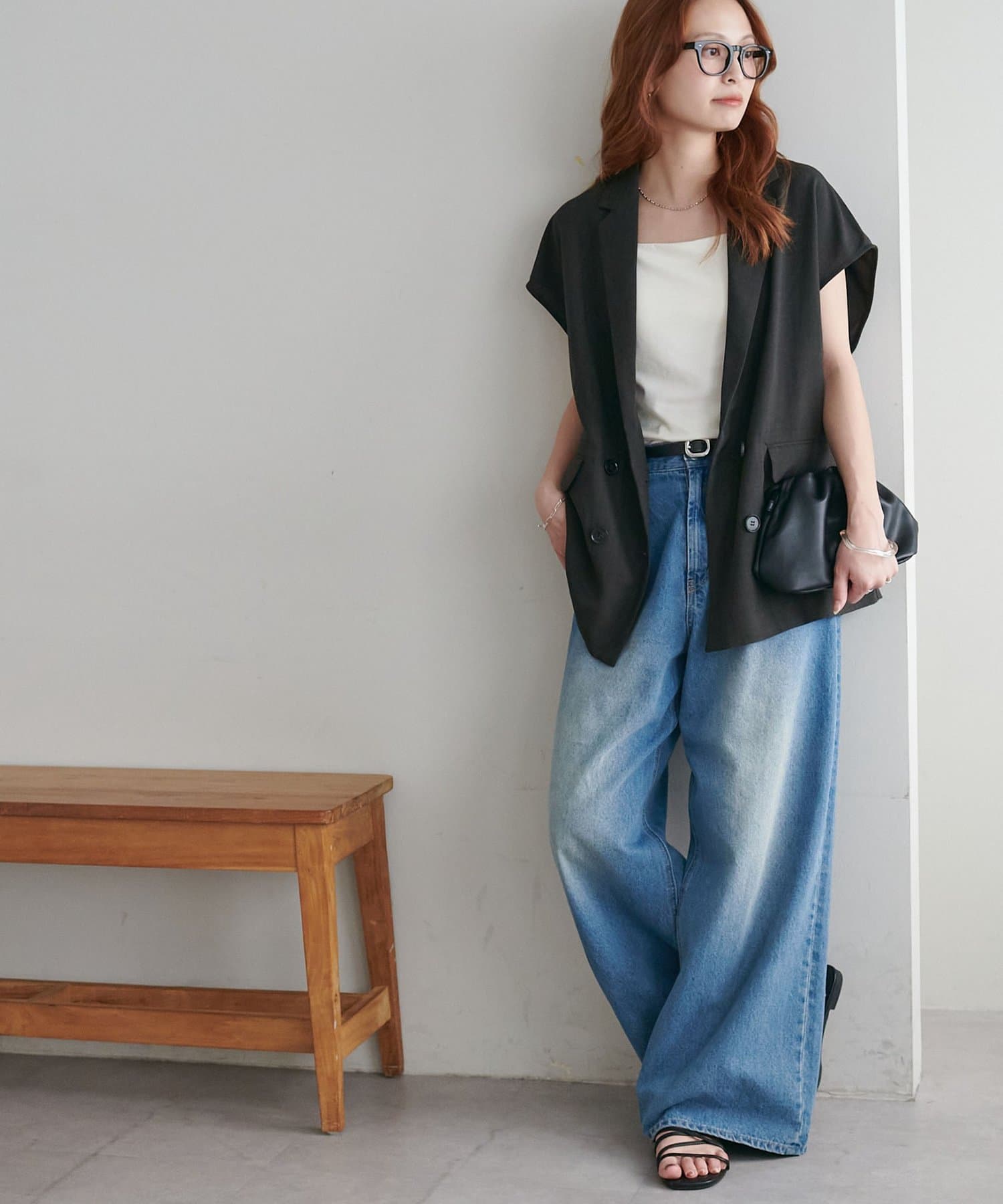 フレンチスリーブなのでキャミやタンク合わせがおすすめ。露出を控えたい方は、シアーの長袖などを合わせると◎パンツ、スカートどちらも相性抜群。ワンピースの上から羽織るとよりこなれ感のあるコーデになります。