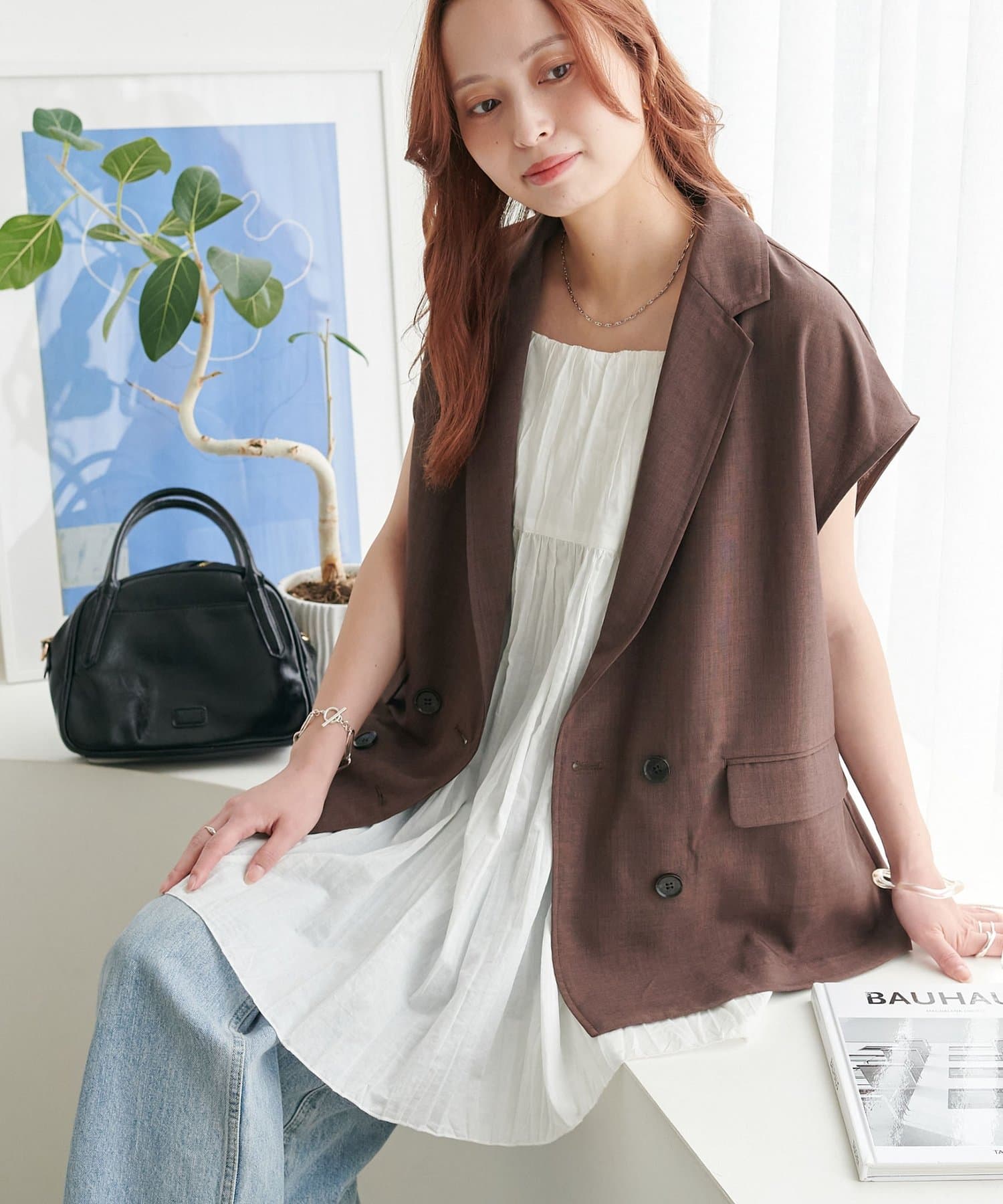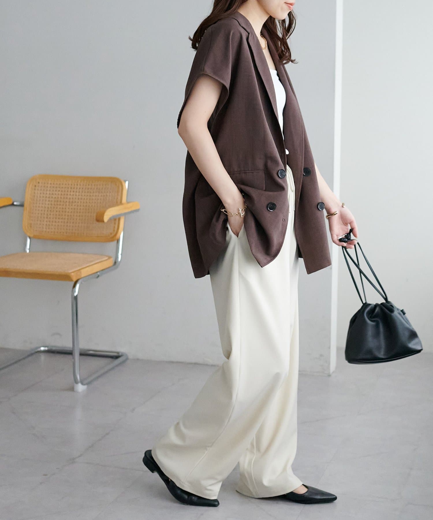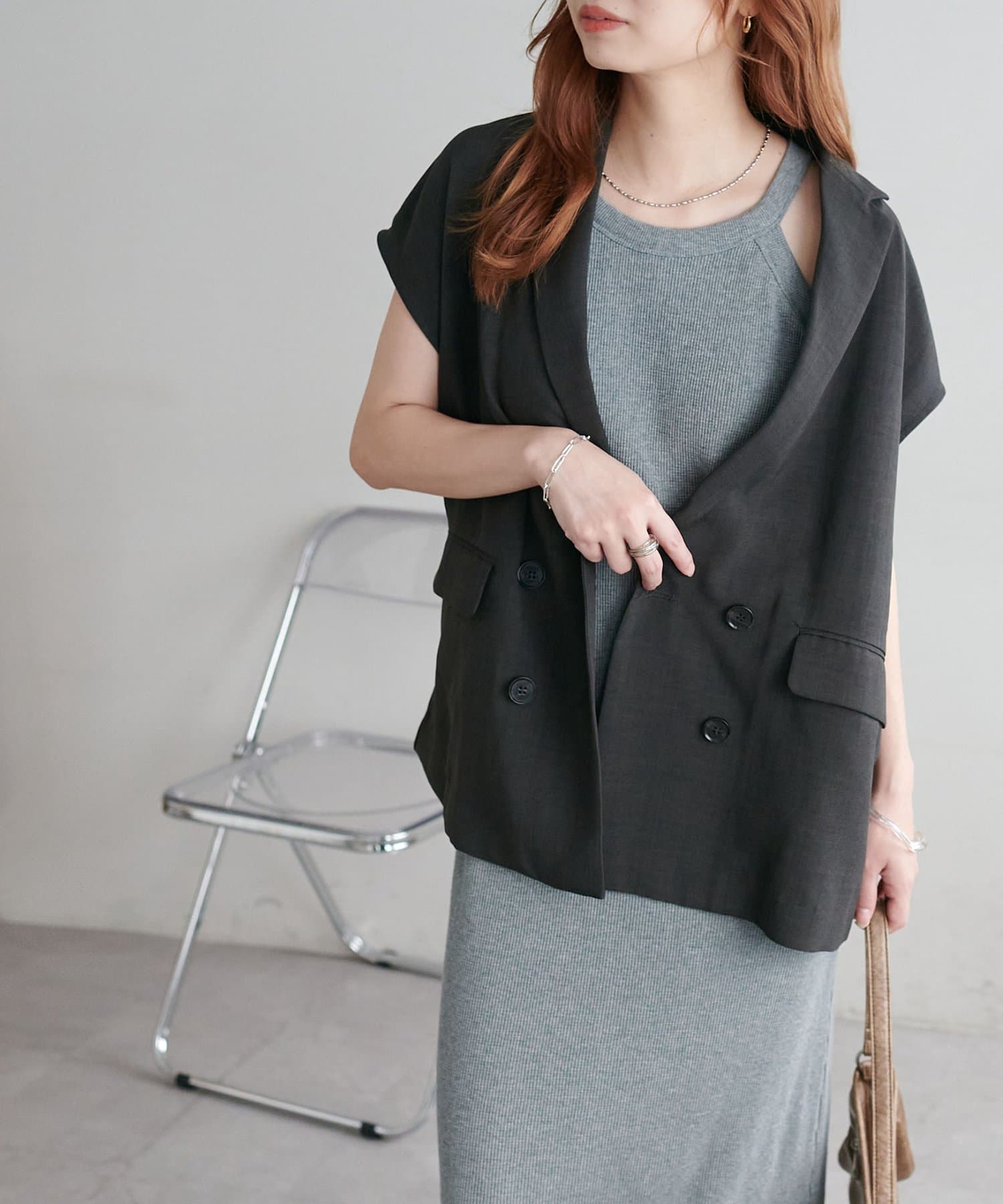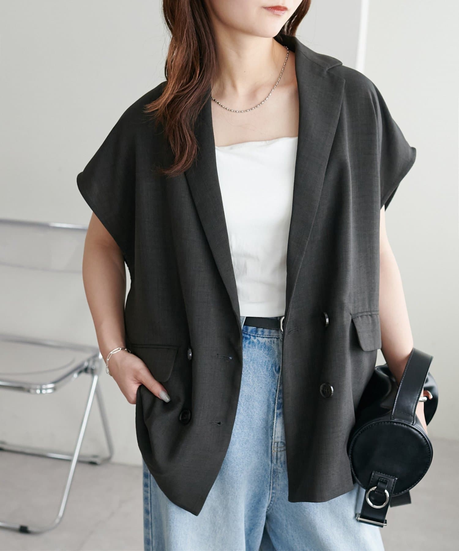 フレンチスリーブなのでキャミやタンク合わせがおすすめ。露出を控えたい方は、シアーの長袖などを合わせると◎パンツ、スカートどちらも相性抜群。ワンピースの上から羽織るとよりこなれ感のあるコーデになります。