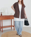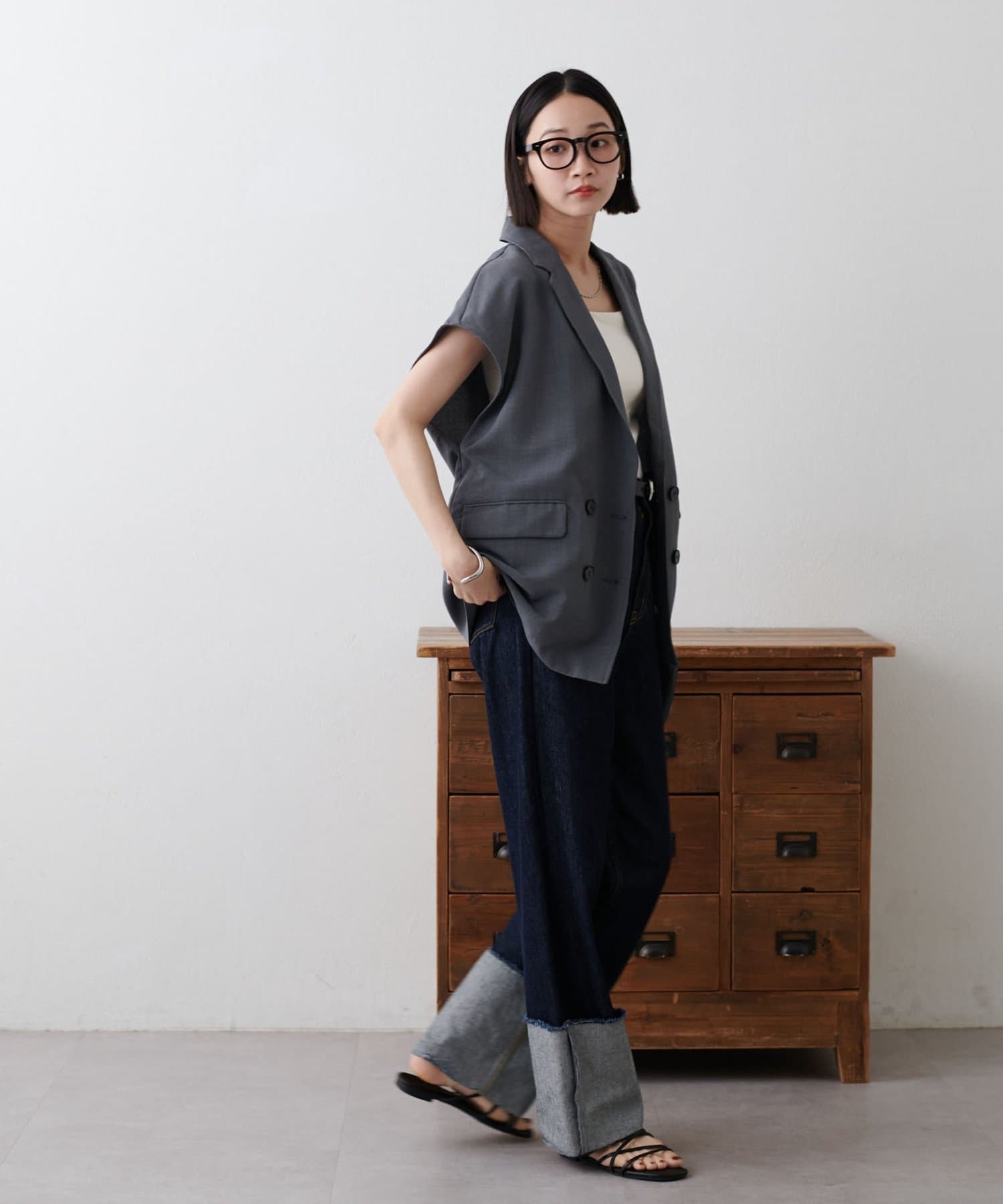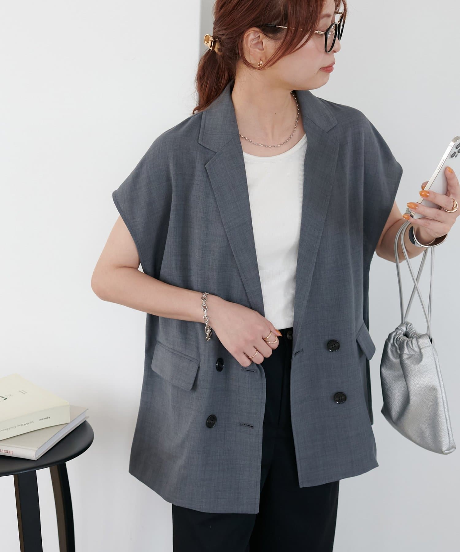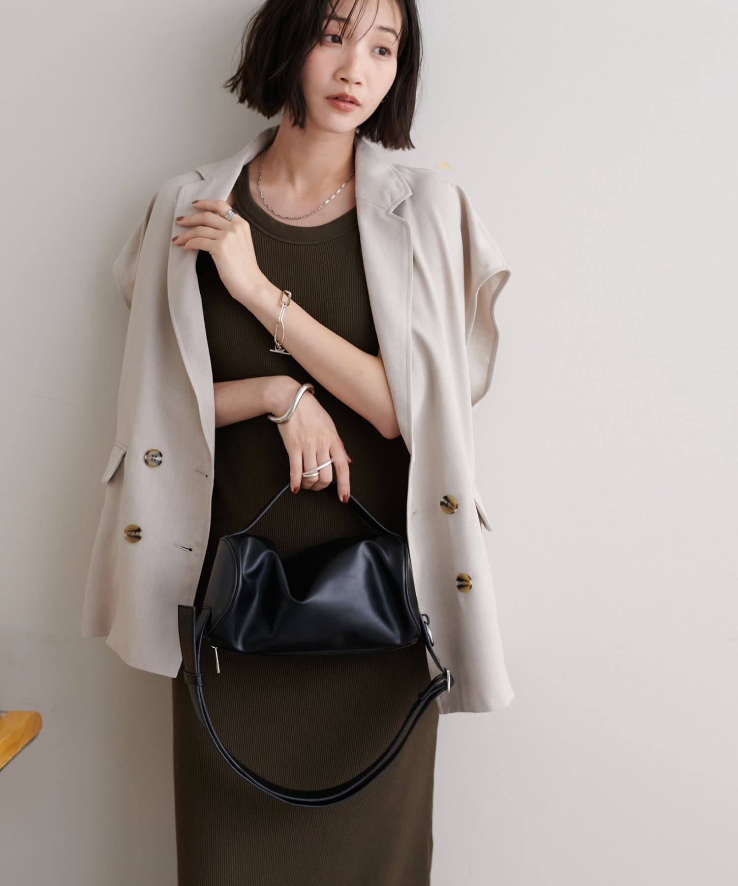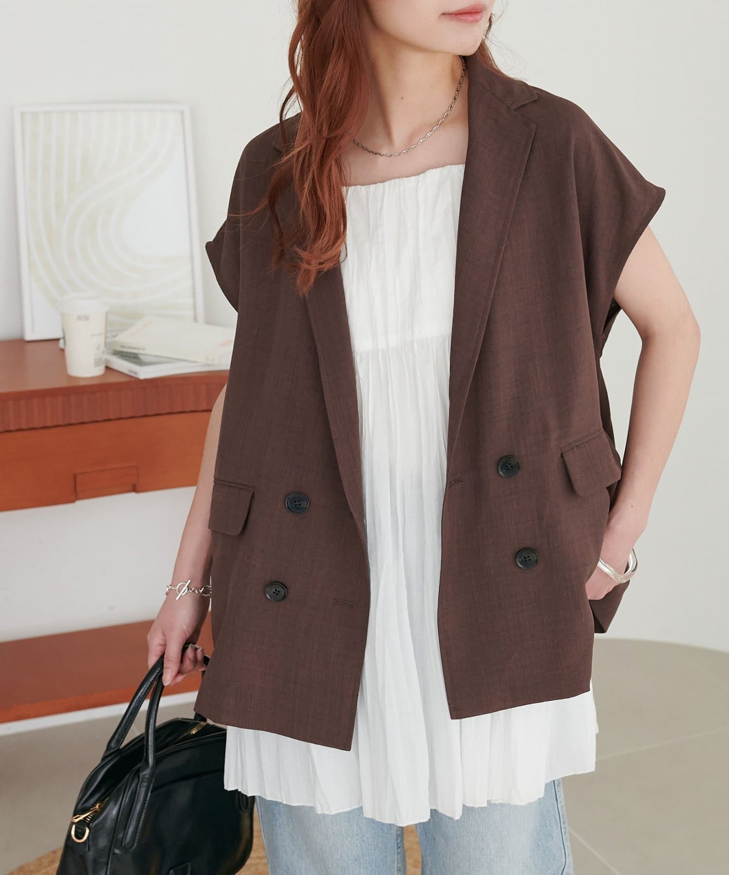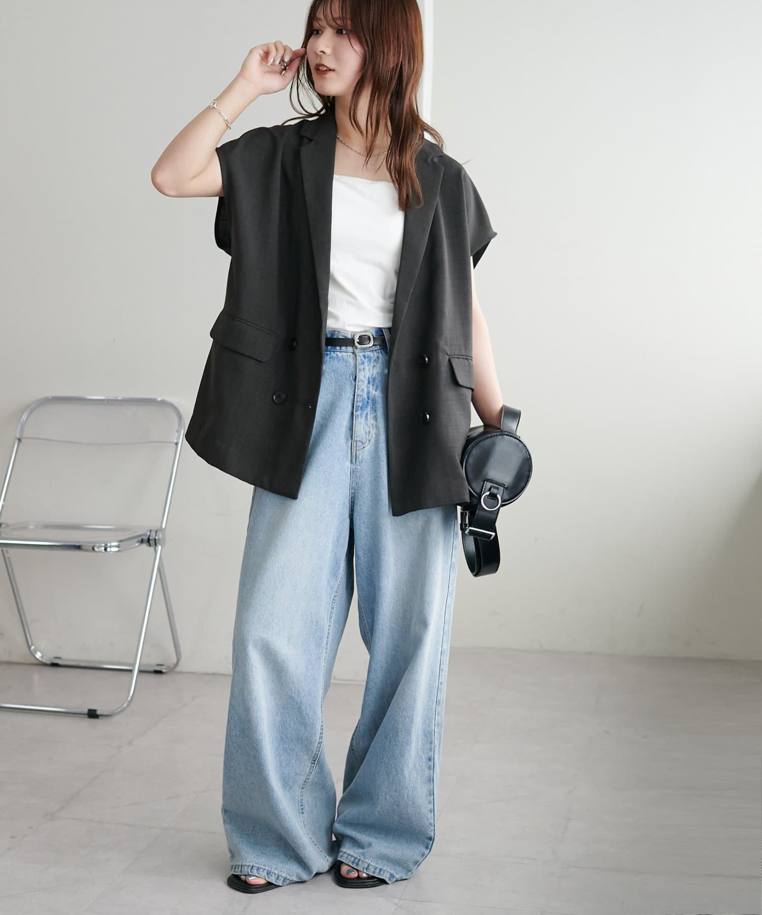 フレンチスリーブなのでキャミやタンク合わせがおすすめ。露出を控えたい方は、シアーの長袖などを合わせると◎パンツ、スカートどちらも相性抜群。ワンピースの上から羽織るとよりこなれ感のあるコーデになります。