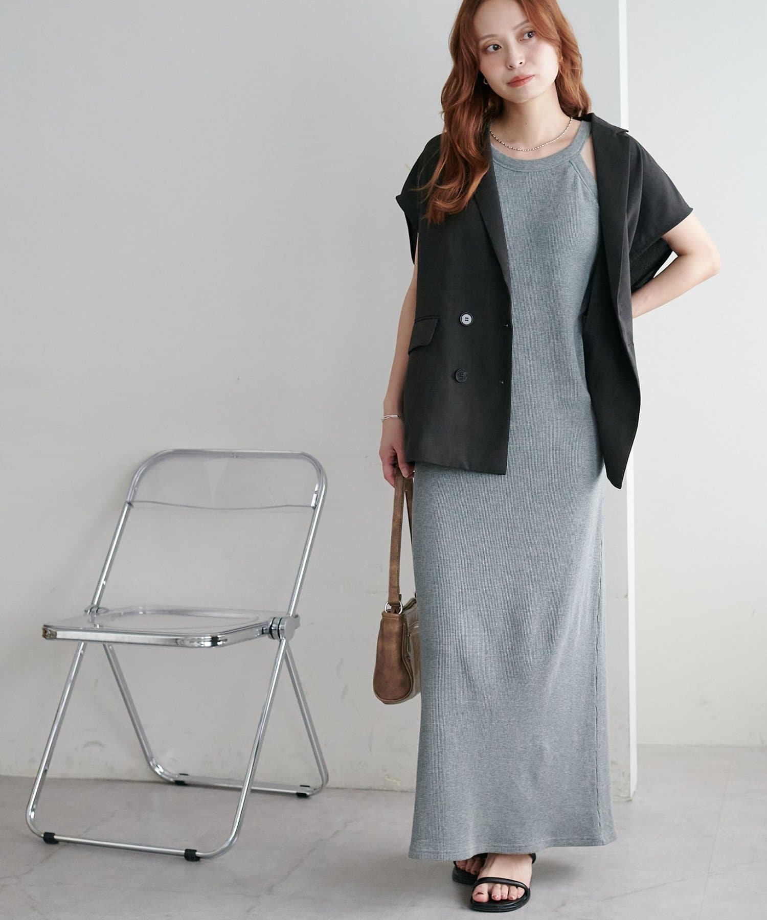 【3サイズ/6色展開/快適な着心地◎】カップ付ワッフルアメスリワンピース