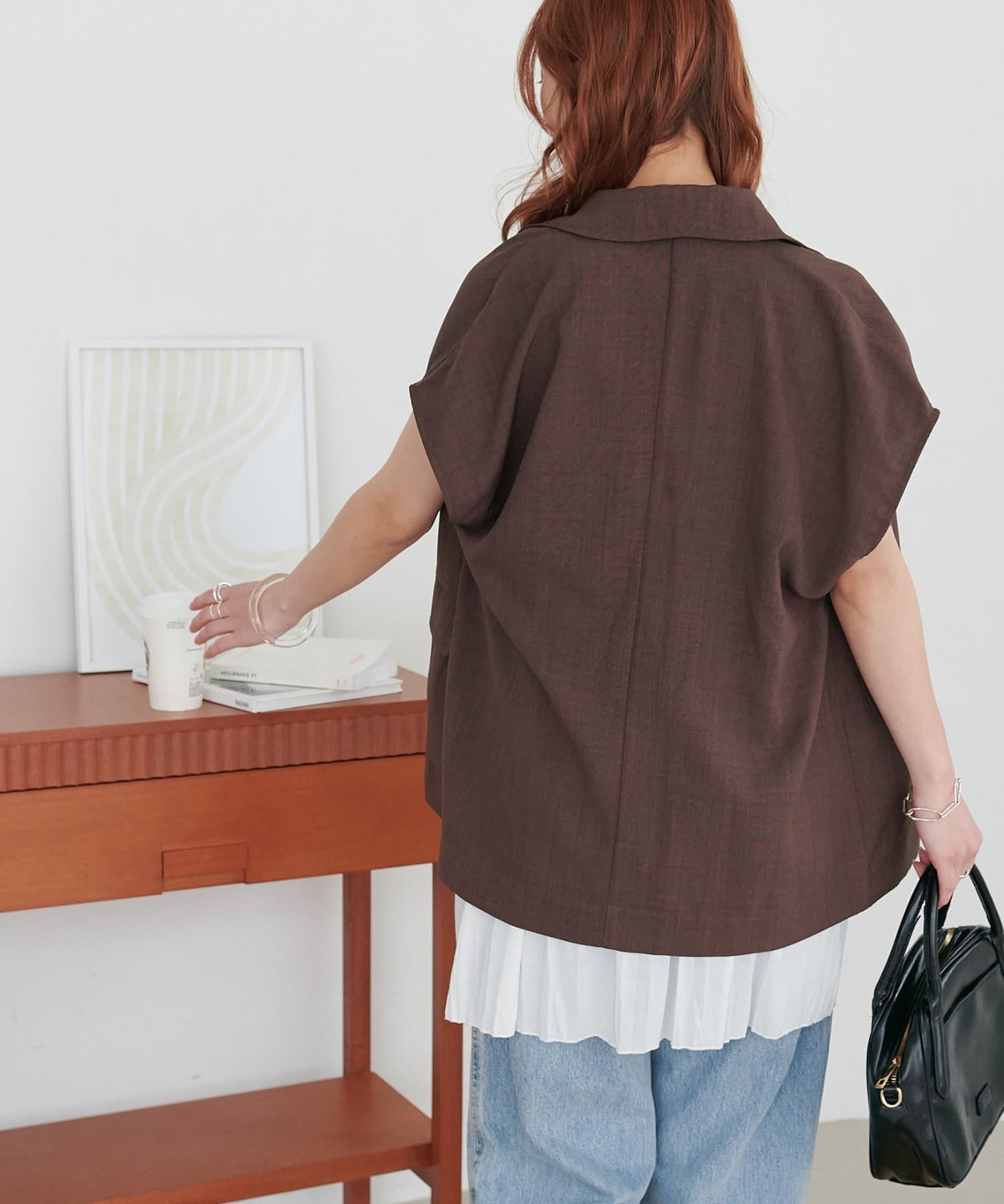 【夏も快適◎/二の腕すっきり】テックリネンフレンチシャツジャケット《WEB限定》