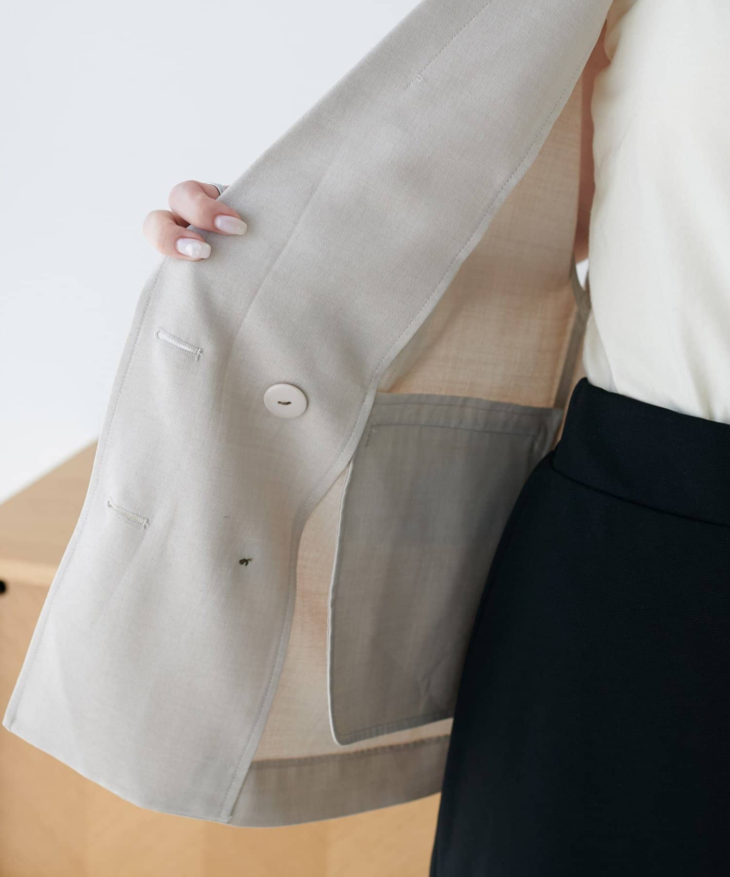 人気のテックリネンシリーズからフレンチジャケットが登場。涼しげなテックリネン素材で、さらりとした肌触りが着心地の良いアイテムです。二の腕がすっきり見える袖の長さに仕上げ、細見え効果抜群◎さらに、長めの着丈でヒップまで隠れるので体型カバーもできます。合わせるアイテム次第で、きれいめからカジュアルまで幅広い着こなしを楽しめます♪