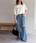 160cmスタッフ:カジュアルになりがちなTシャツですが、ワンショルにすることで女性らしい着こなしが叶います!