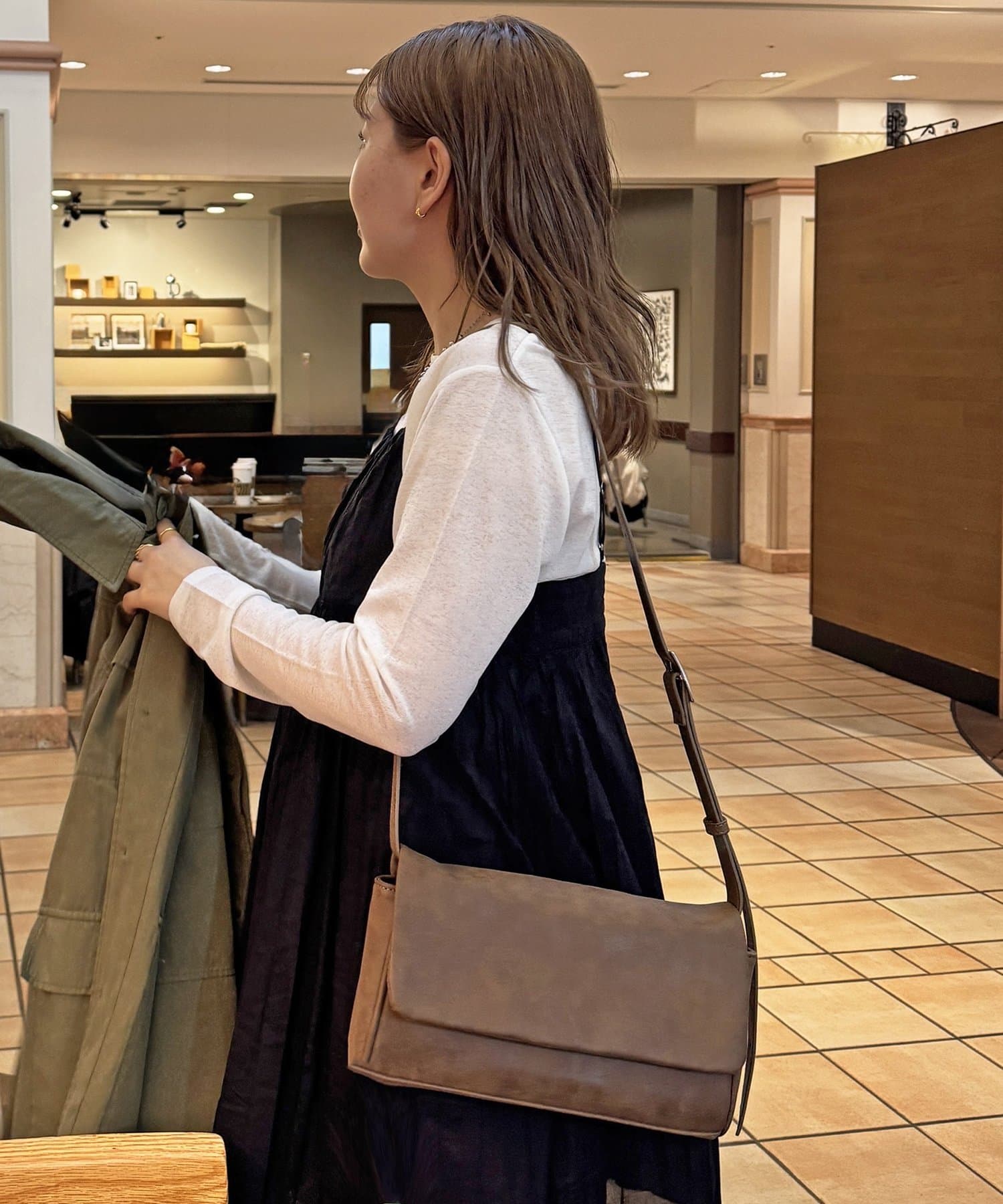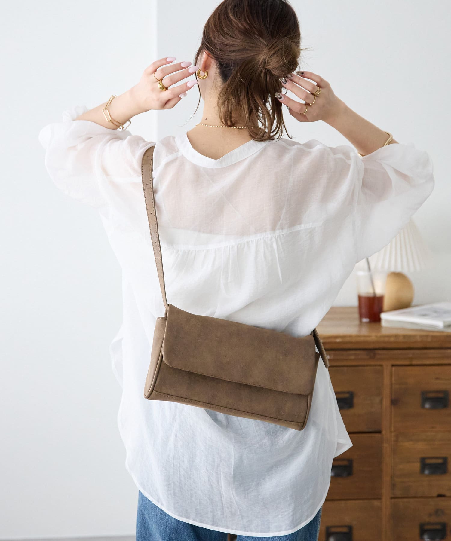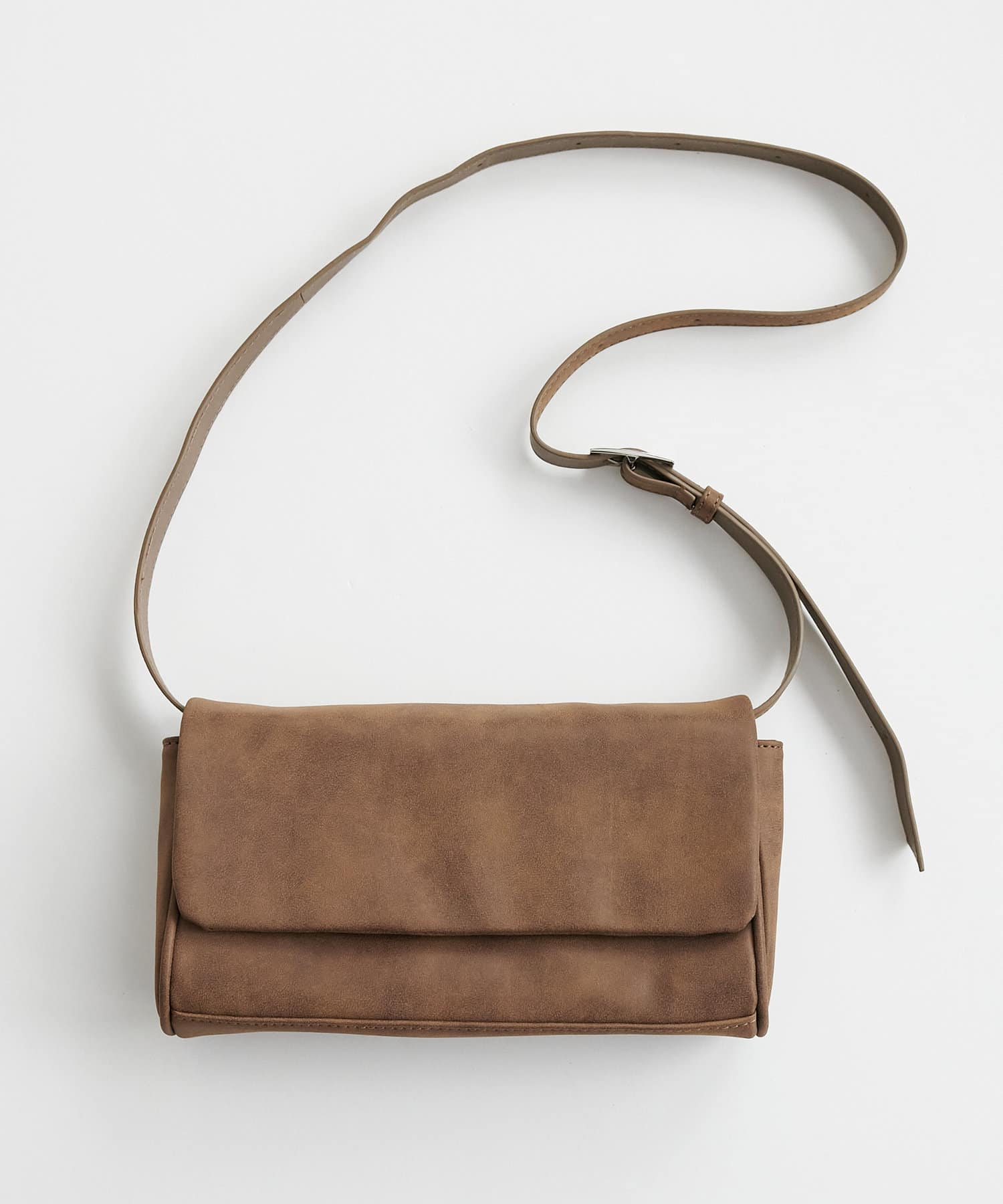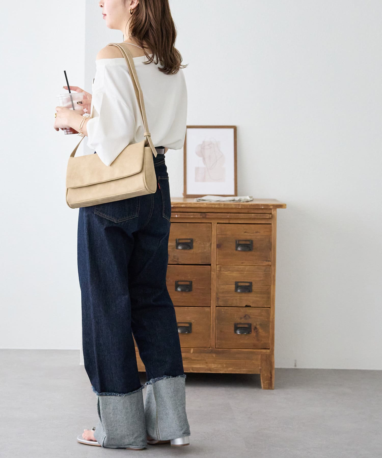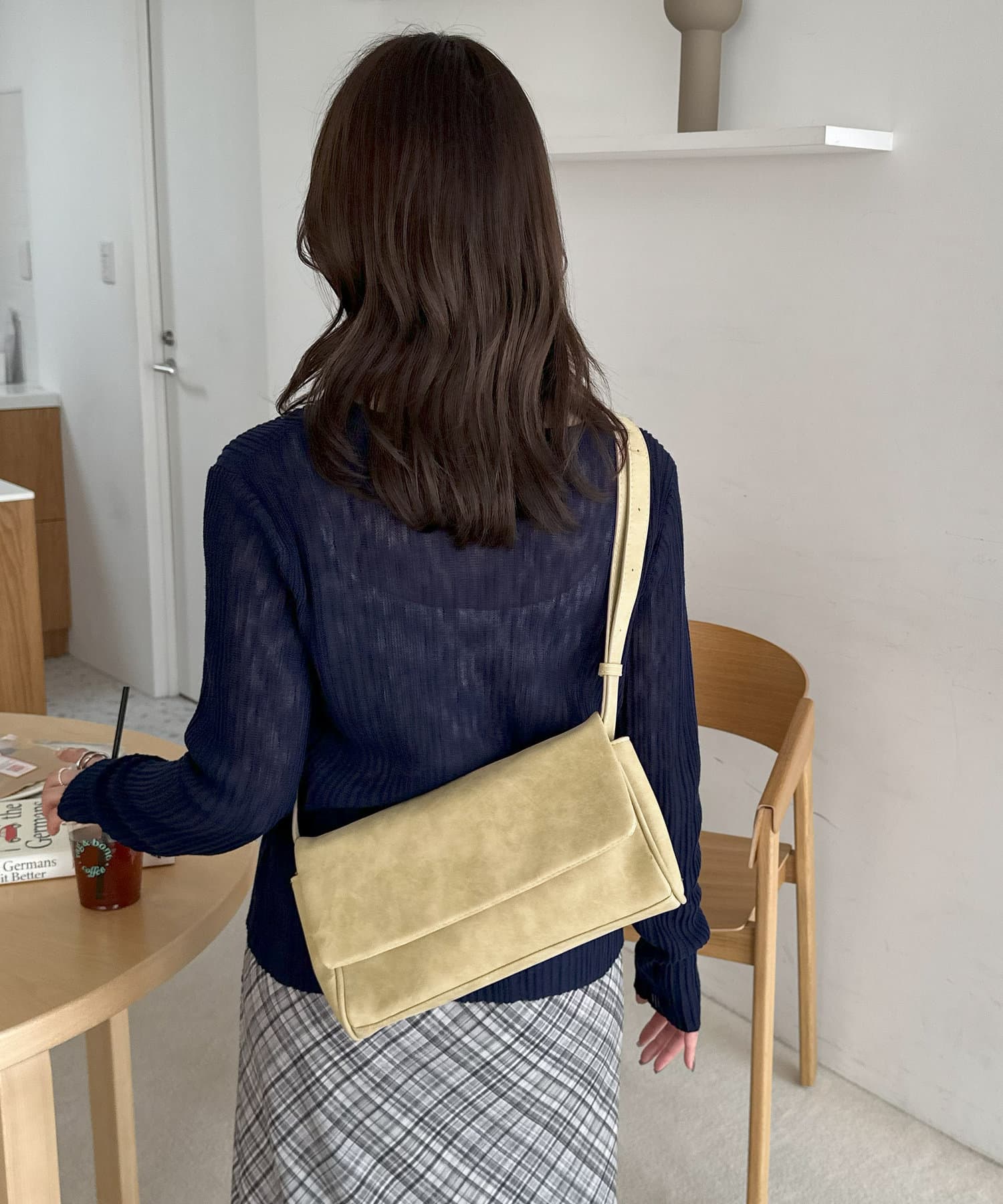 トレンドの横長フォルムとスウェード素材で、カジュアルからきれいめなコーデまで相性抜群のショルダーバッグ。フラップ部分にはマグネットボタンが付いているので開閉が楽ちん◎長さの調節と取り外しが可能なショルダー紐なのでその日の気分や服装に合わせて持ち方を変えられます。また、ショルダー紐のバックルがコーデのアクセントに♪