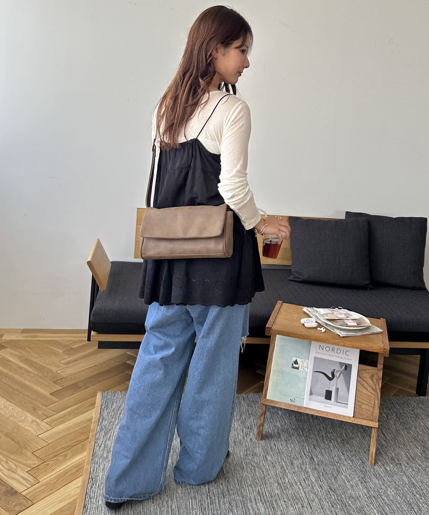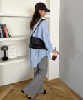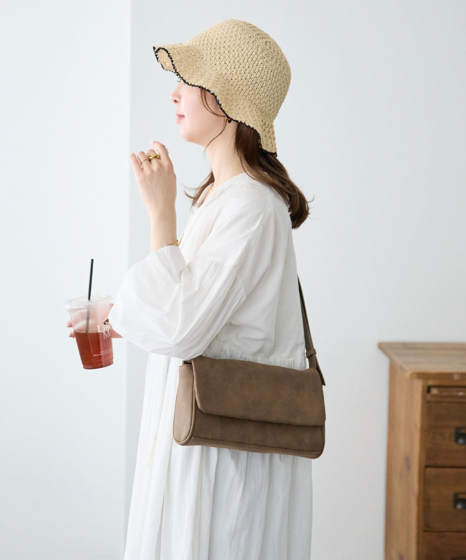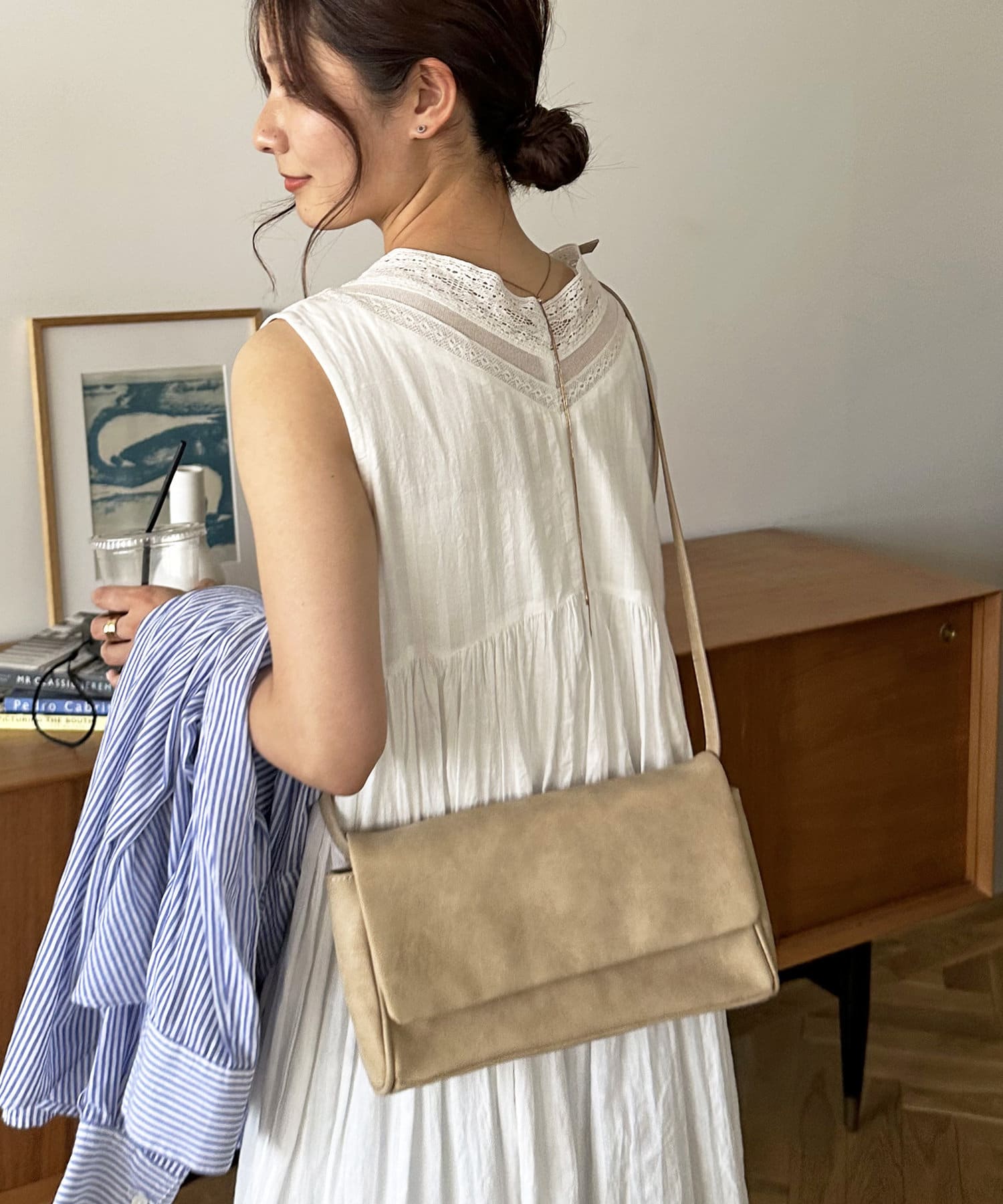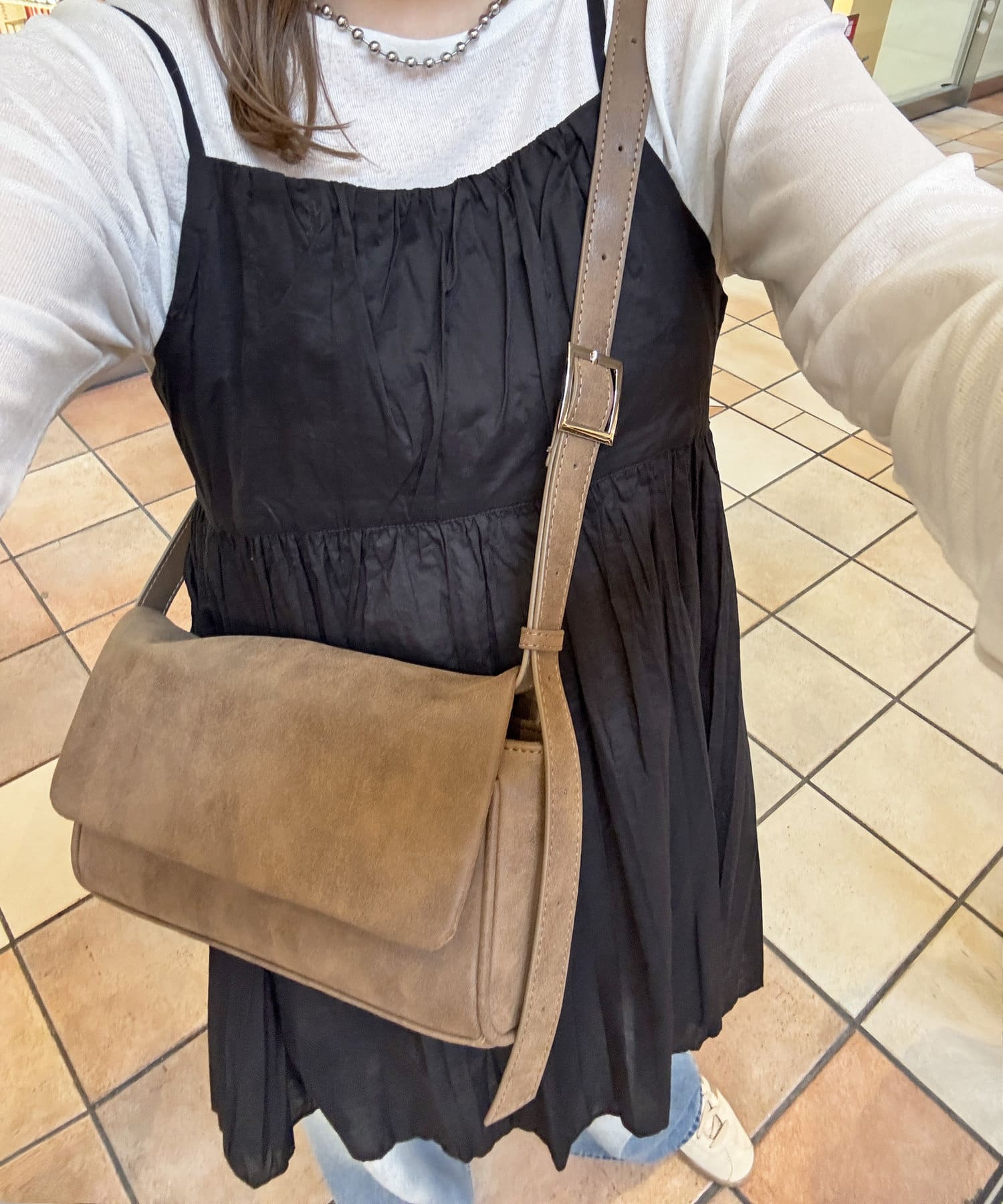 トレンドの横長フォルムとスウェード素材で、カジュアルからきれいめなコーデまで相性抜群のショルダーバッグ。フラップ部分にはマグネットボタンが付いているので開閉が楽ちん◎長さの調節と取り外しが可能なショルダー紐なのでその日の気分や服装に合わせて持ち方を変えられます。また、ショルダー紐のバックルがコーデのアクセントに♪