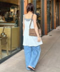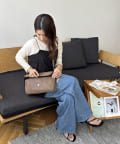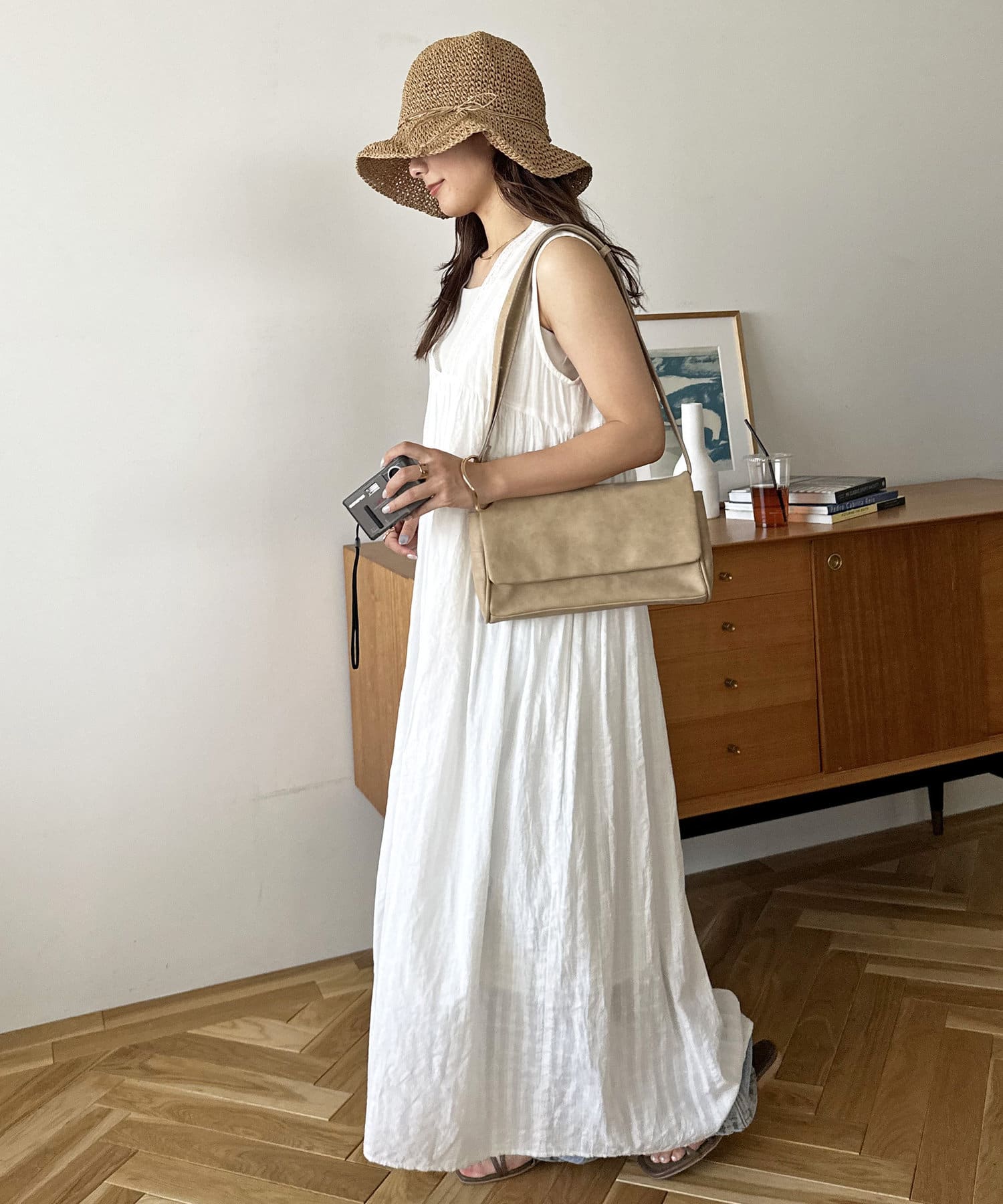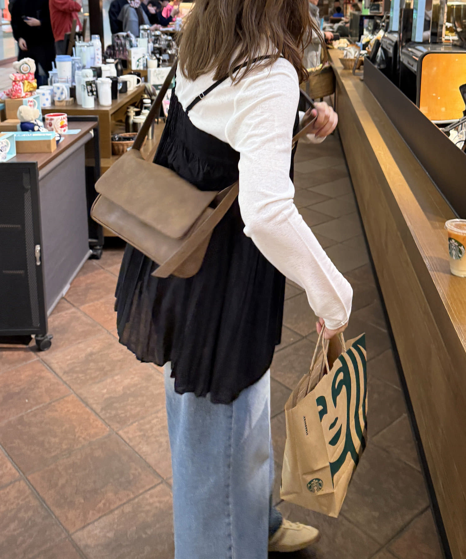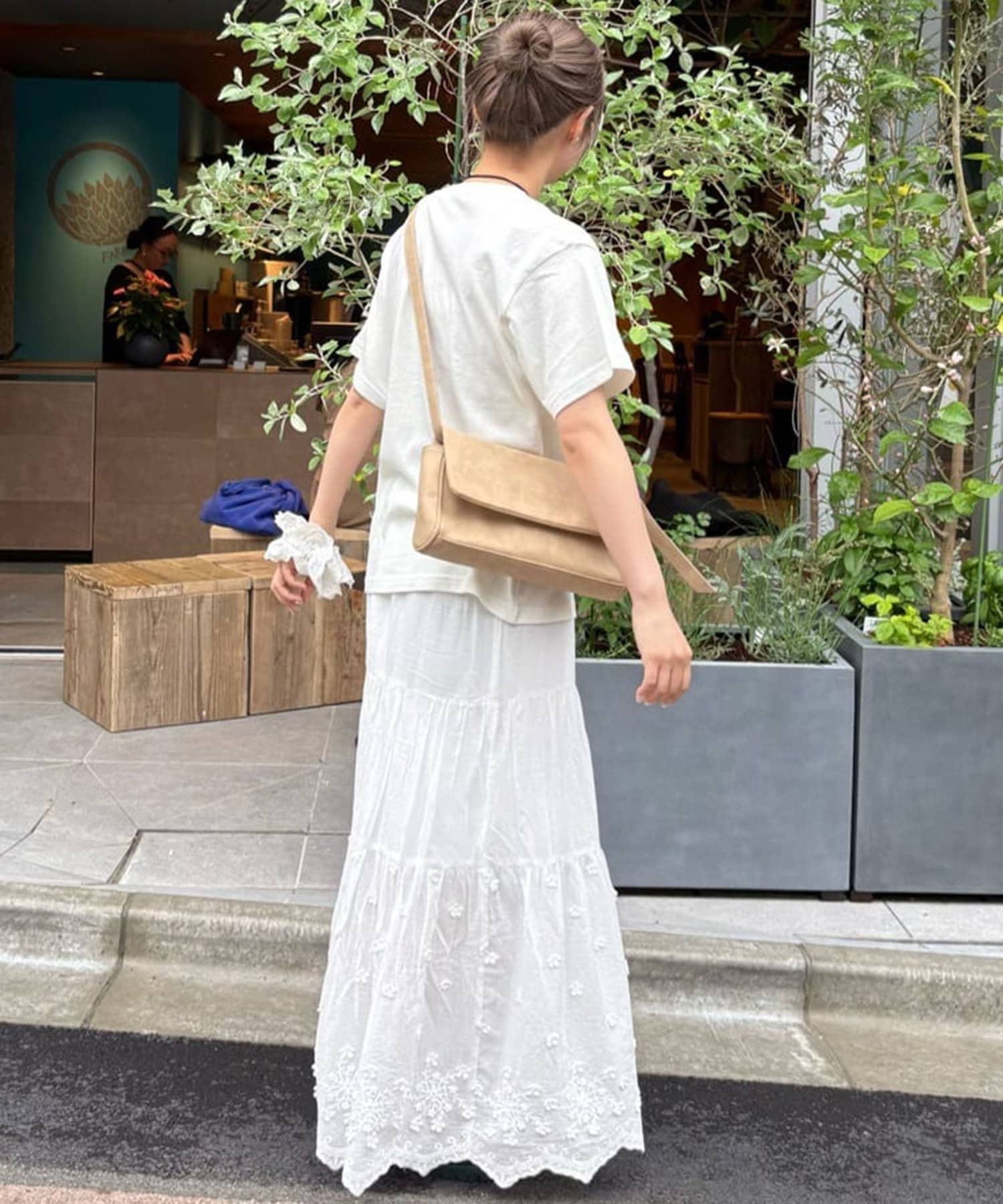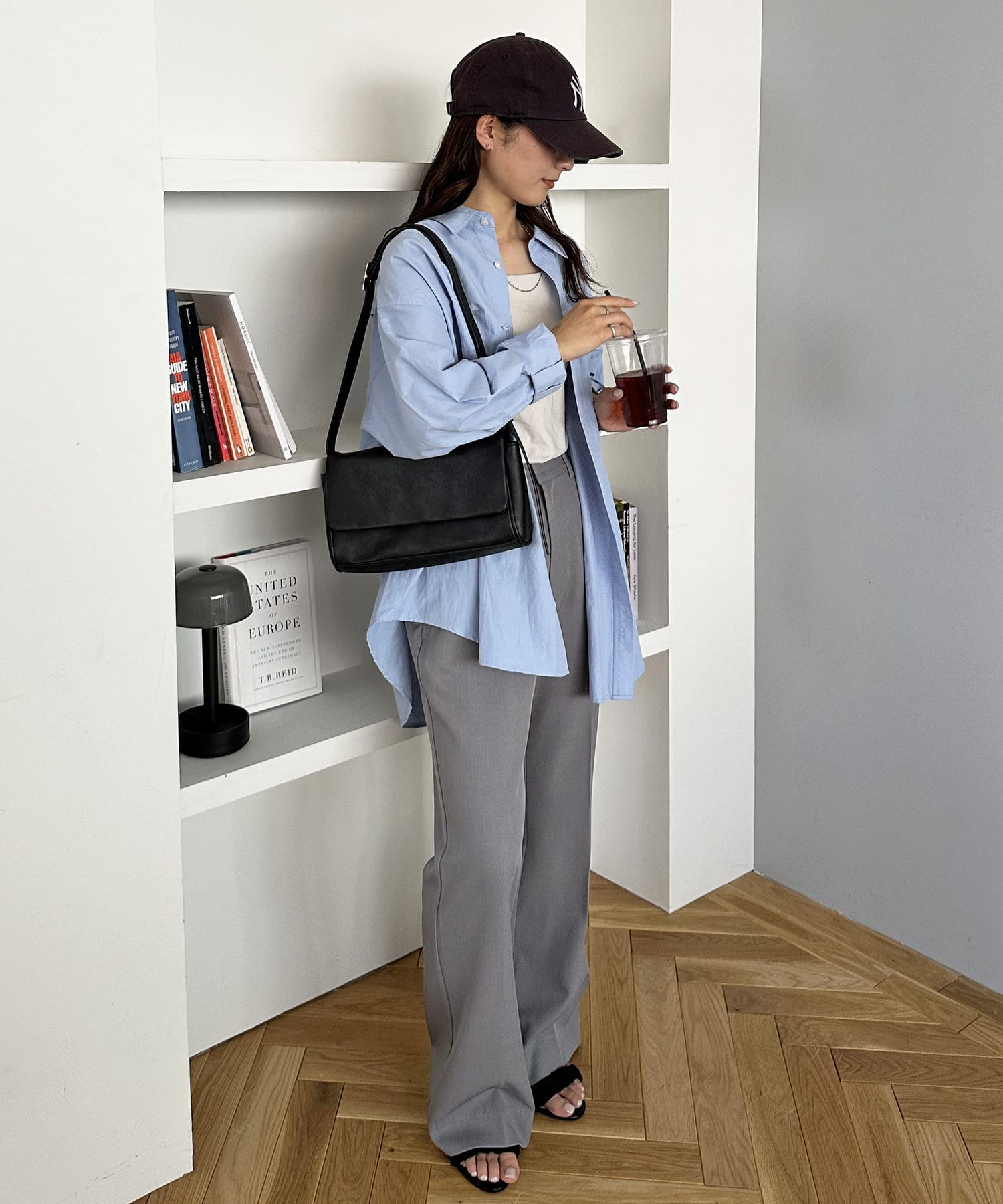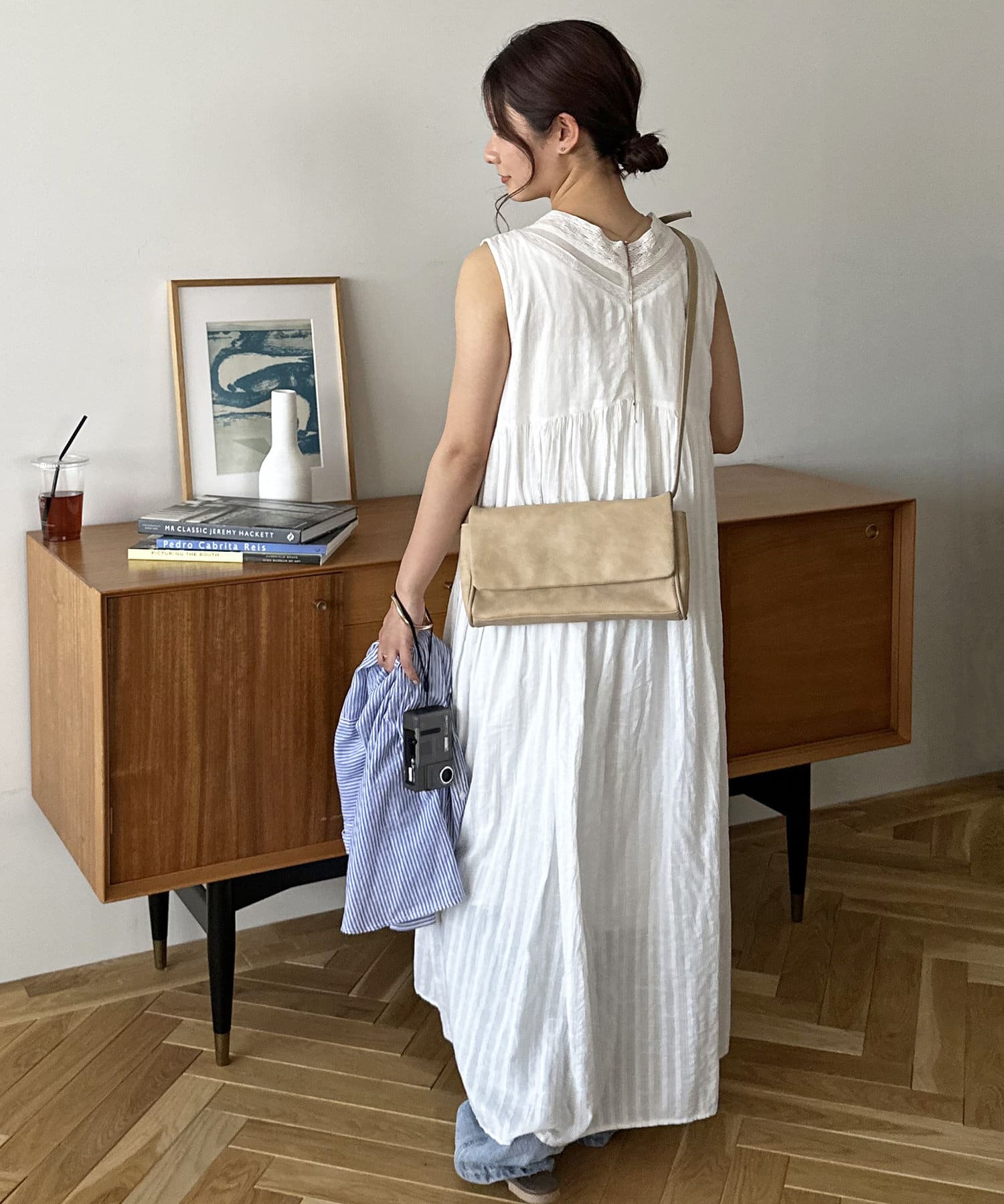トレンドの横長フォルムとスウェード素材で、カジュアルからきれいめなコーデまで相性抜群のショルダーバッグ。フラップ部分にはマグネットボタンが付いているので開閉が楽ちん◎長さの調節と取り外しが可能なショルダー紐なのでその日の気分や服装に合わせて持ち方を変えられます。また、ショルダー紐のバックルがコーデのアクセントに♪