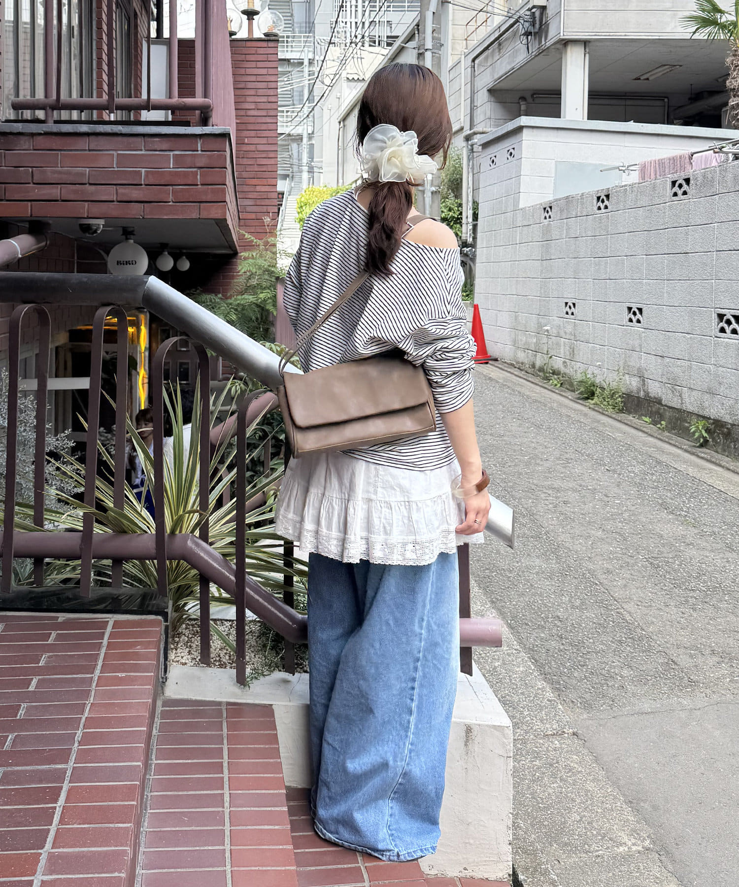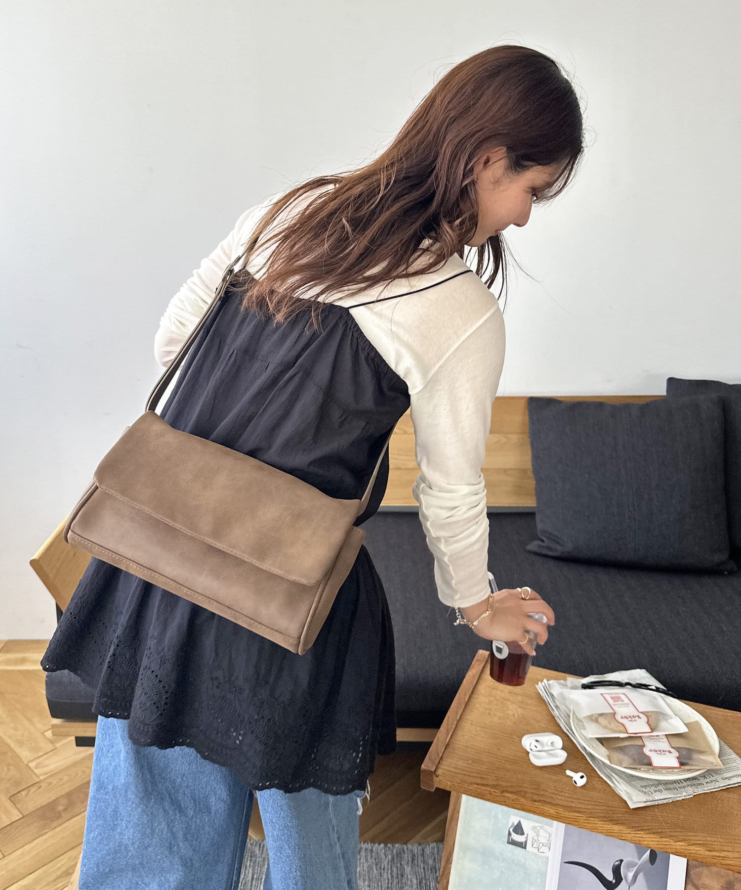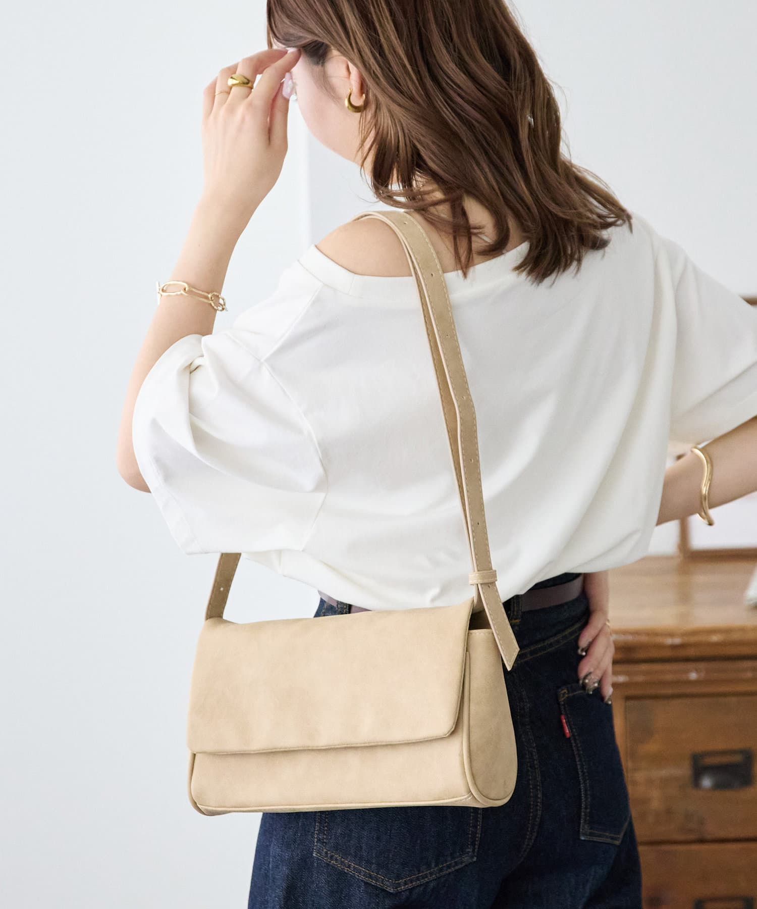 サッと持つだけでオシャレに決まる!フラップベルトショルダーバッグ。