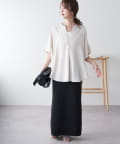 157cmスタッフ:落ち感のある柔らかな素材で、体のラインも拾いにくいです。パンツにもスカートにも合わせやすく、幅広い着こなしを楽しめます♩