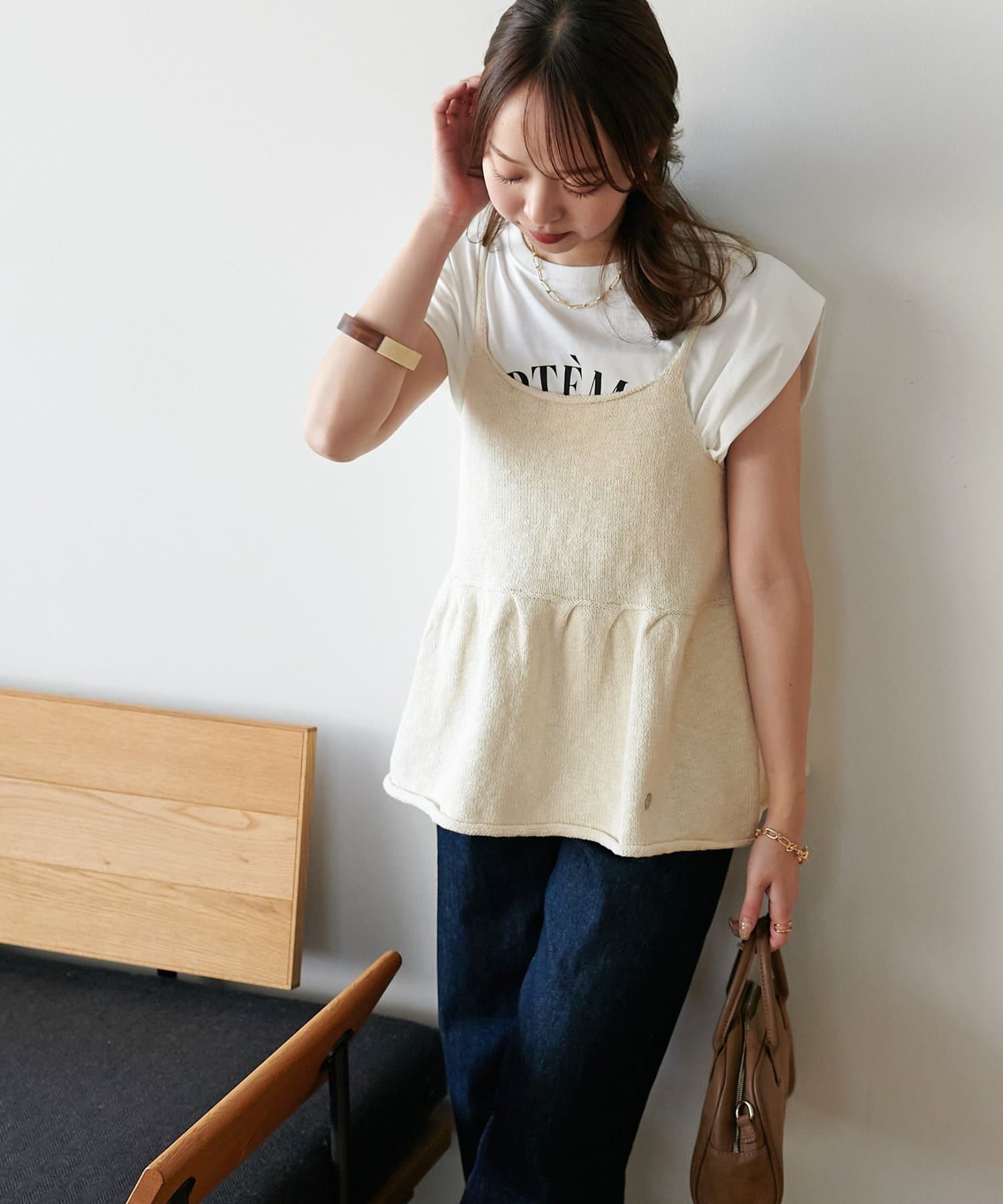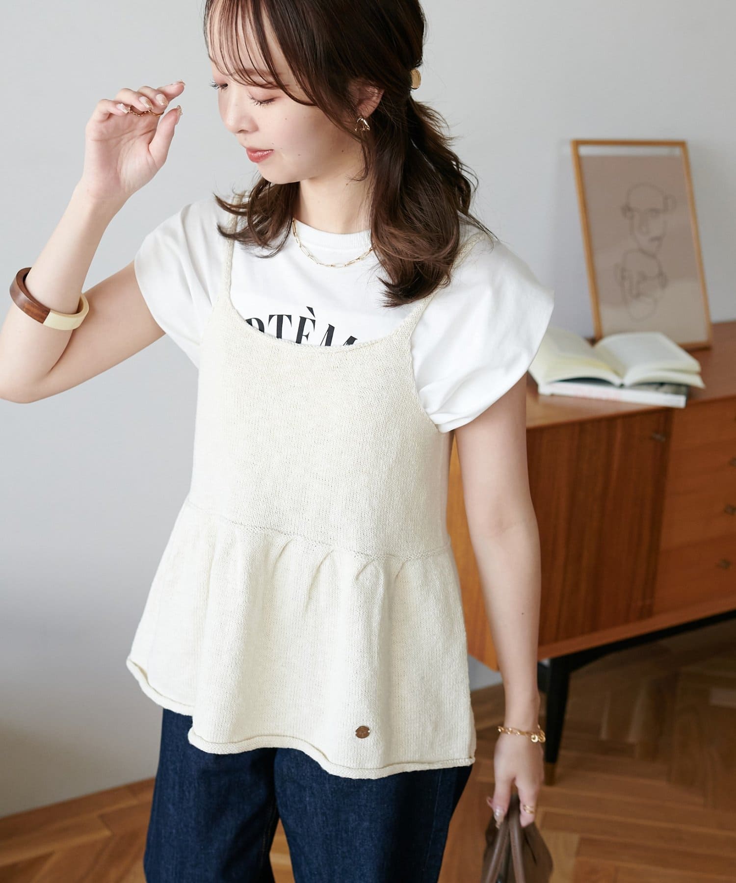 重ねるだけで華やか、スラブキャミビスチェ