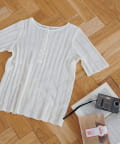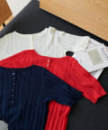 リブニットならではの体に程よく沿うフィット感があるため、アウトスタイルでももたつかず、すっきりとした印象に仕上がります!