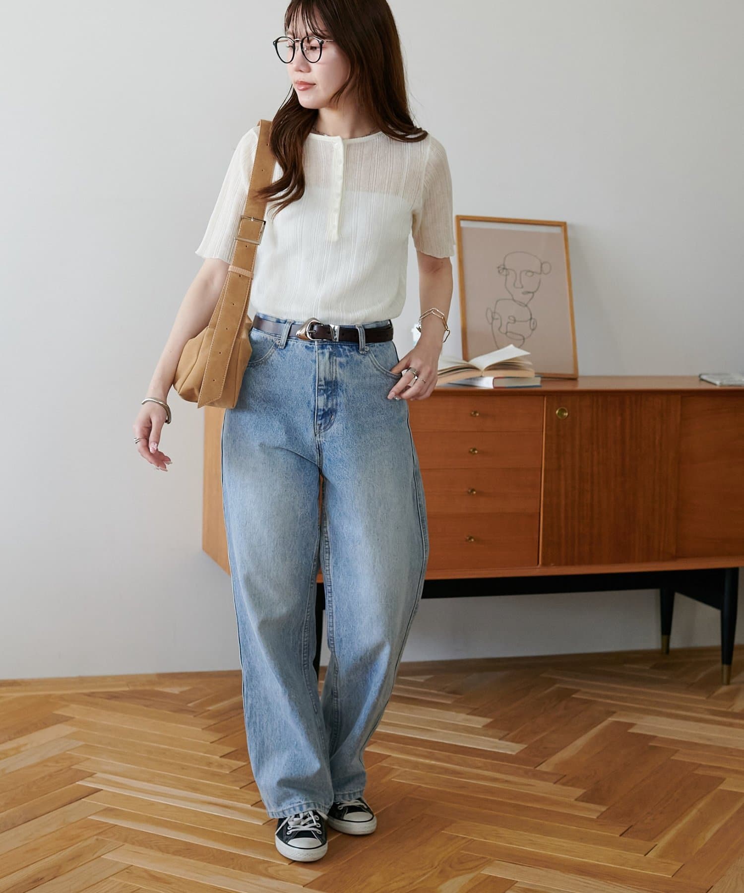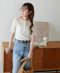 ヘンリーネックのデザインがアクセントになり、シンプルながらも表情のあるデザインに。きれいめにもカジュアルにも着まわせる万能トップスです♩