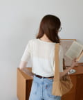 162cmスタッフ:ほんのり肌見せできるシアー素材と、コンパクトなシルエットでトレンド感のある着こなしが叶います!