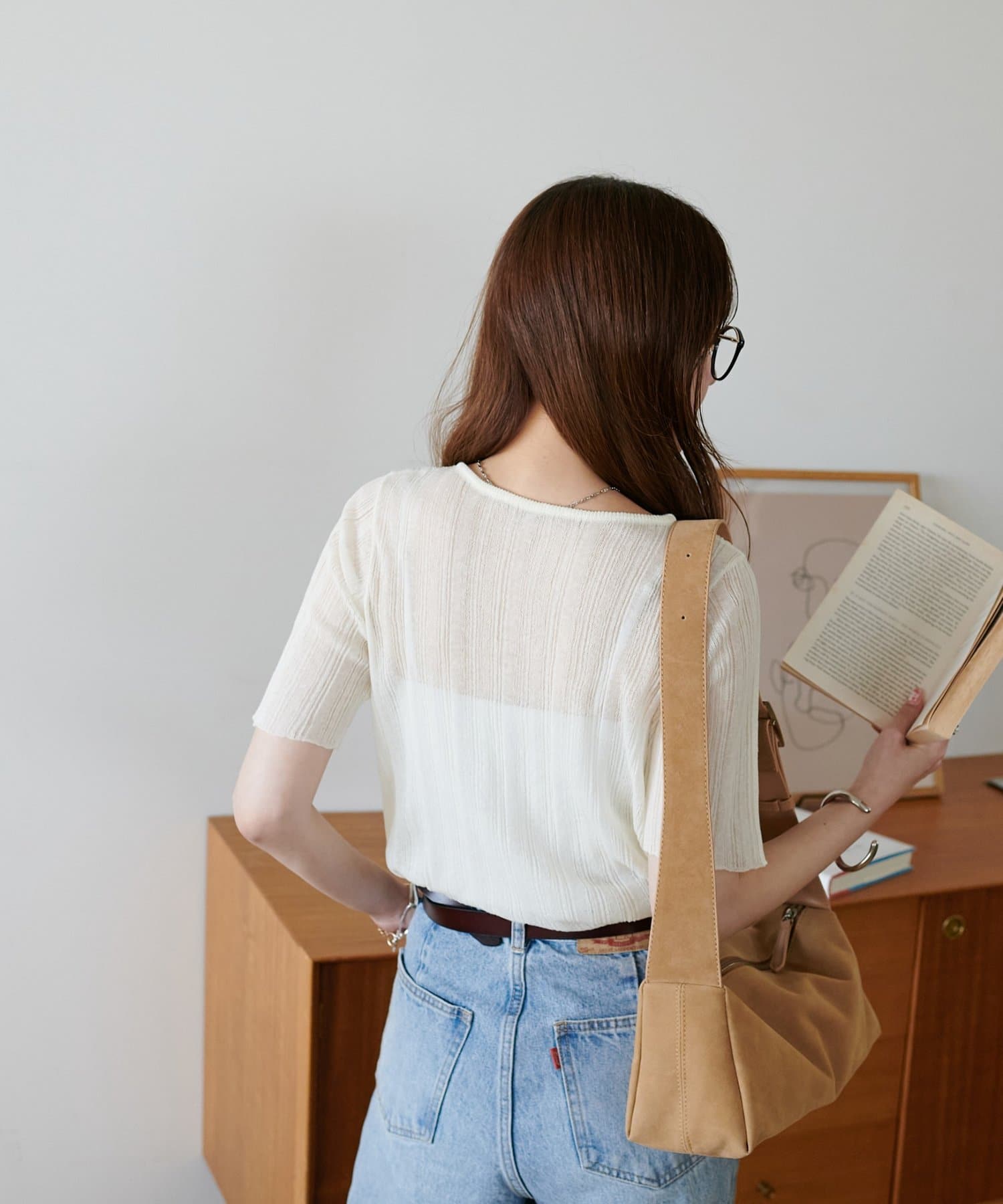 程よく肌が透ける軽やかな素材感が、夏の装いに抜け感と上品な涼しさをプラスします。