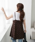 カジュアルなTシャツとレトロっぽいブラウンドットなんて好きすぎます。