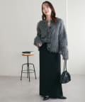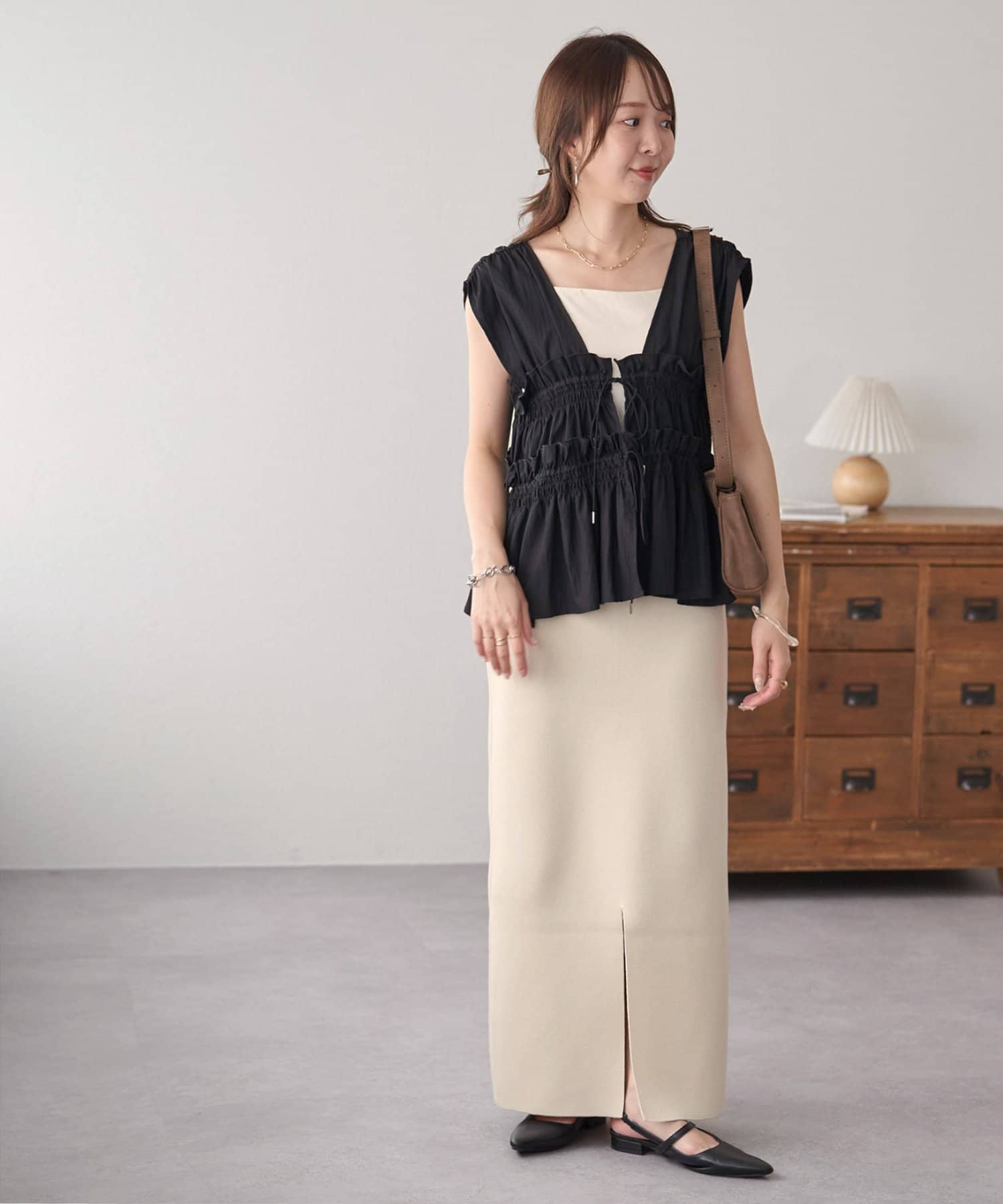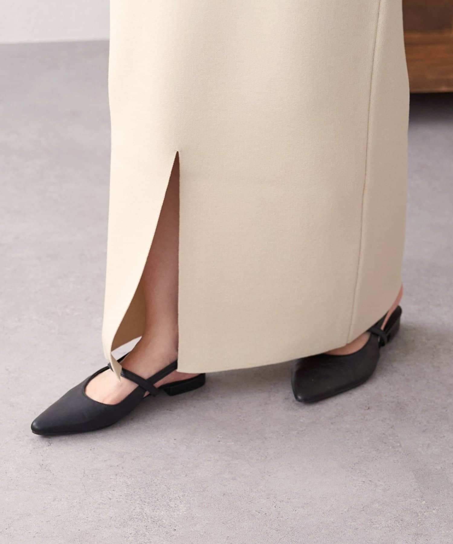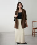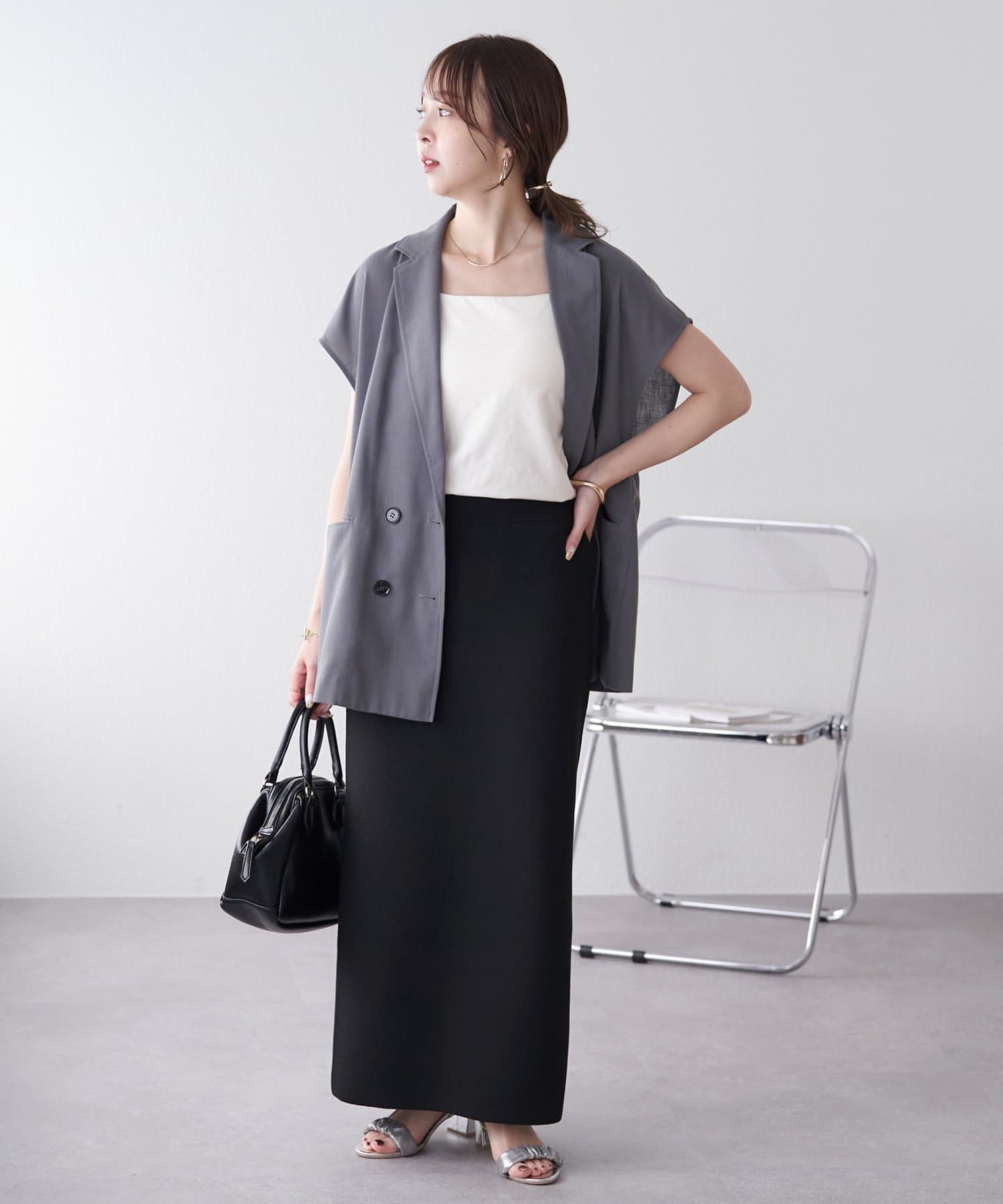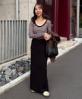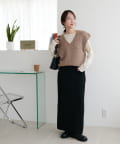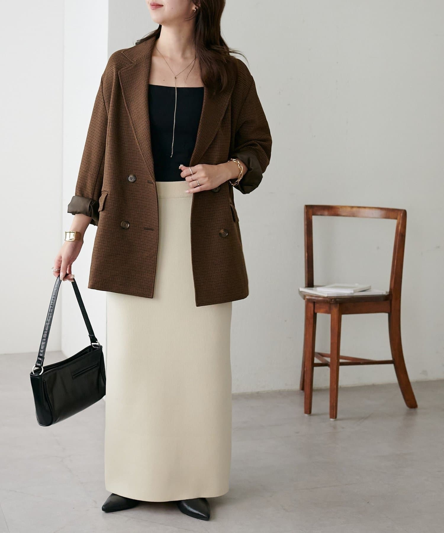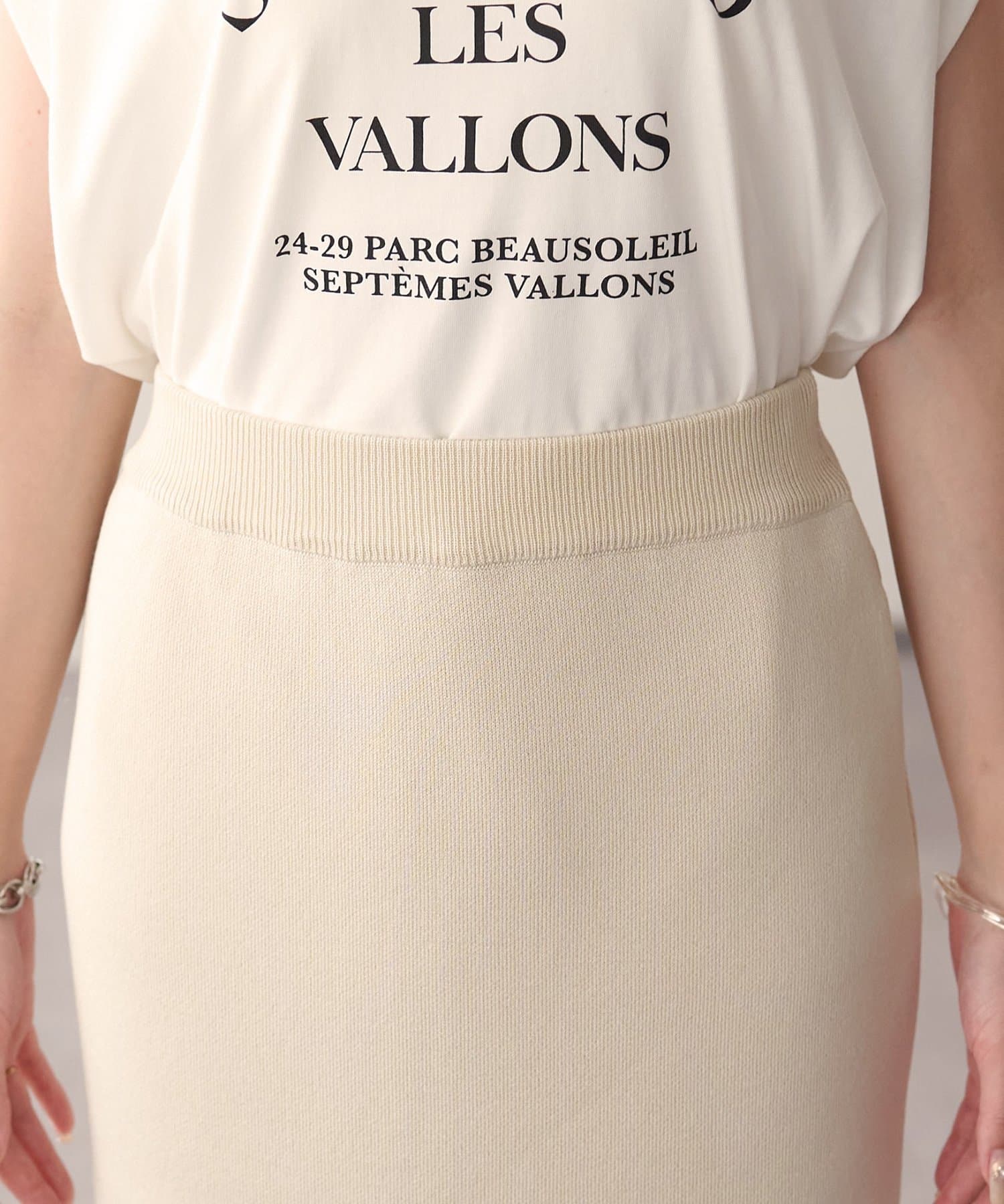 153cmスタッフ:形が綺麗なニットナロースカート。ロング丈ですが、裾にスリットが入っているので、低身長でも動きやすいデザインです!