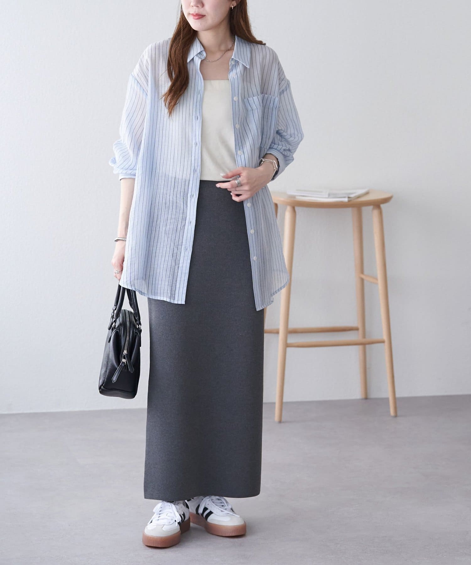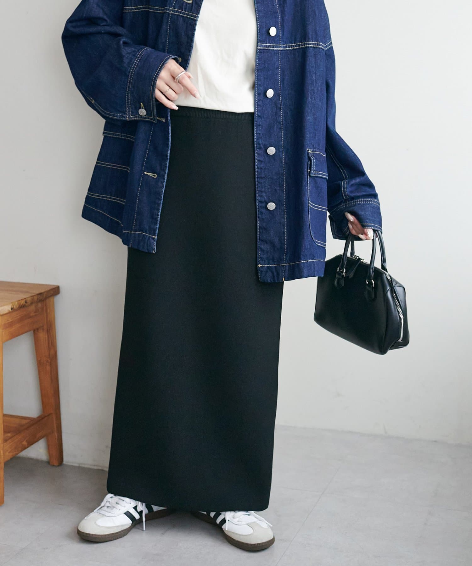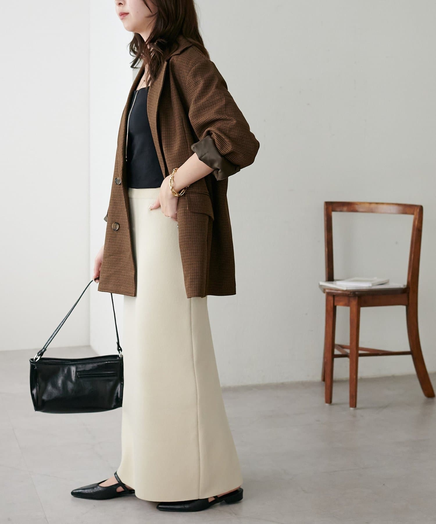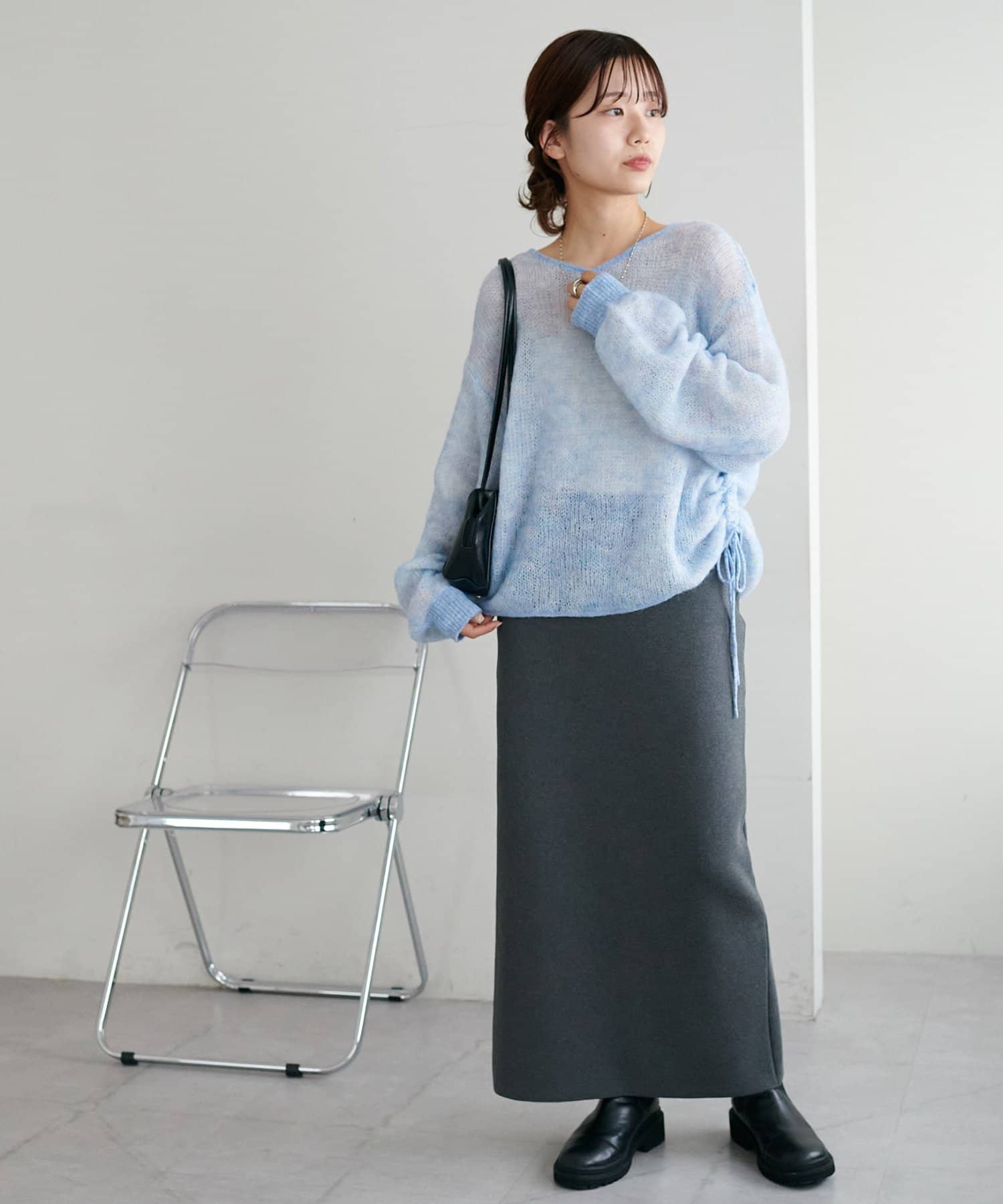 ナロースカートなので、ゆったりとしたスウェットやニットとの合わせがおすすめ〇