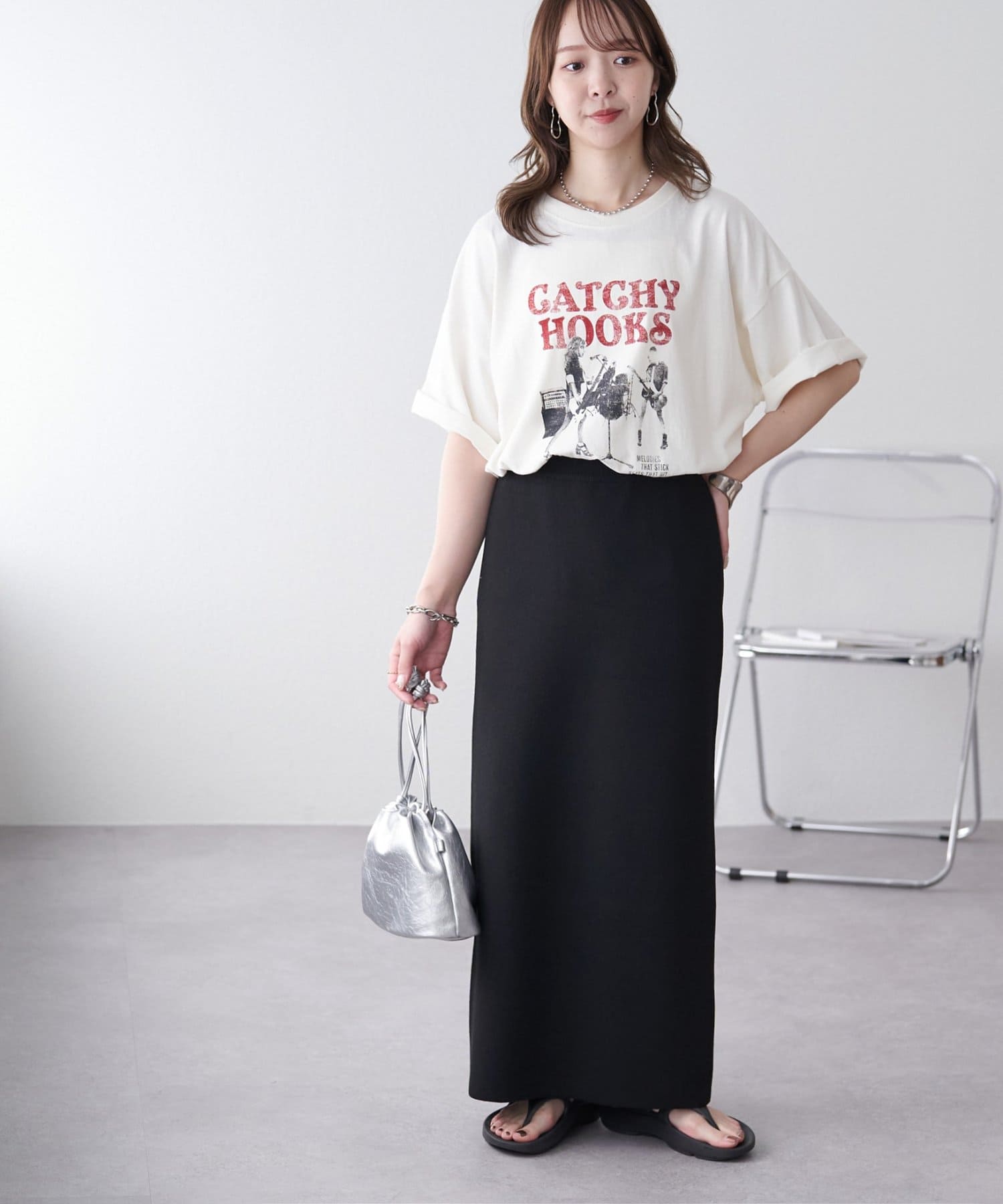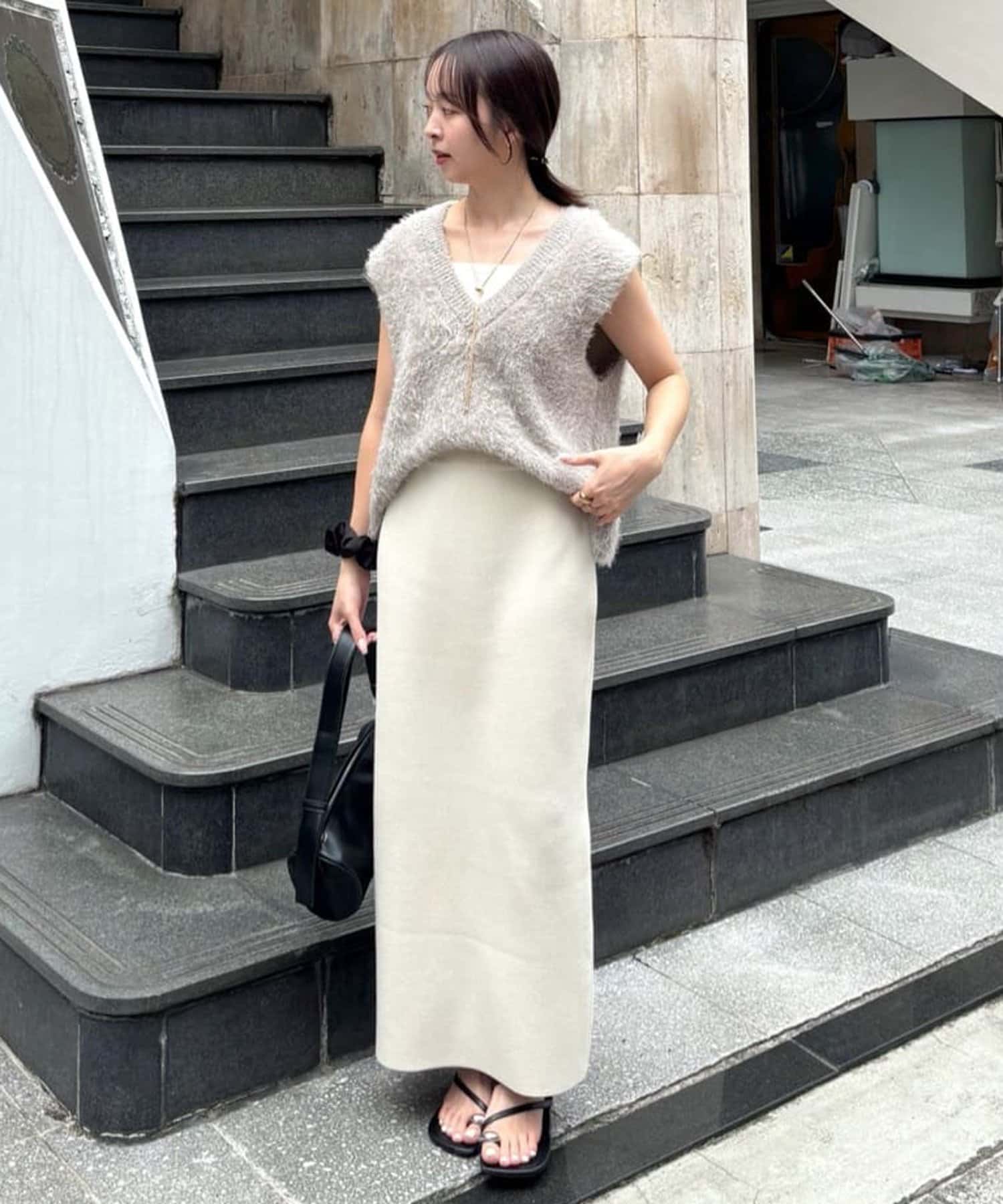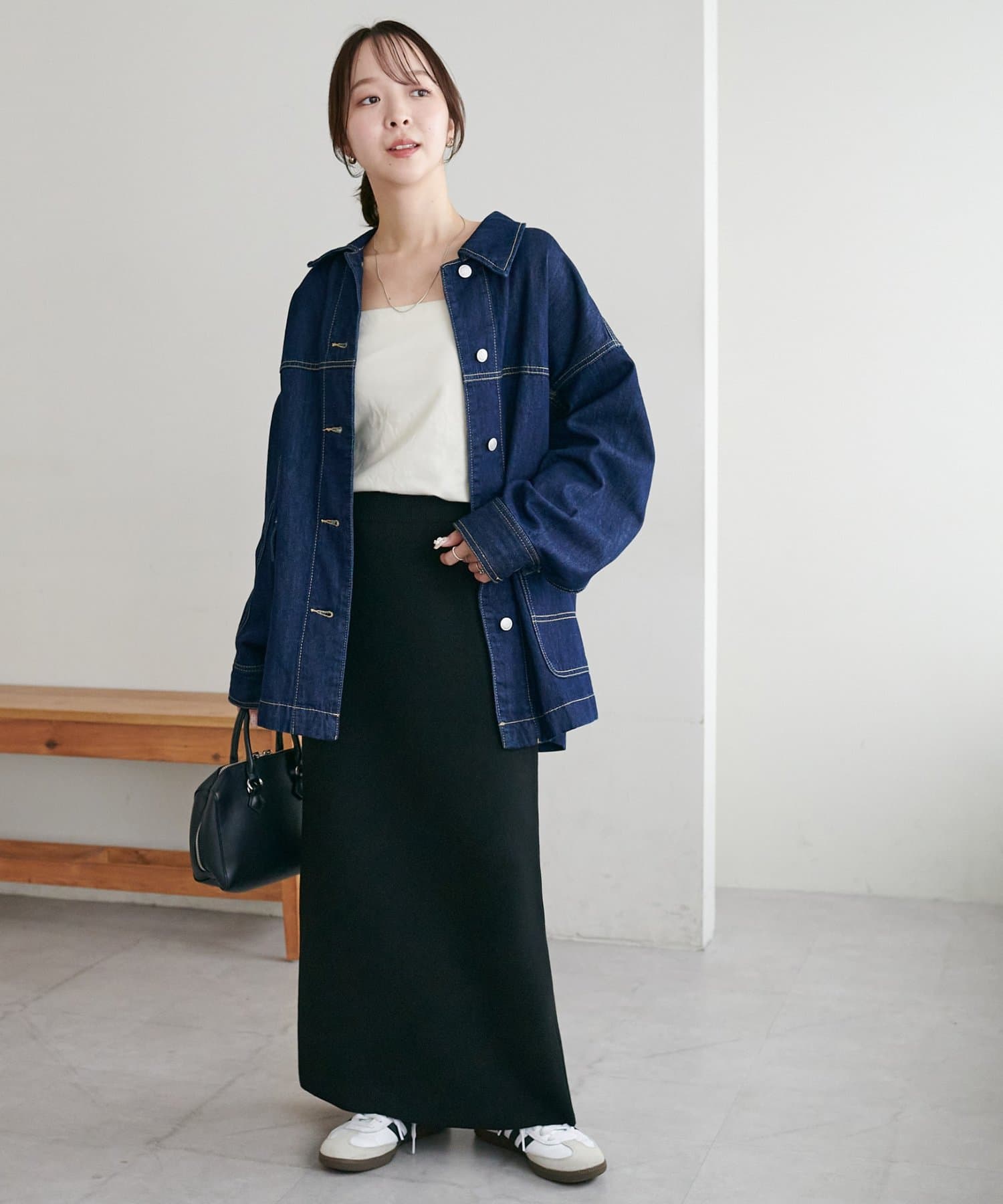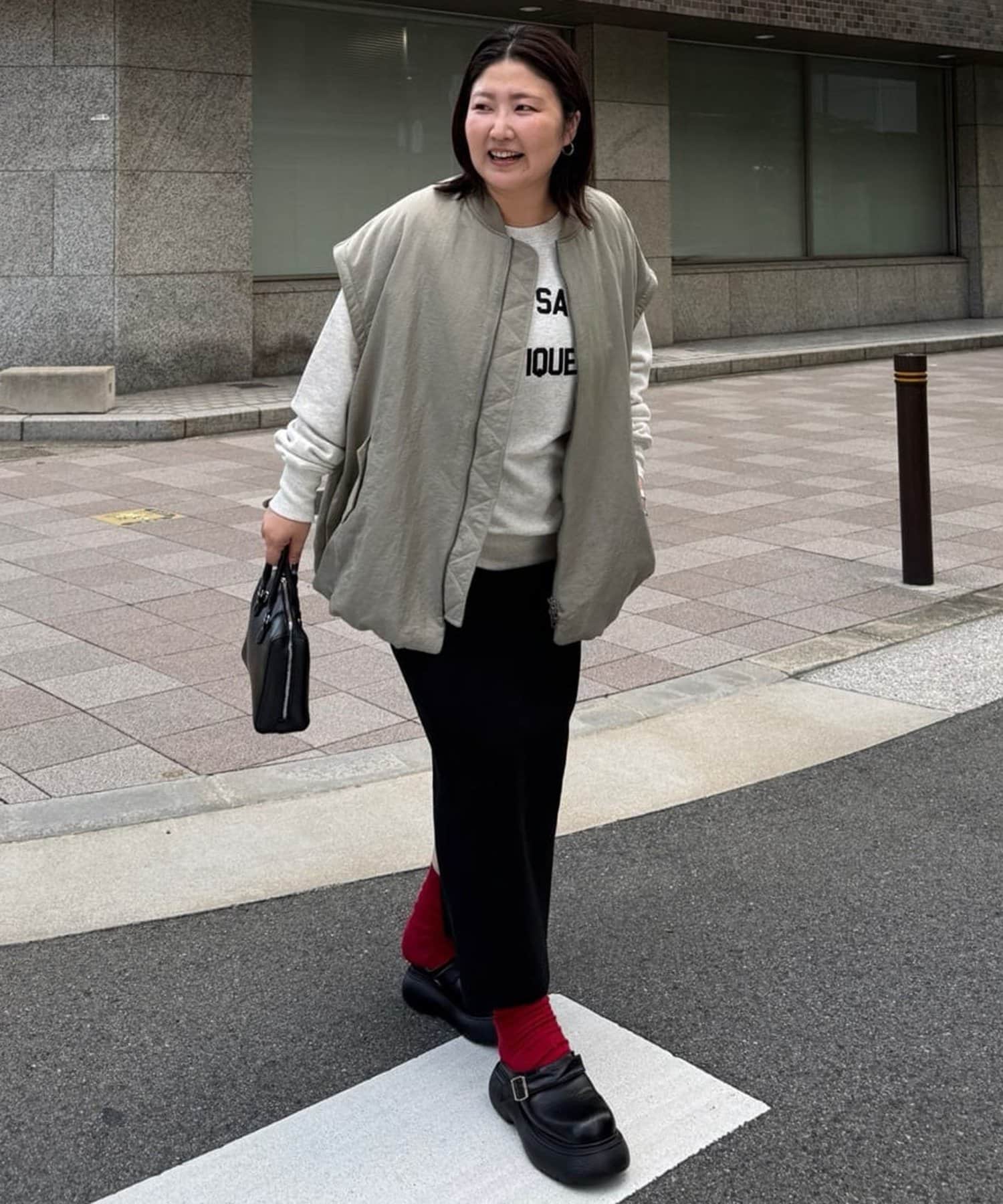 ナロースカートなので、ゆったりとしたスウェットやニットとの合わせがおすすめ〇