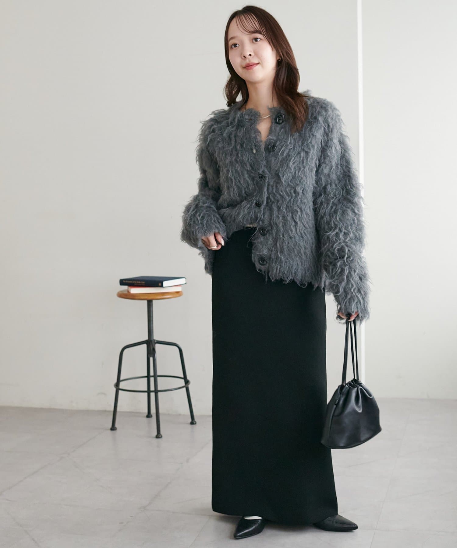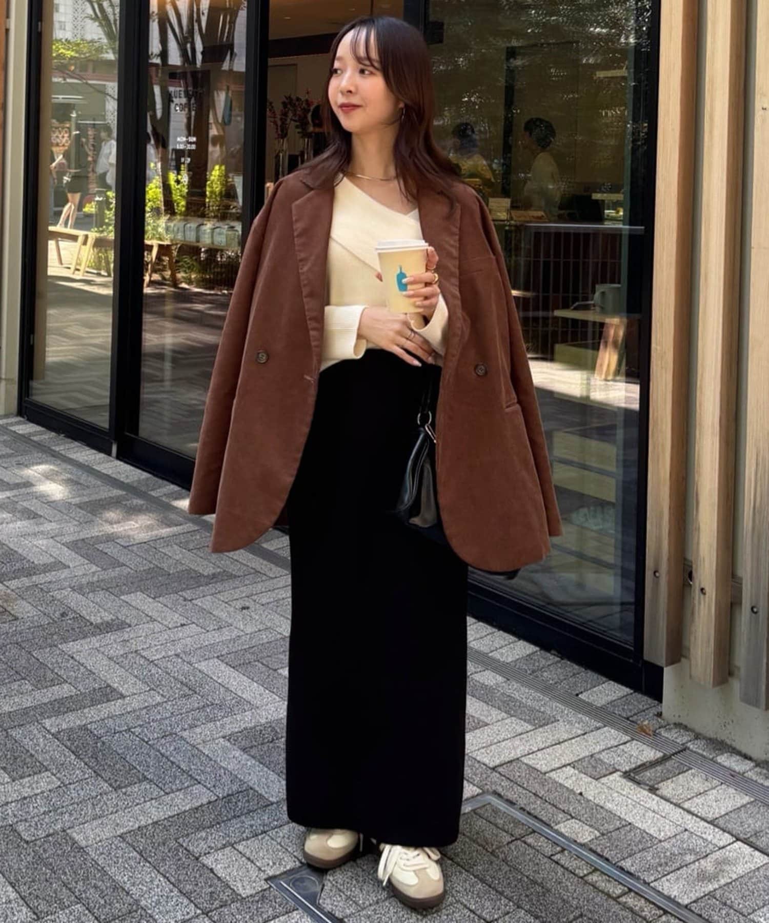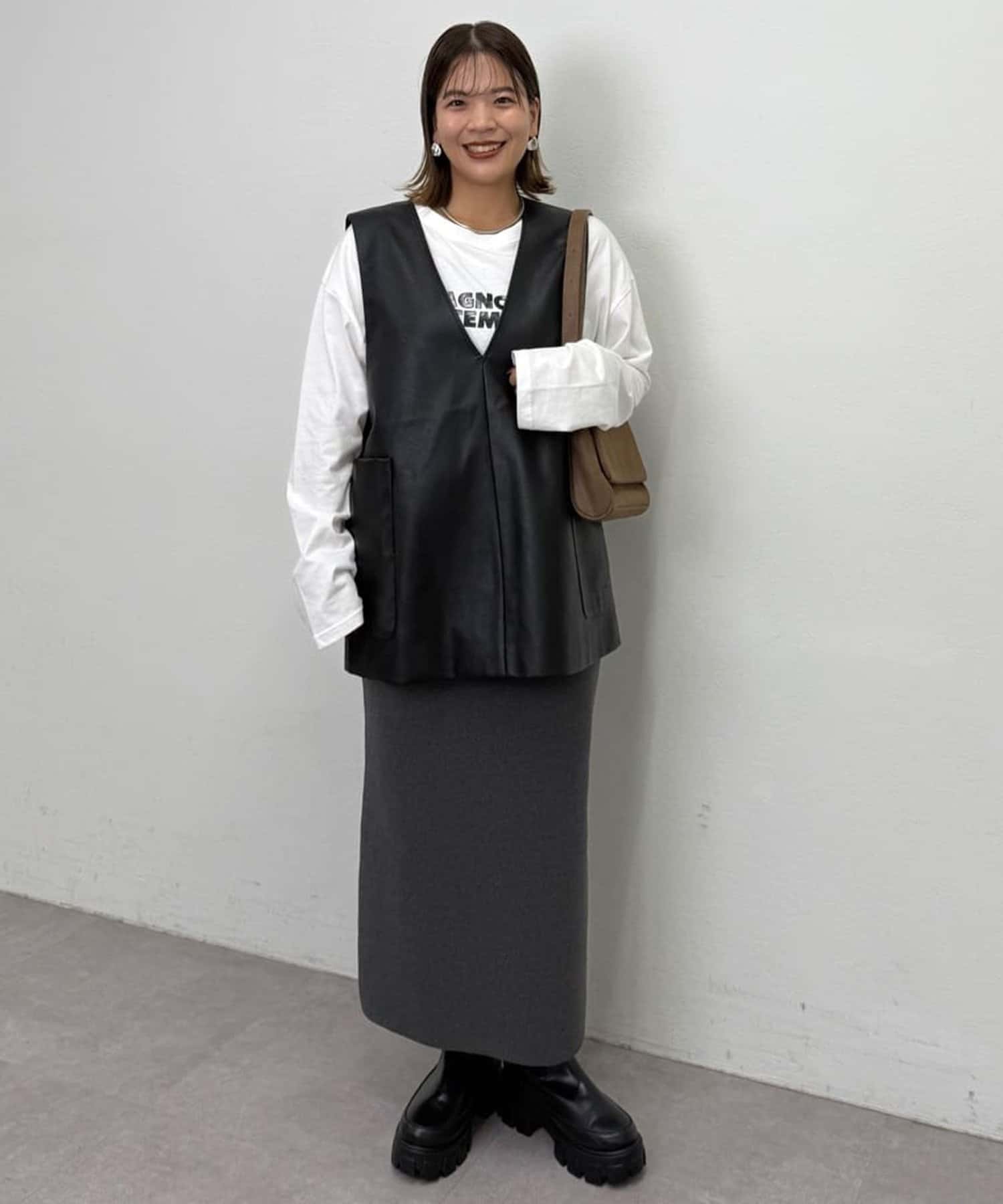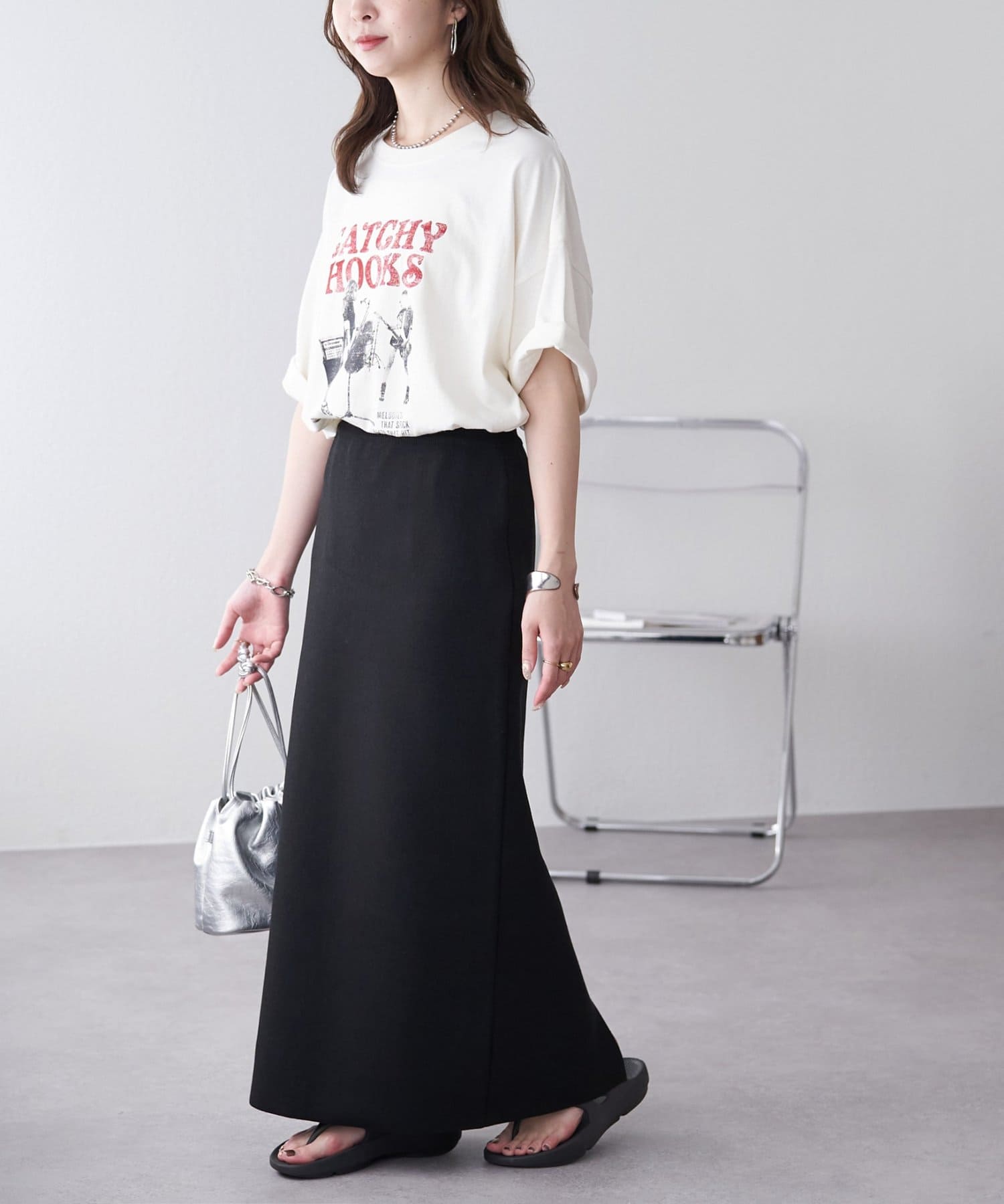 ナロースカートなので、ゆったりとしたスウェットやニットとの合わせがおすすめ〇