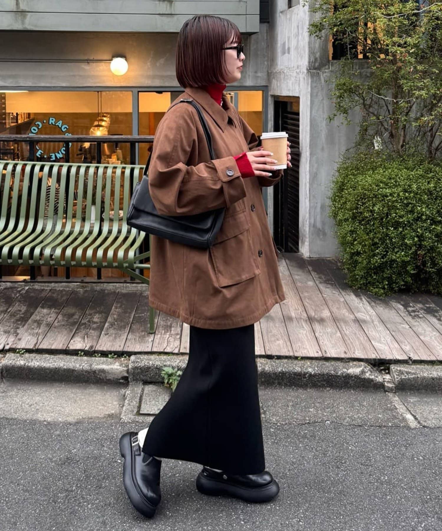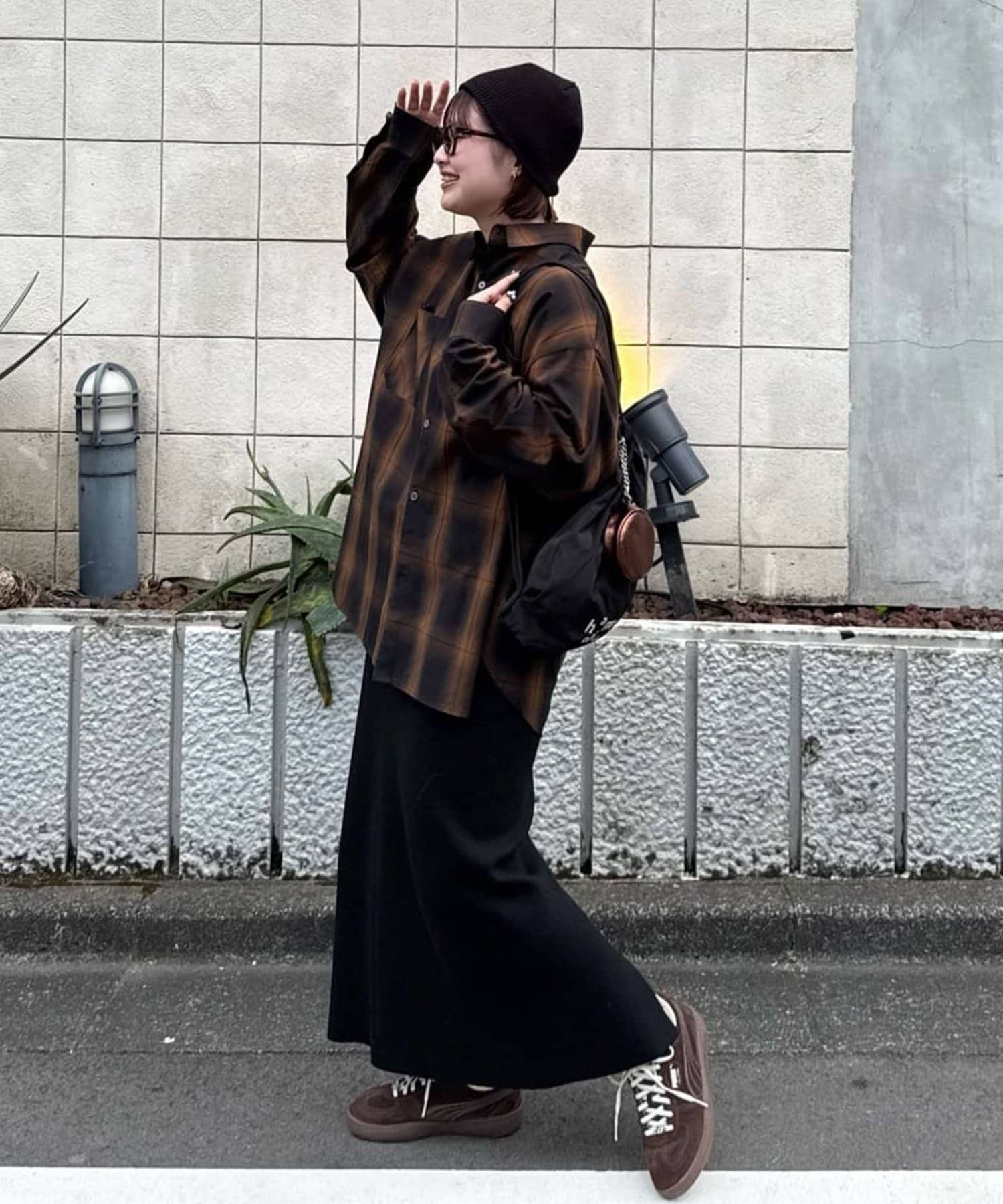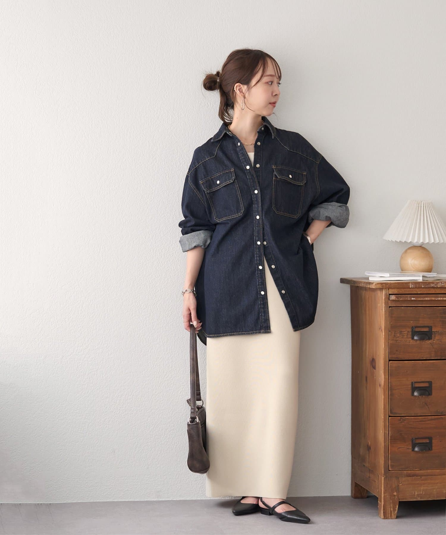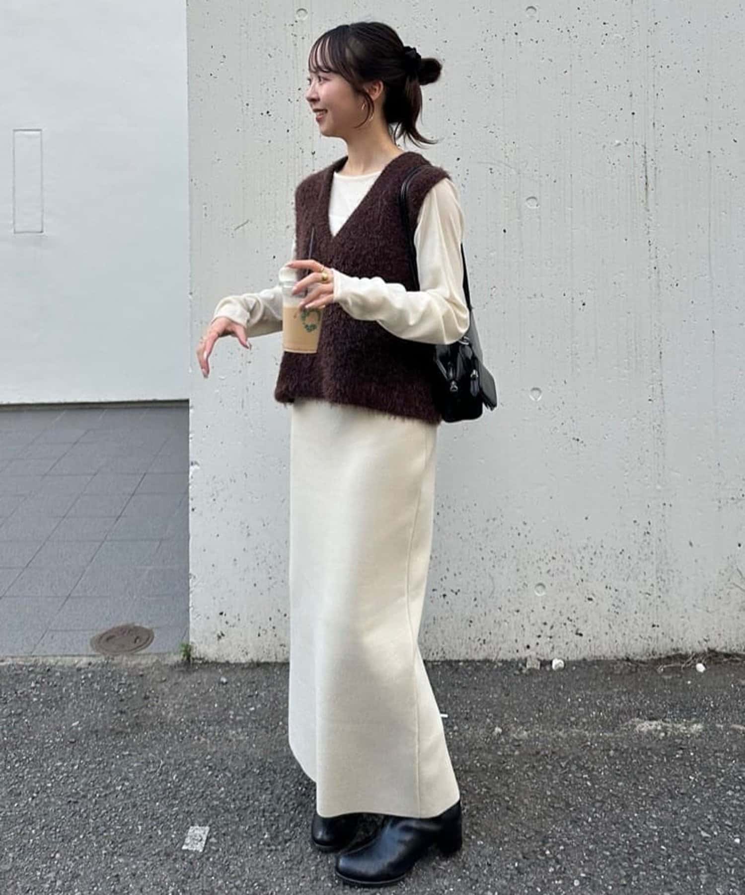 ナロースカートなので、ゆったりとしたスウェットやニットとの合わせがおすすめ〇