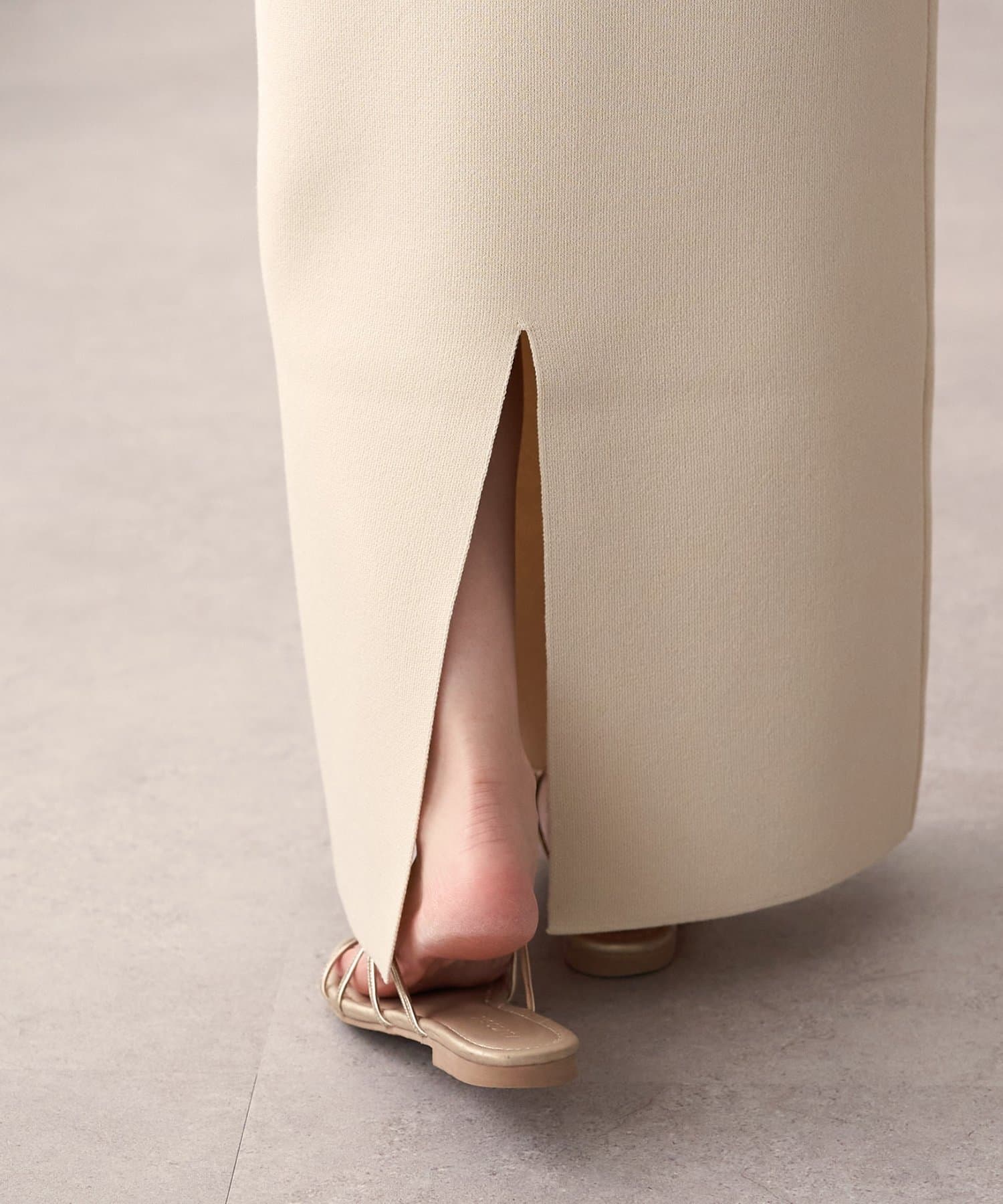 153cmスタッフ:形が綺麗なニットナロースカート。ロング丈ですが、裾にスリットが入っているので、低身長でも動きやすいデザインです!