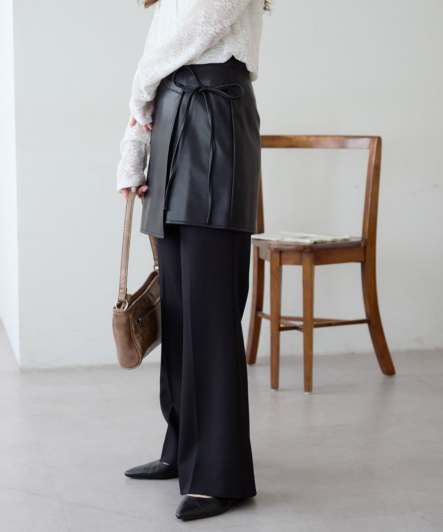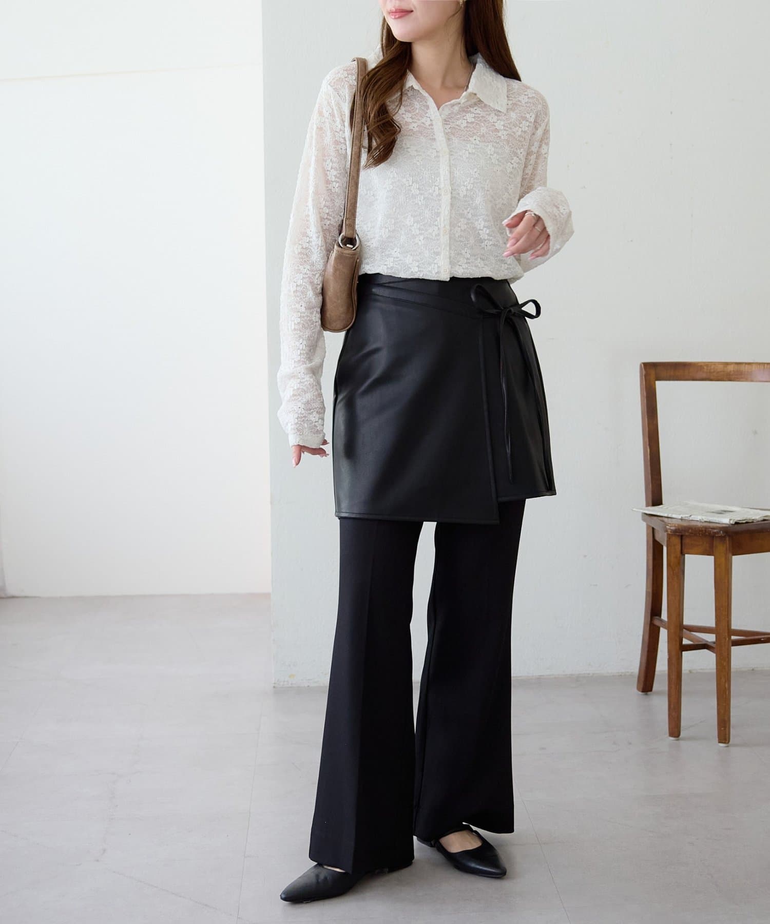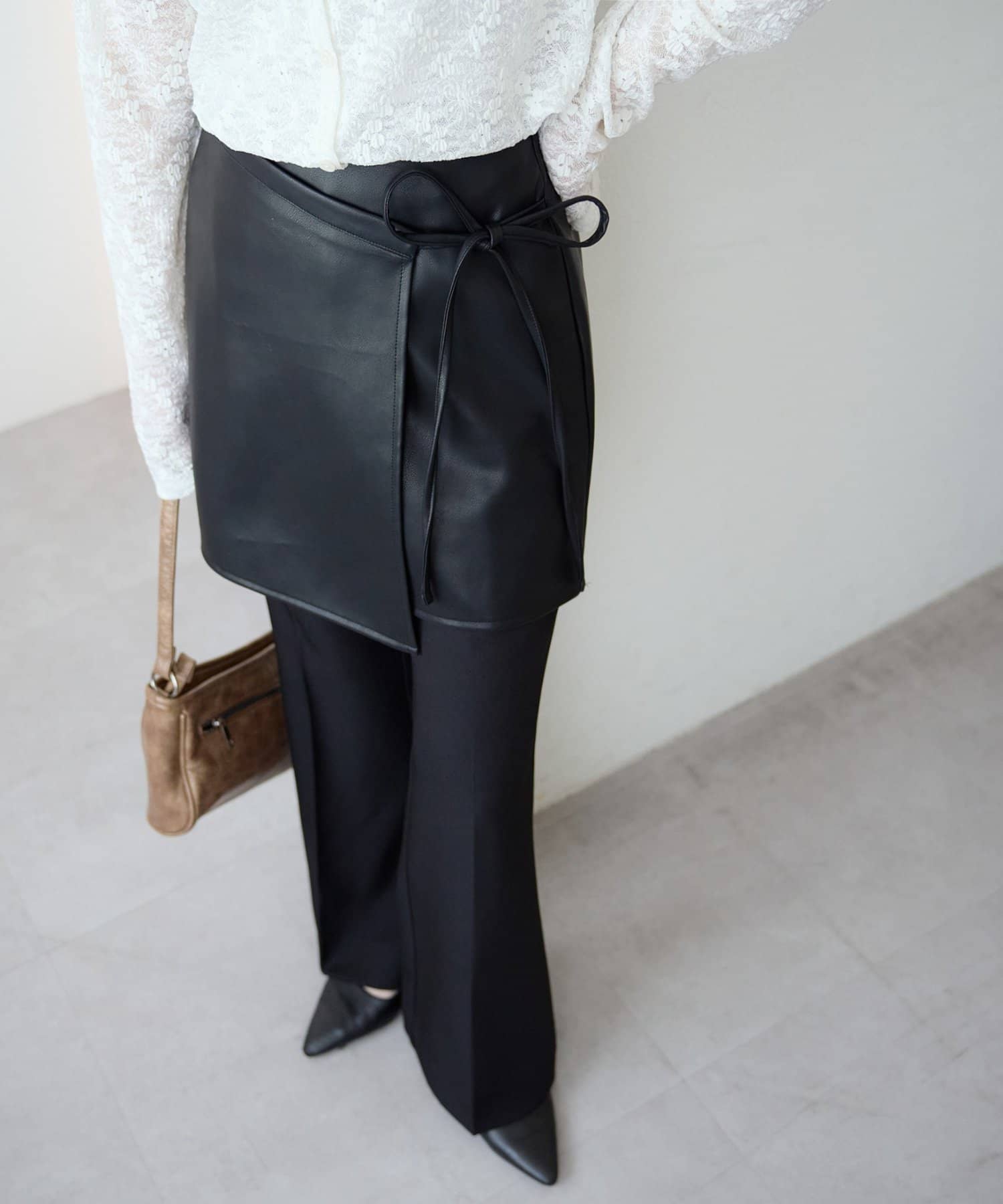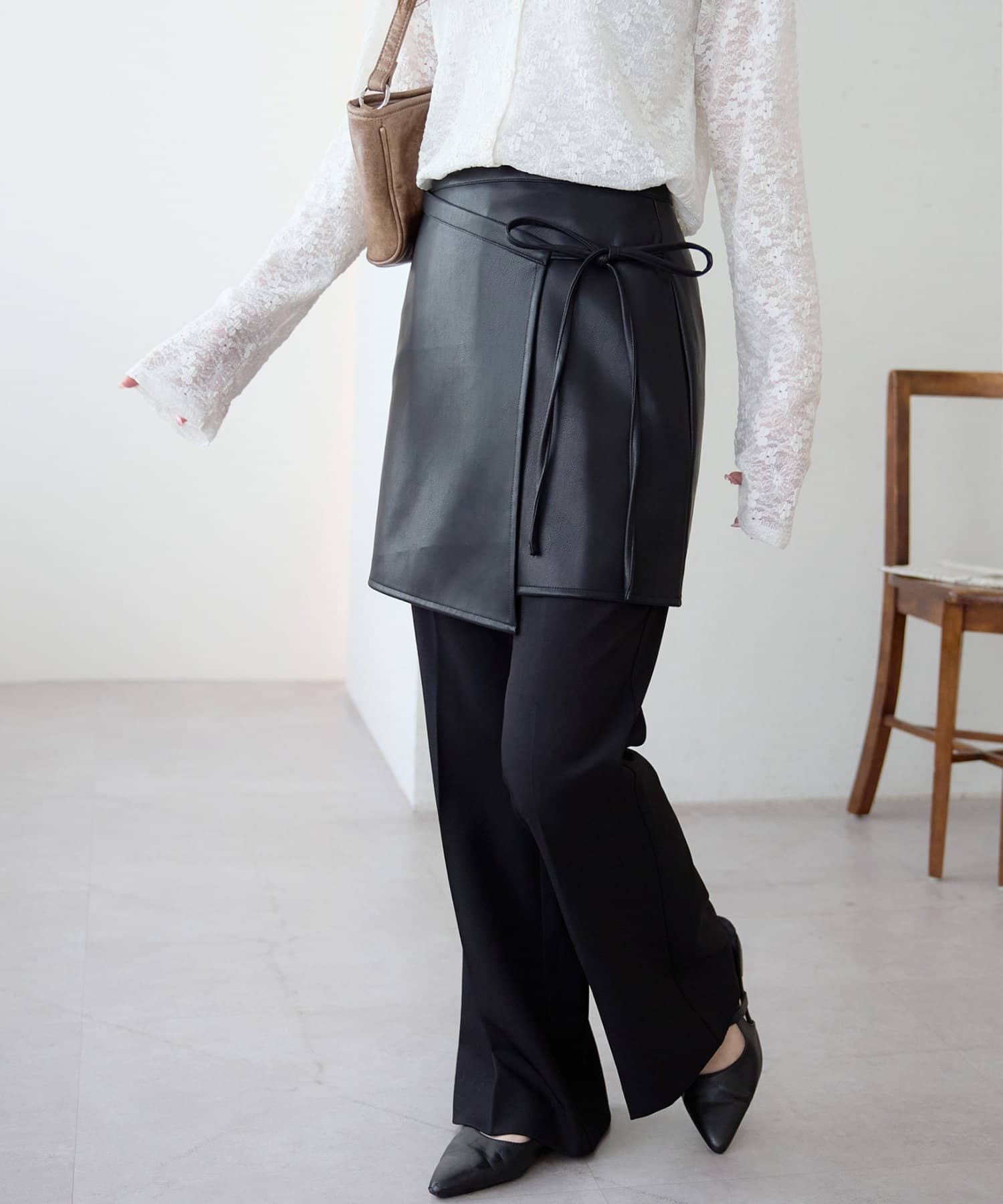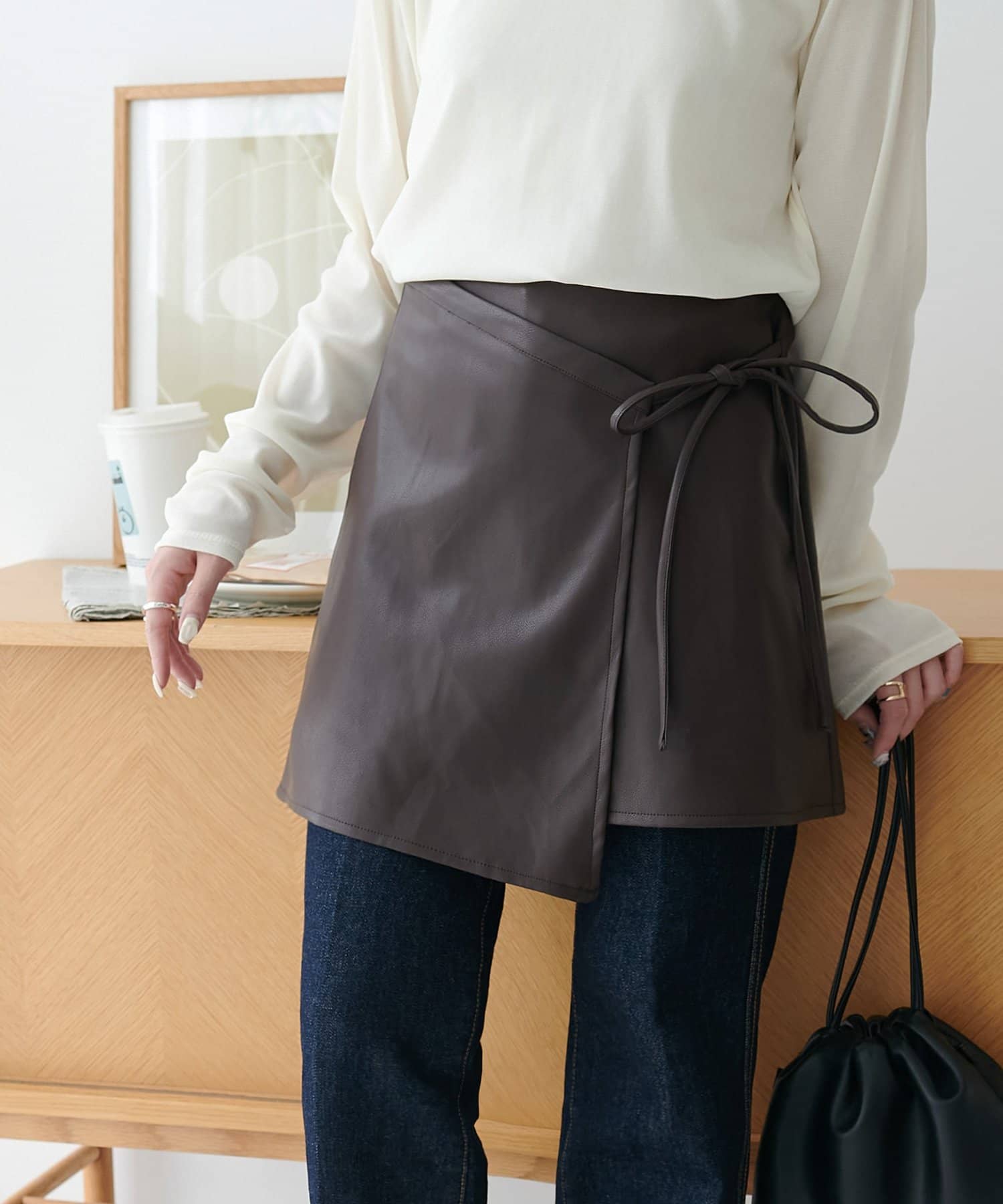 ひと巻きで旬スタイルに、重ねて楽しむレザーラップスカート