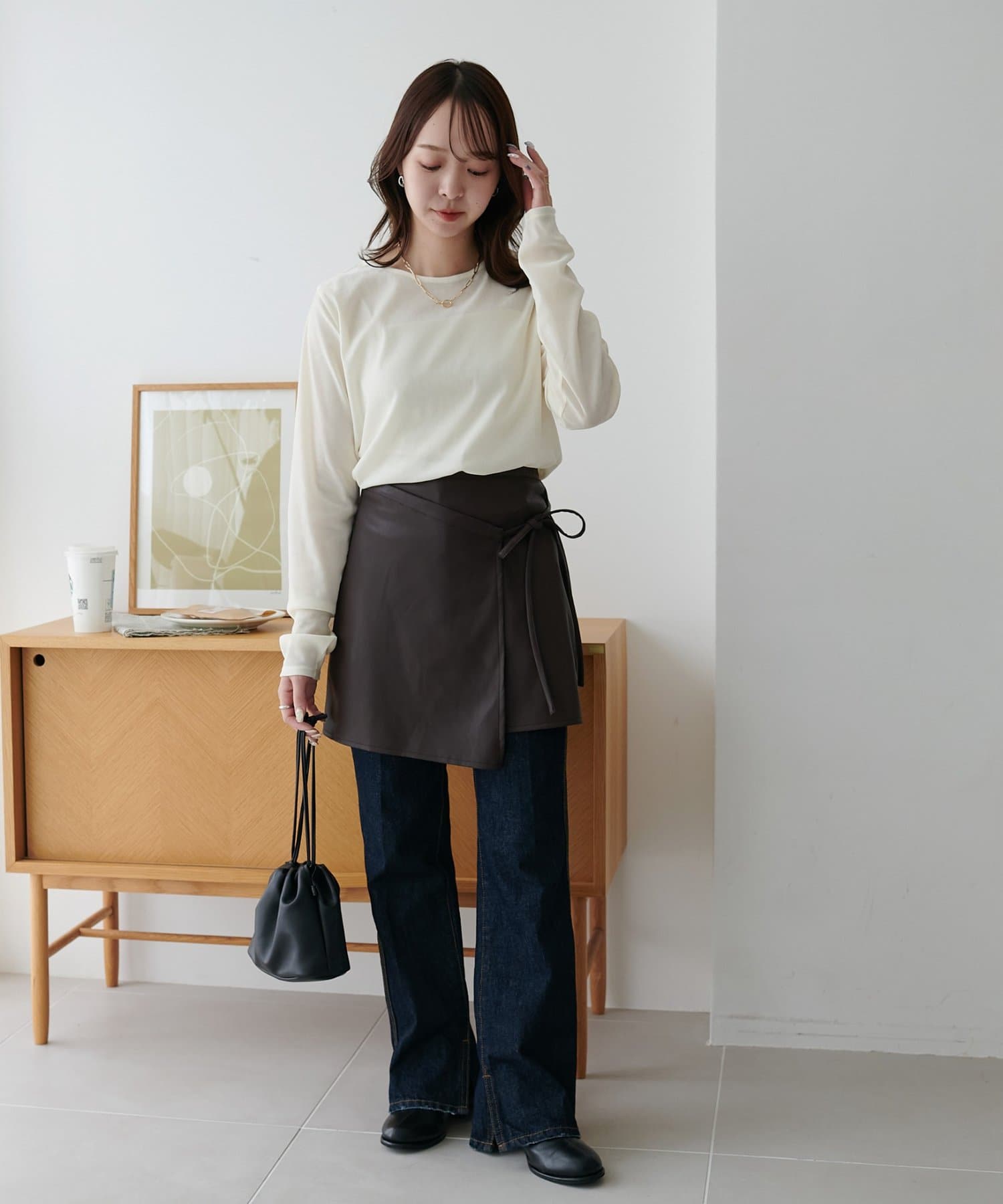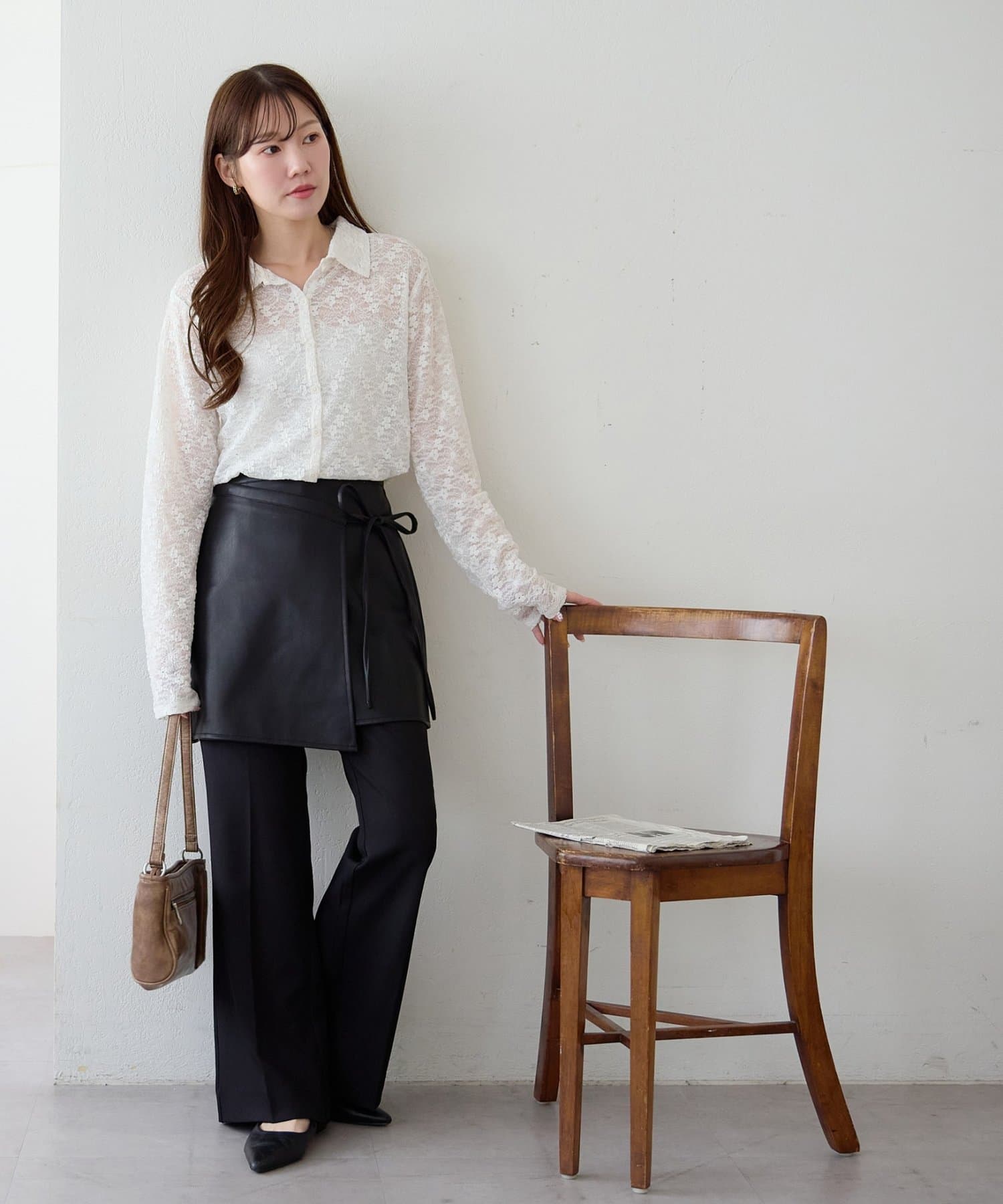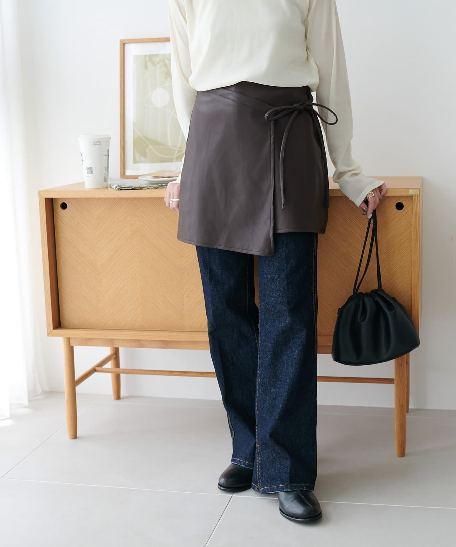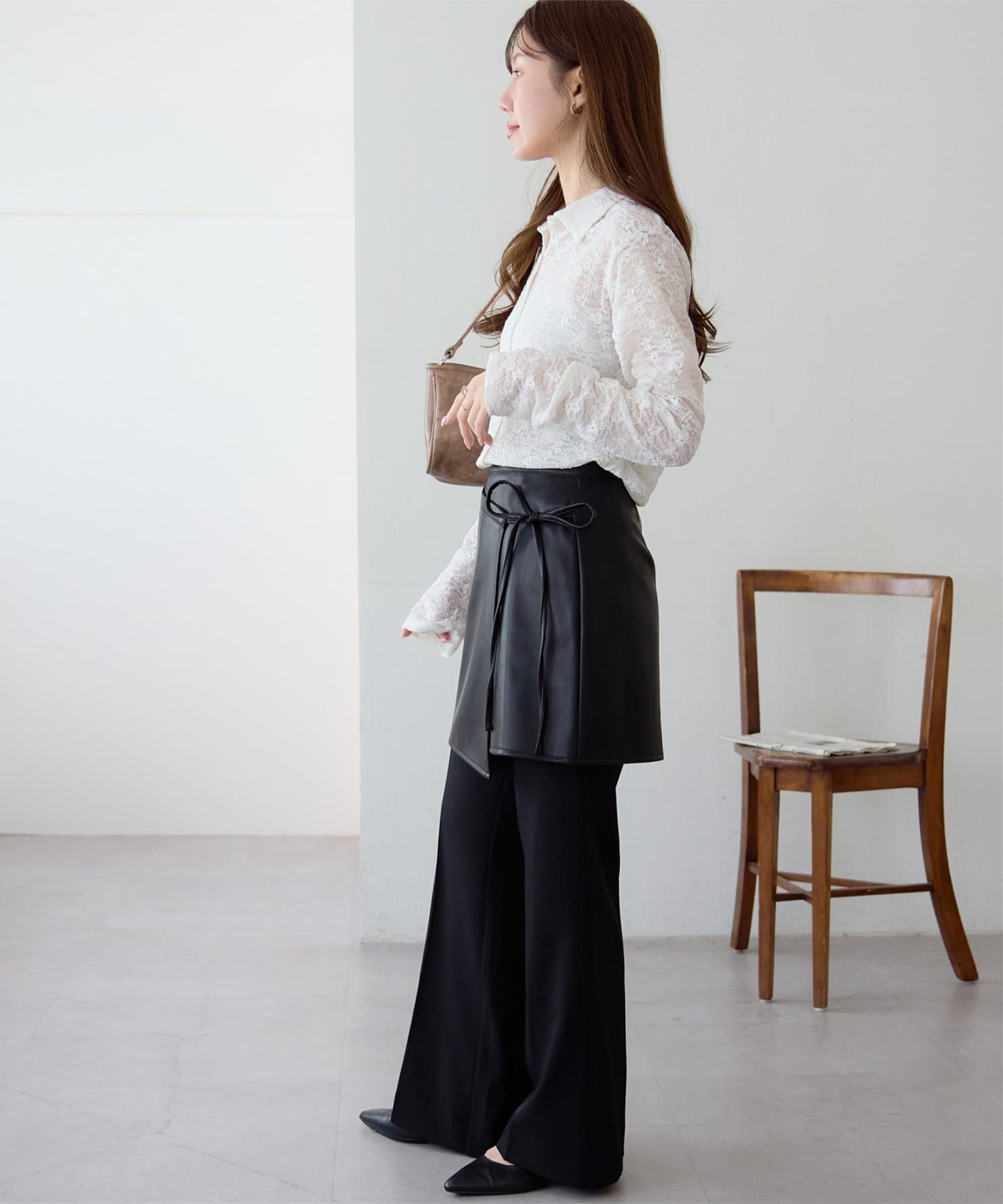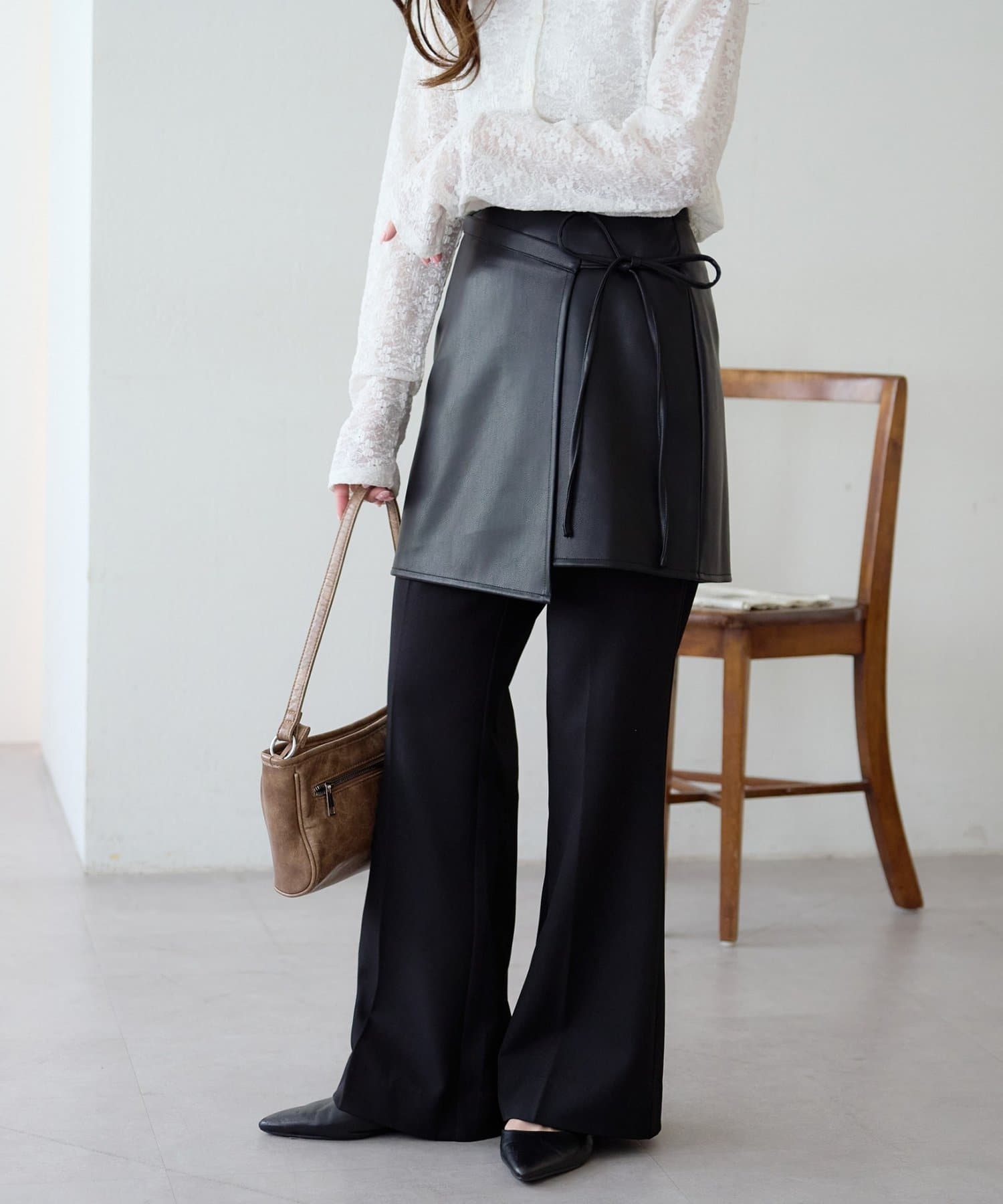 ひと巻きで旬スタイルに、重ねて楽しむレザーラップスカート