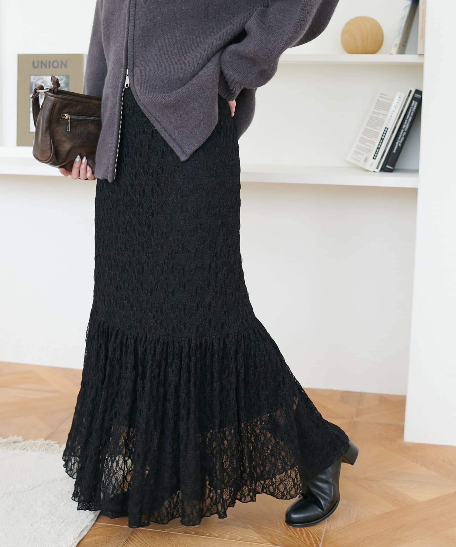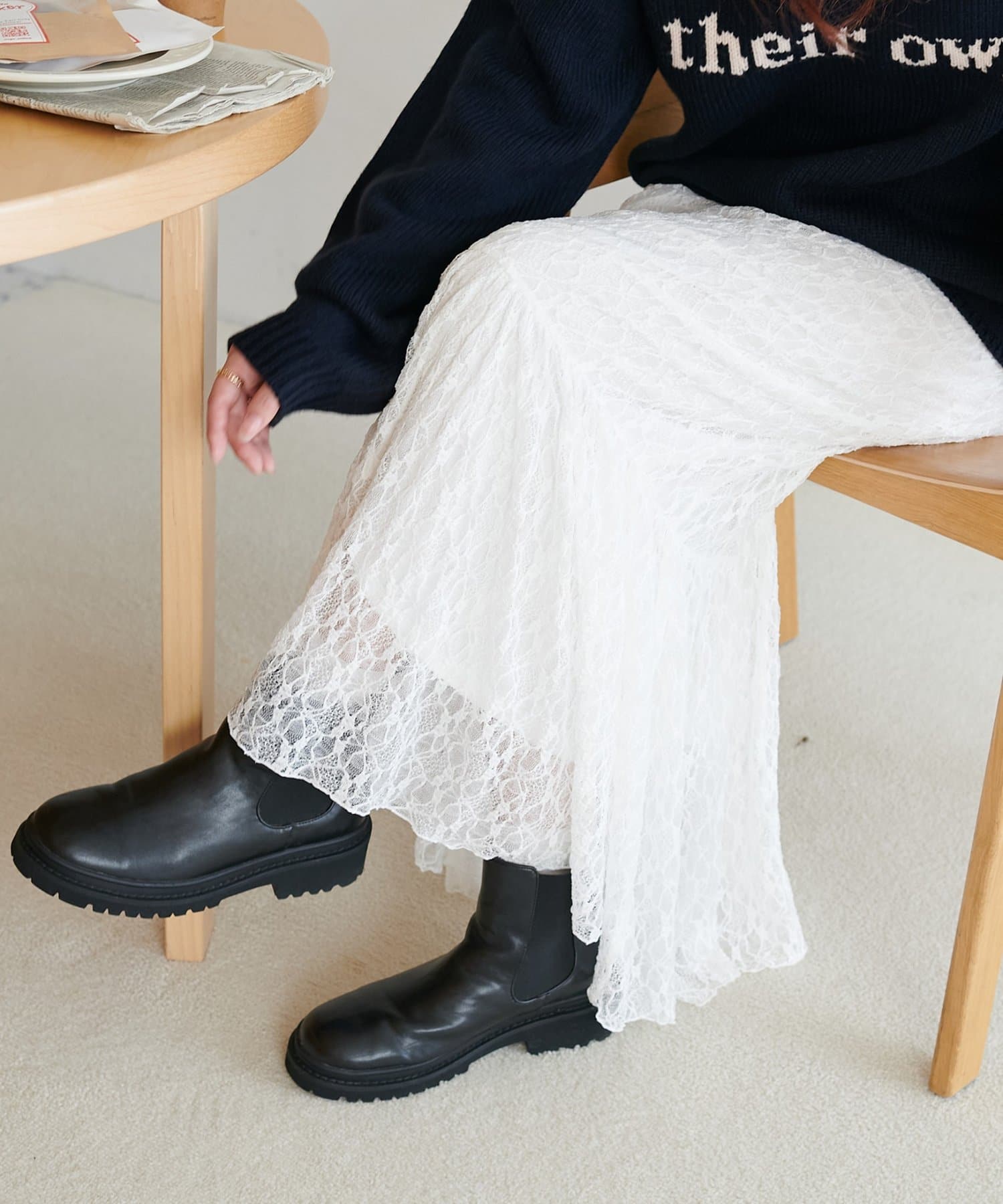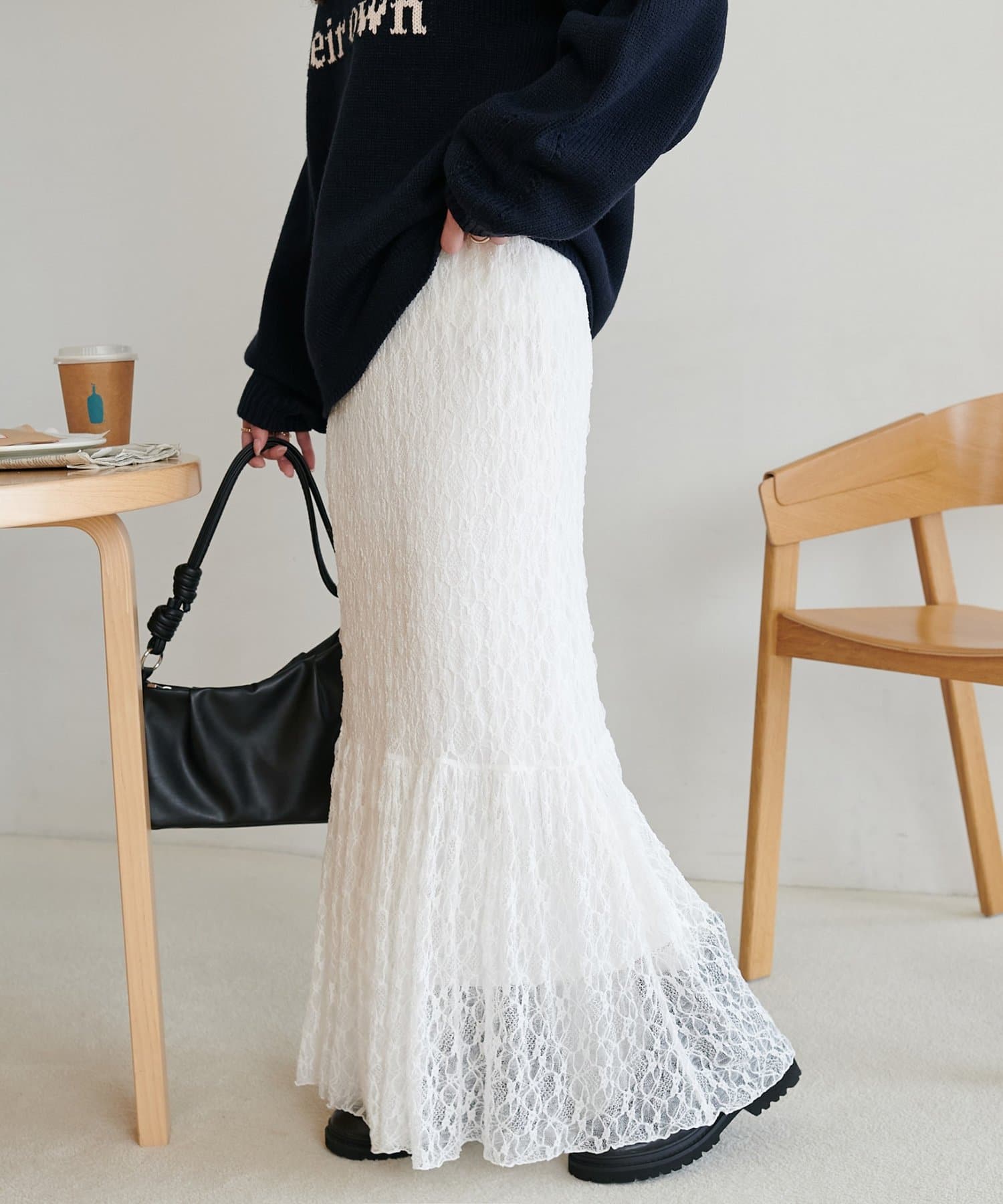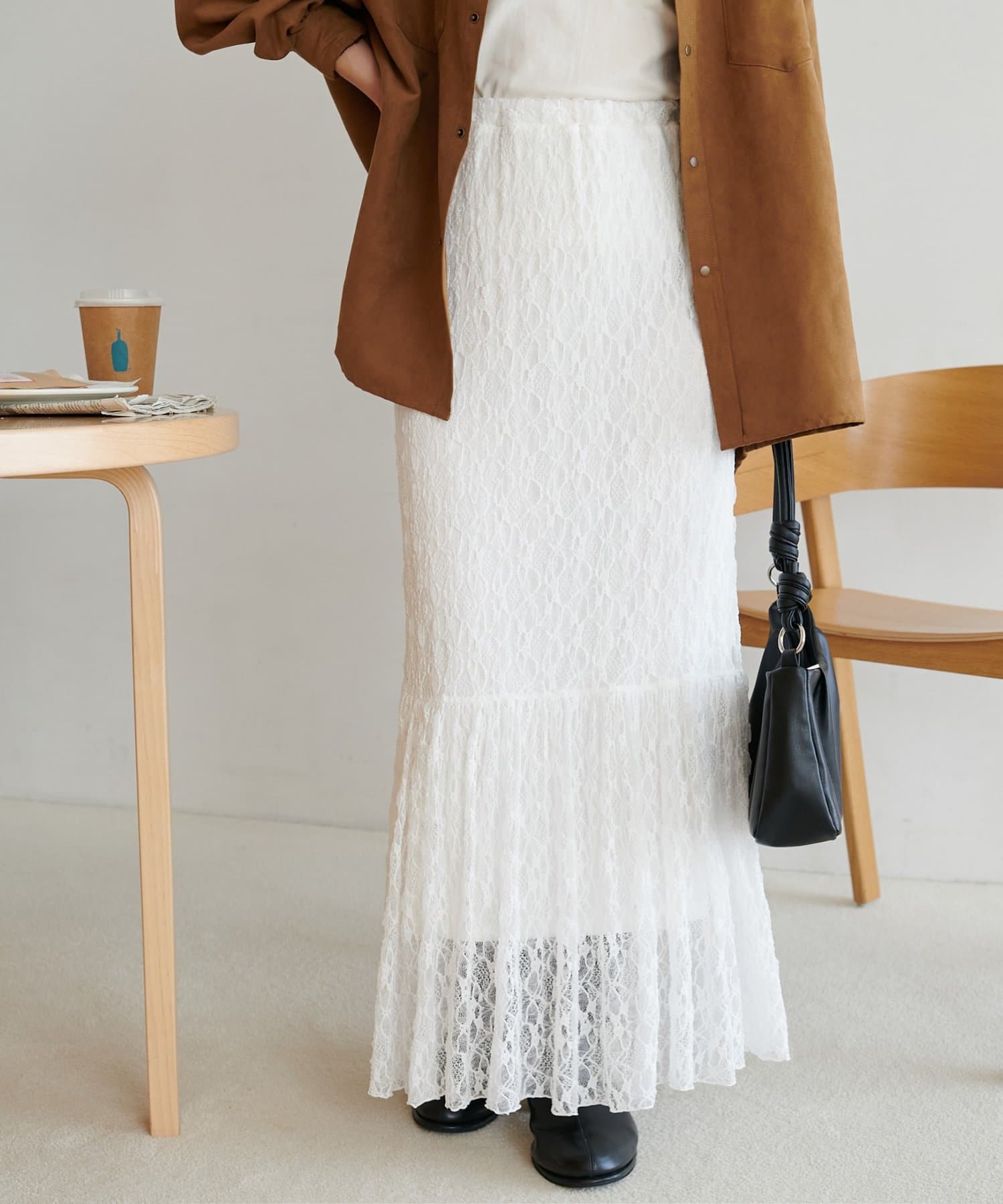 スタイルアップ見せが叶う、春先にぴったりのレーススカート!