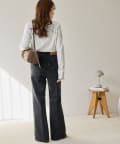 脚のラインを自然にカバーしながら、すっきり見せてくれるセミフレアシルエットが魅力。
