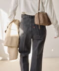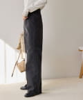 シンプルながら一癖あるデザインなので、足元はヒールでもスニーカーでもサマになり、オン・オフ問わず着回せる一本です。