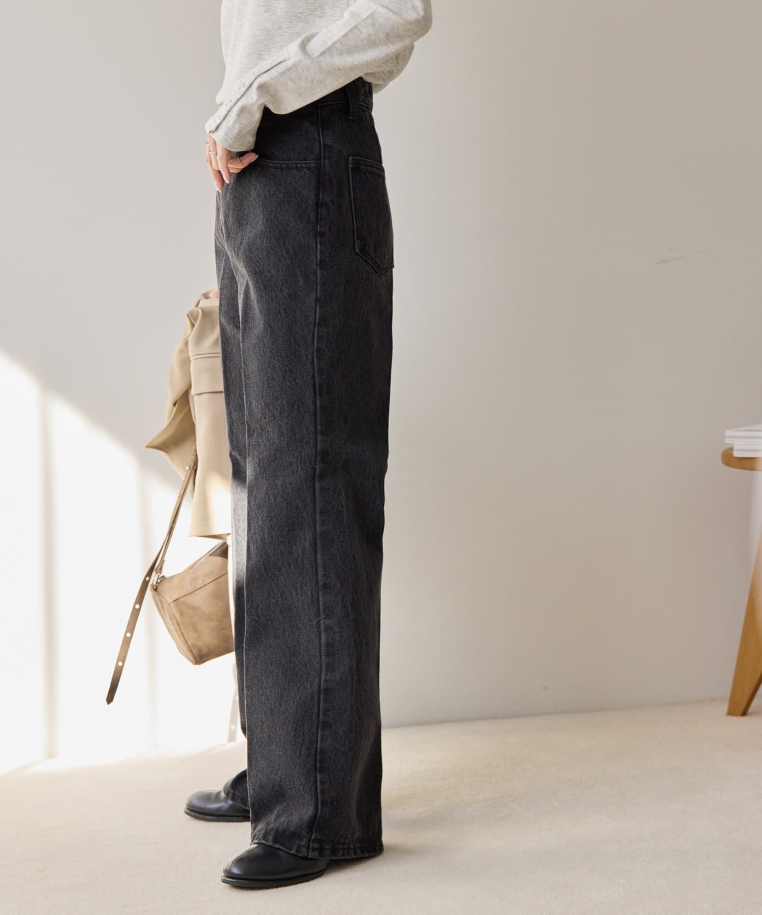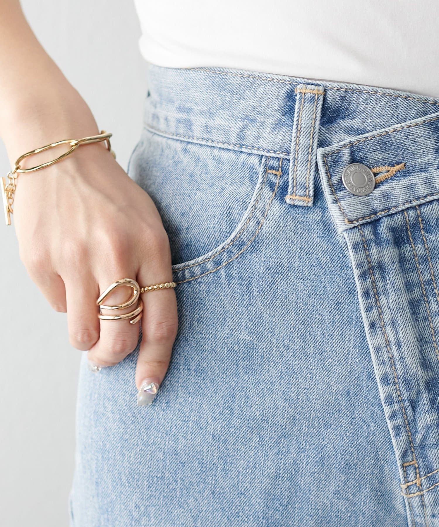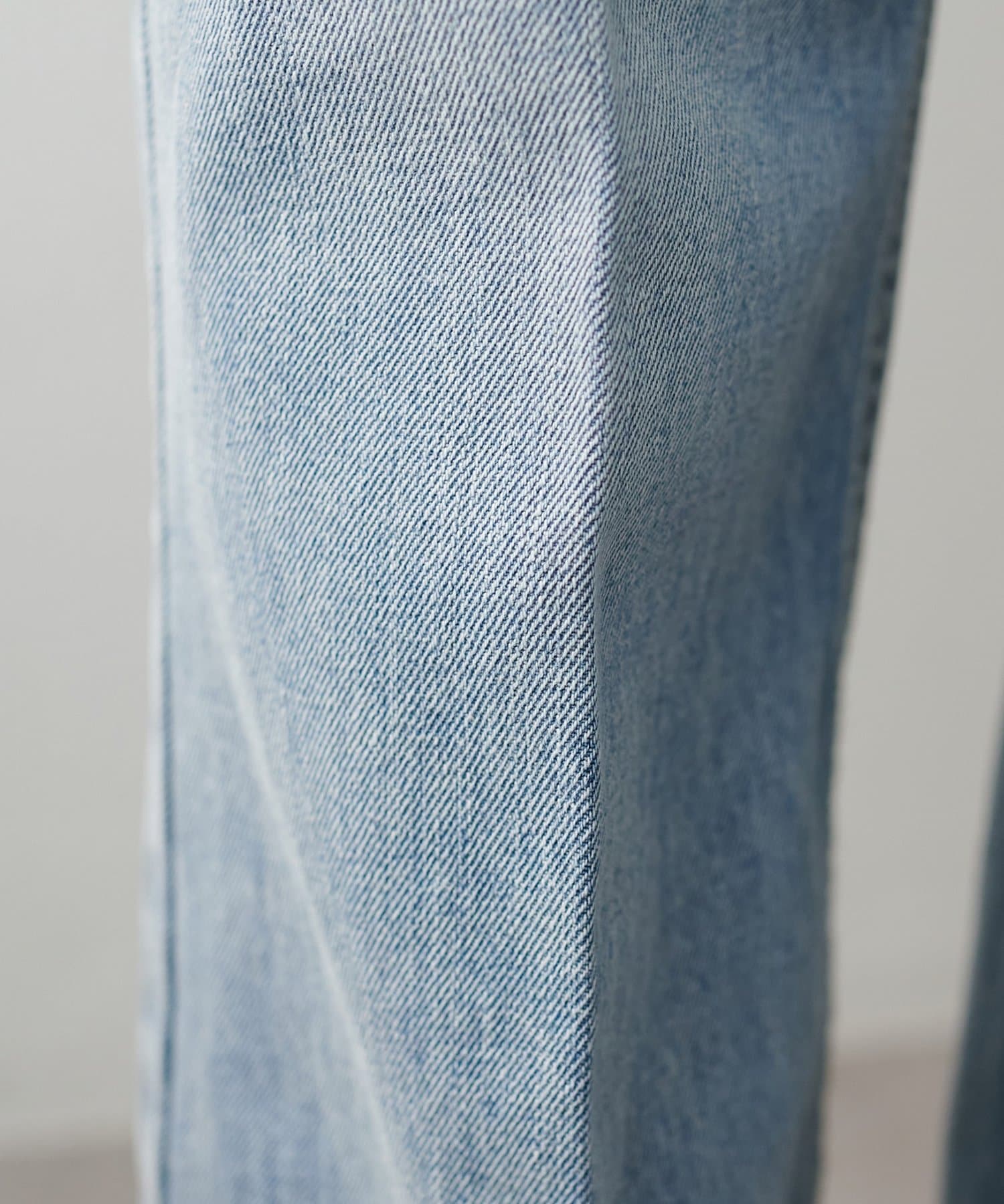 太すぎず細すぎない絶妙なラインで、カジュアルになりがちなデニムも女性らしい印象に。
